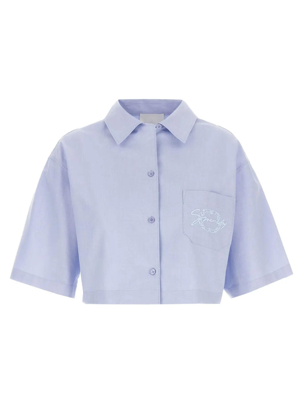 Блакитна жіноча сорочка від Givenchy виконана з 100% бавовни, що забезпечує неперевершений комфорт та дихаючі властивості. cropped дизайн з кишенею, прикрашеною вишитим логотипом, надає елегантності та сучасного вигляду. Кнопкова застібка і короткі рукави підкреслюють функціональність моделі. Цей витончений елемент гардеробу стане універсальним вибором для будь-якої події, підкреслюючи статус та стиль власниці. Якість матеріалів та інноваційний підхід до дизайну роблять цю сорочку справжнім втіленням розкоші.