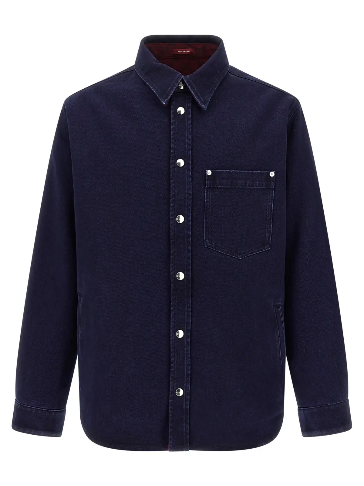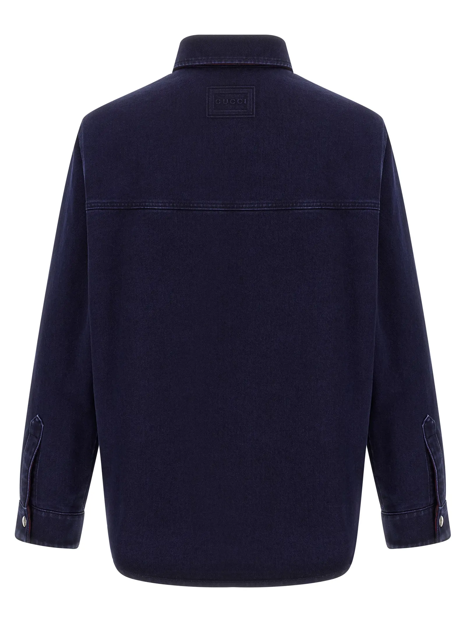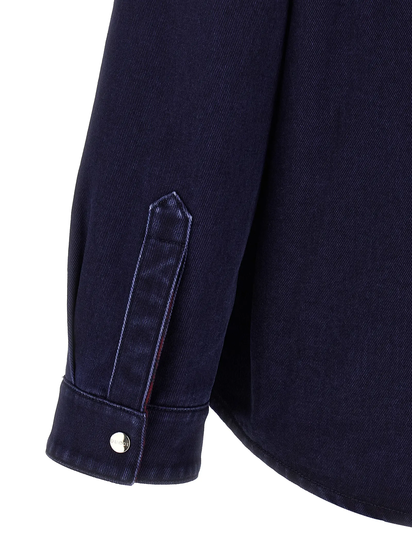 Вишукана чоловіча сорочка Gucci з двостороннім дизайном поєднує денім з ефектом вигорання та ніжну фланелеву тканину, виготовлені з 100% натуральної бавовни. Елегантні деталі, такі як застібка на кнопки, нагрудна кишеня та тиснена емблема, підкреслюють статус і неперевершений стиль, забезпечуючи універсальність і комфорт.