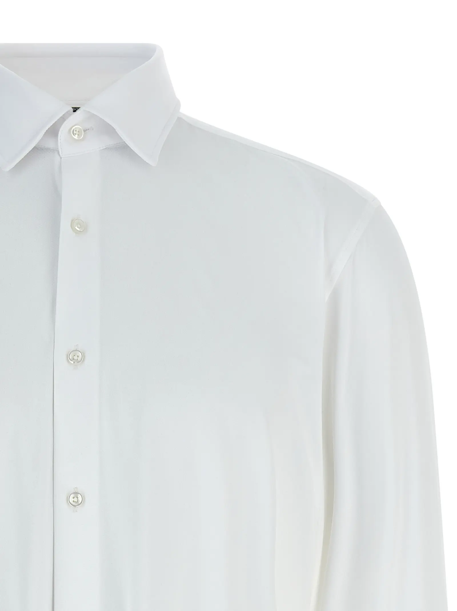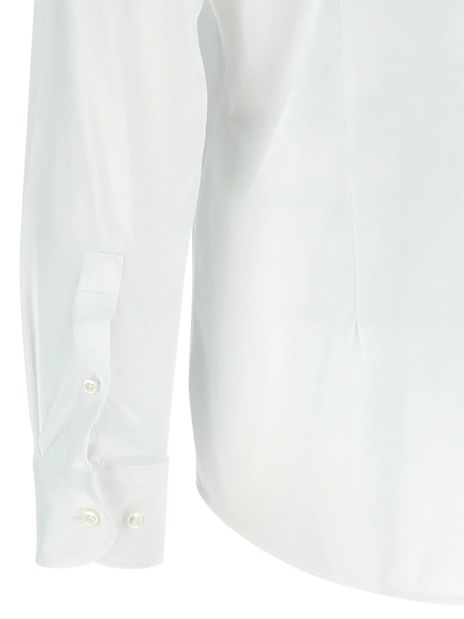 Чоловіча сорочка білого кольору, виготовлена з дихаючої еластичної технічної тканини, що поєднує 87% поліаміду та 13% еластану, забезпечуючи неперевершений комфорт і свободу рухів. Вишуканий дизайн із класичним коміром, застібкою на гудзики та довгими рукавами з манжетами підкреслює стиль і статус, роблячи цей виріб ідеальним вибором для сучасного, впевненого в собі чоловіка.