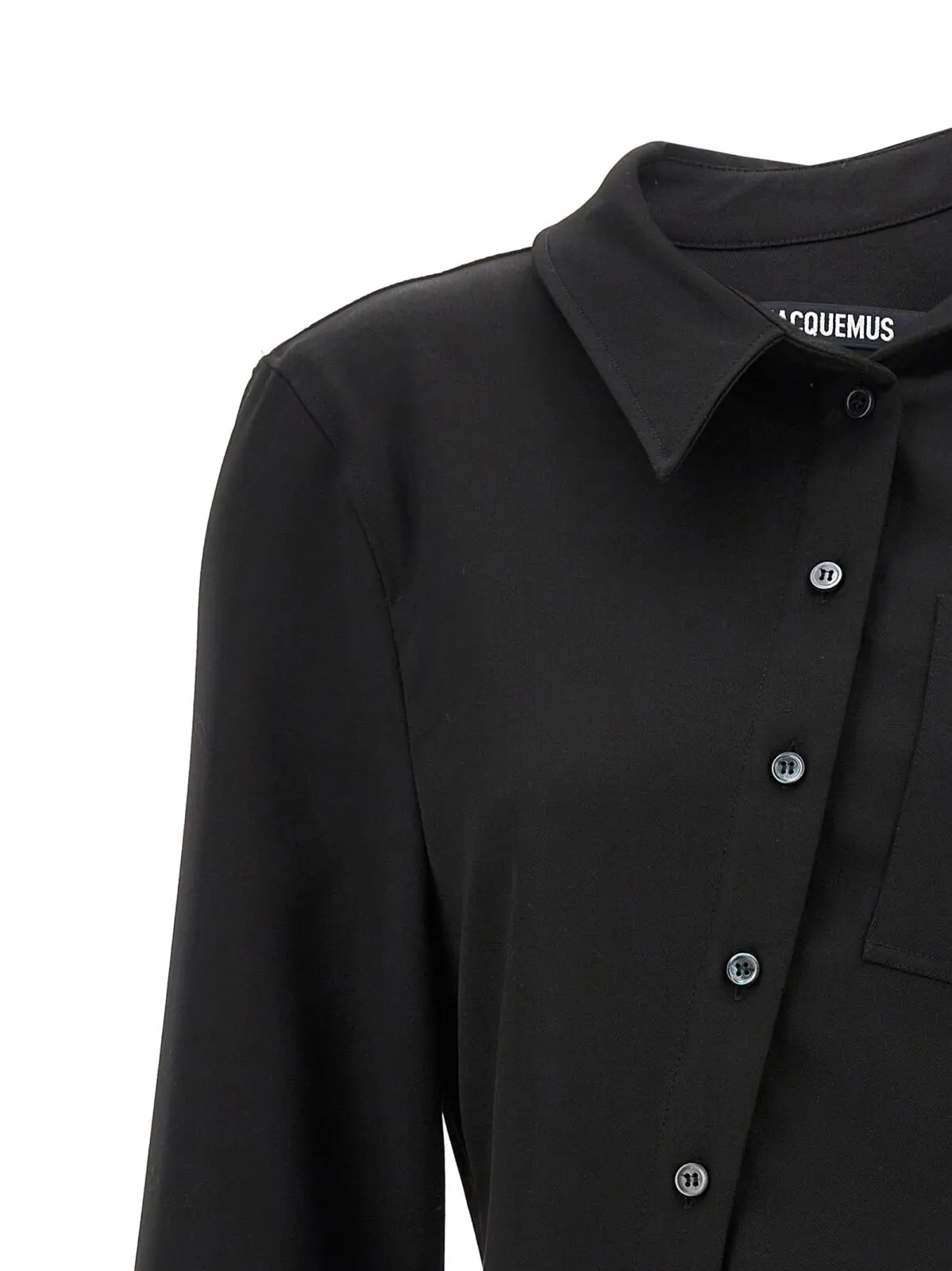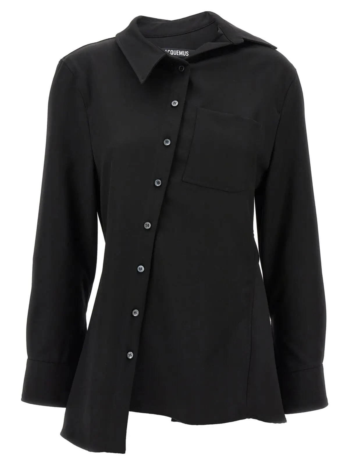 Сорочка Jacquemus La chemise Pablo — це втілення сучасного стилю і елегантності. Чорна жіноча сорочка з асиметричною застібкою на ґудзики, передньою кишенею та довгими манжетними рукавами стане яскравим акцентом у вашому гардеробі. Виконана зі 100% новозеландської вовни, вона забезпечує максимальний комфорт та тепло. Вибираючи сорочку від Jacquemus, ви обираєте якість та неповторний стиль.