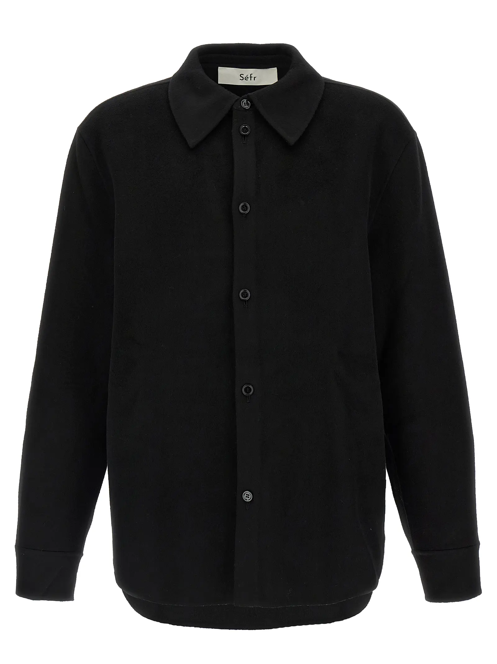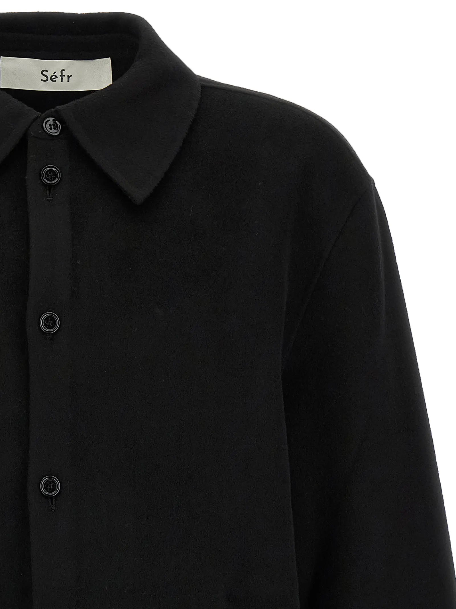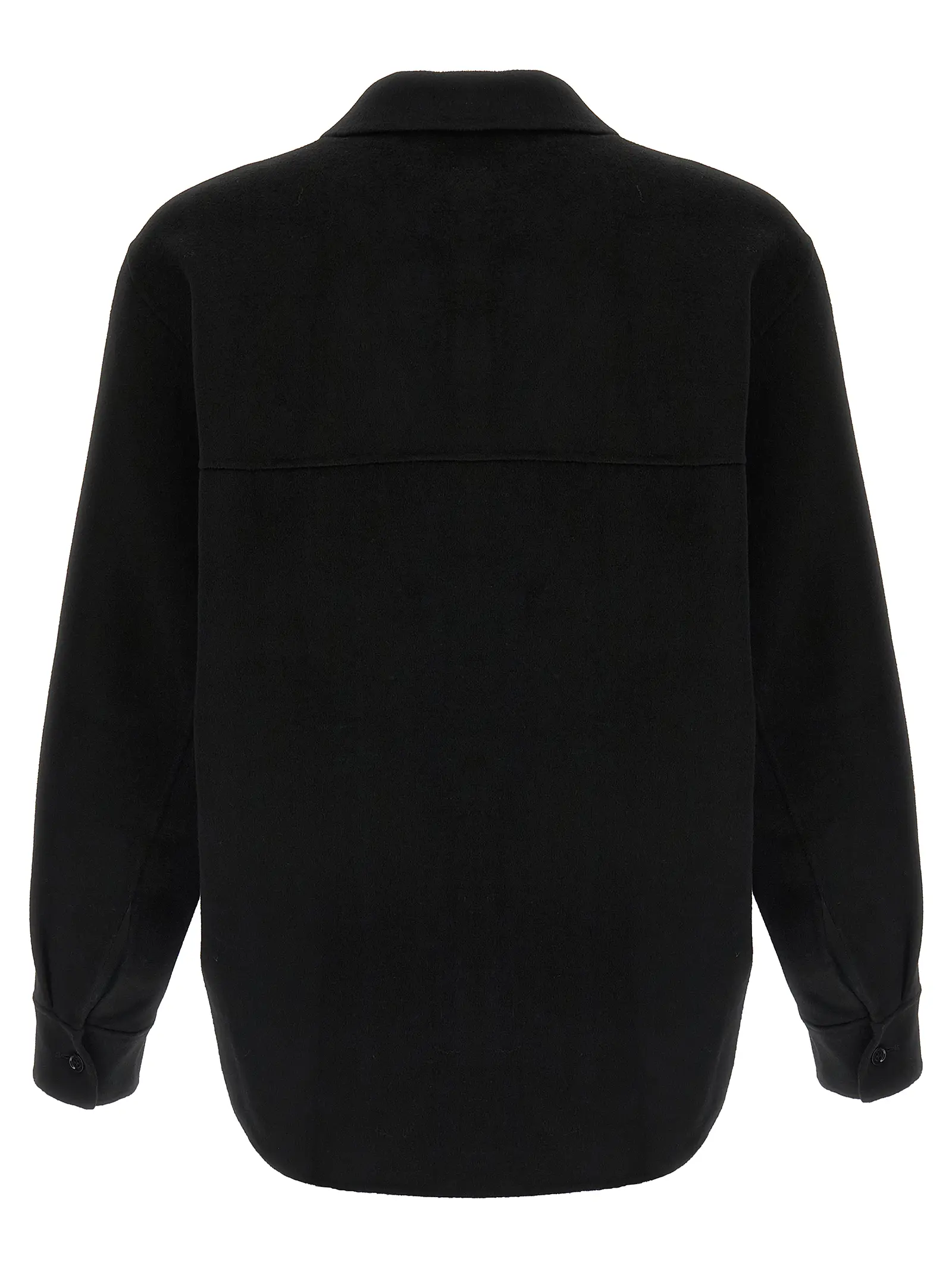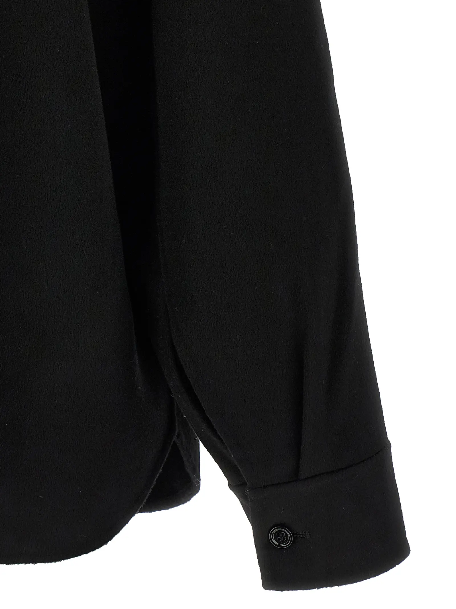 Поєднання вовни virgin wool та кашеміру у фактурі double face. Фронтальна застібка на ґудзики та довгі рукави з манжетами. Спущена лінія плечового шва.
