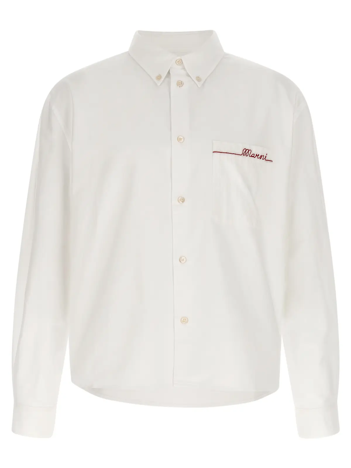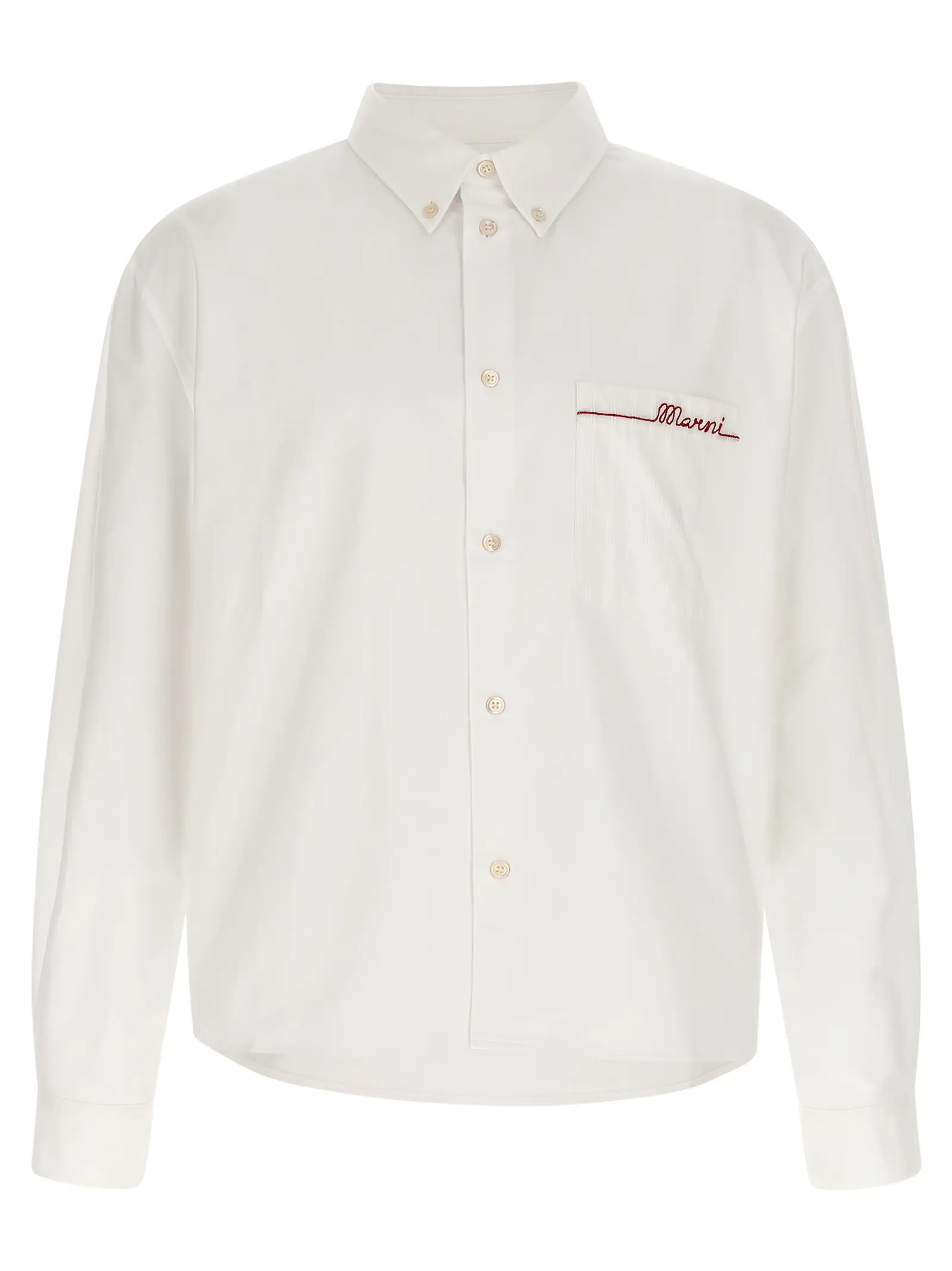 Нагрудна кишеня з контрастною вишивкою та комір на ґудзиках. Склад 100% бавовна. Асиметрична довжина та довгі рукави з манжетами.