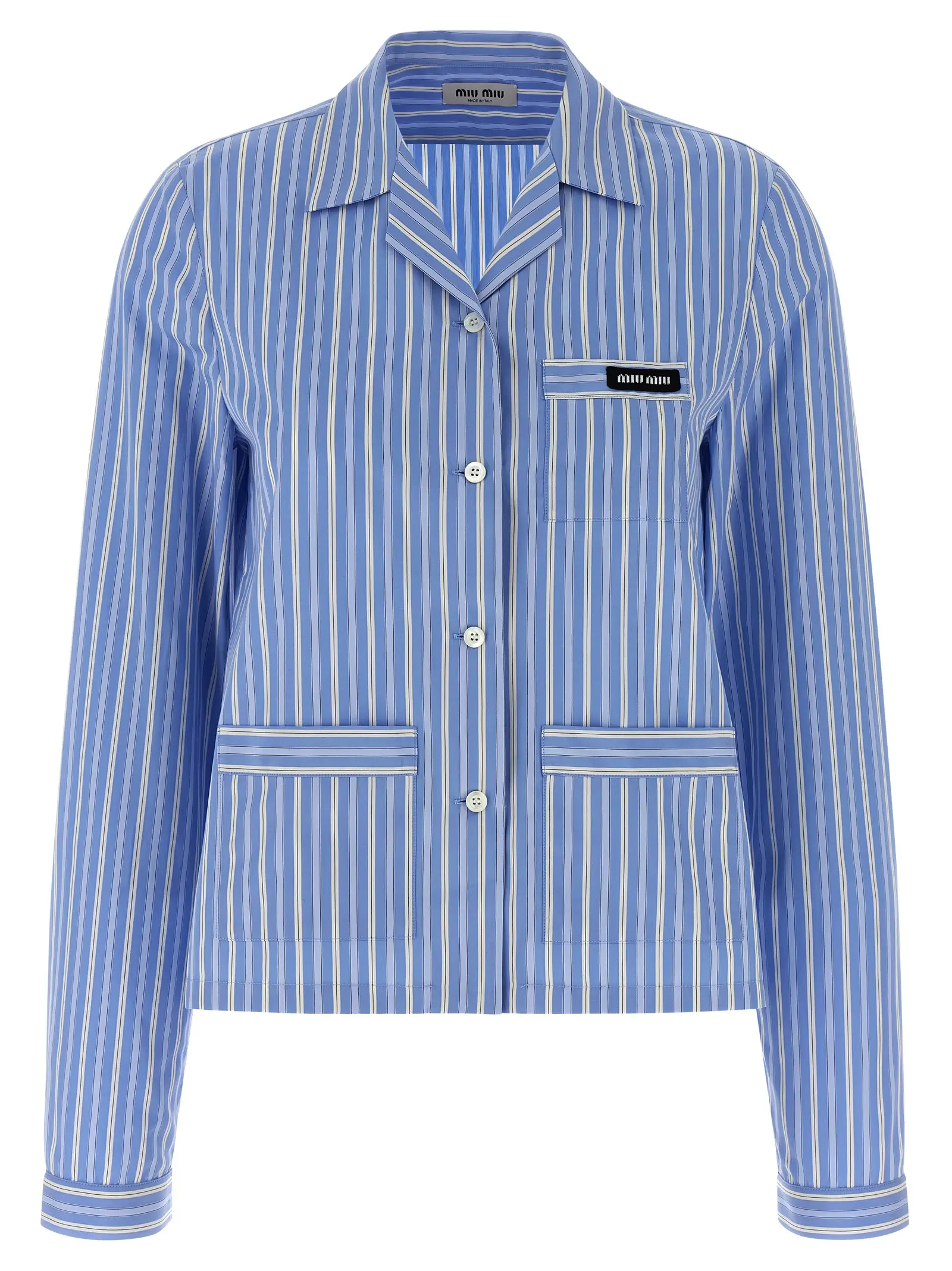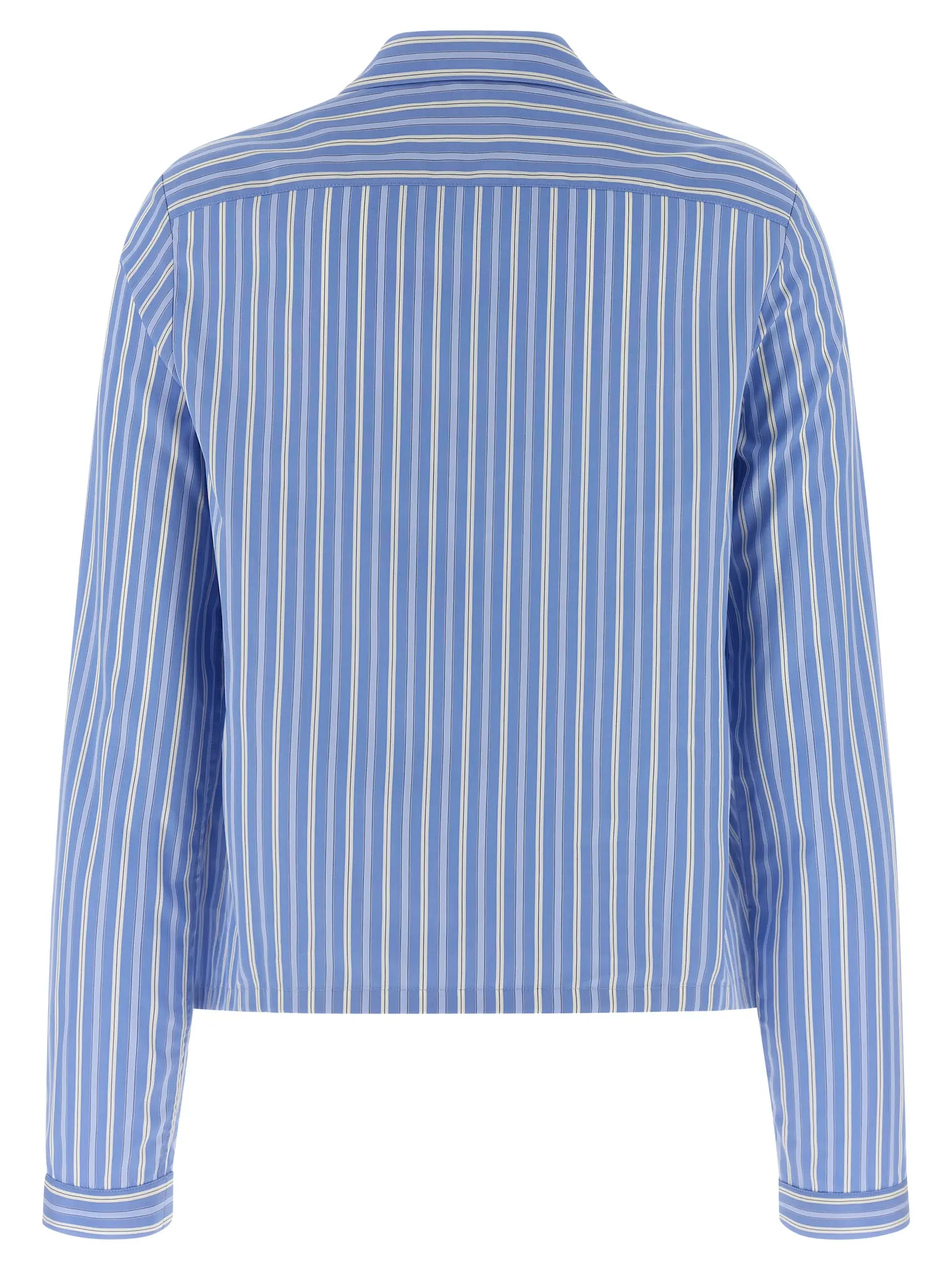 Вишукана сорочка з блакитного бавовняного попліну, що поєднує комфорт і стиль завдяки витонченому дизайну з V-подібним вирізом, довгими манжетами та функціональними кишенями з логотипом. Вона підкреслює статус і надає образу неперевершеної елегантності і універсальності.