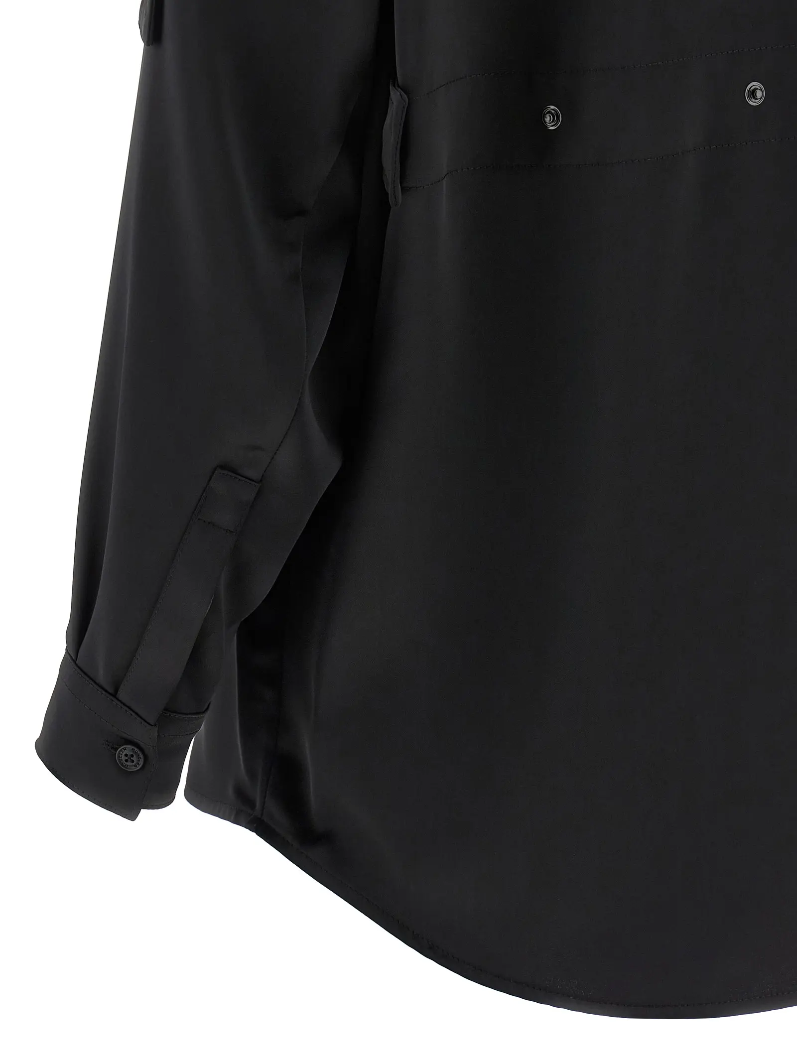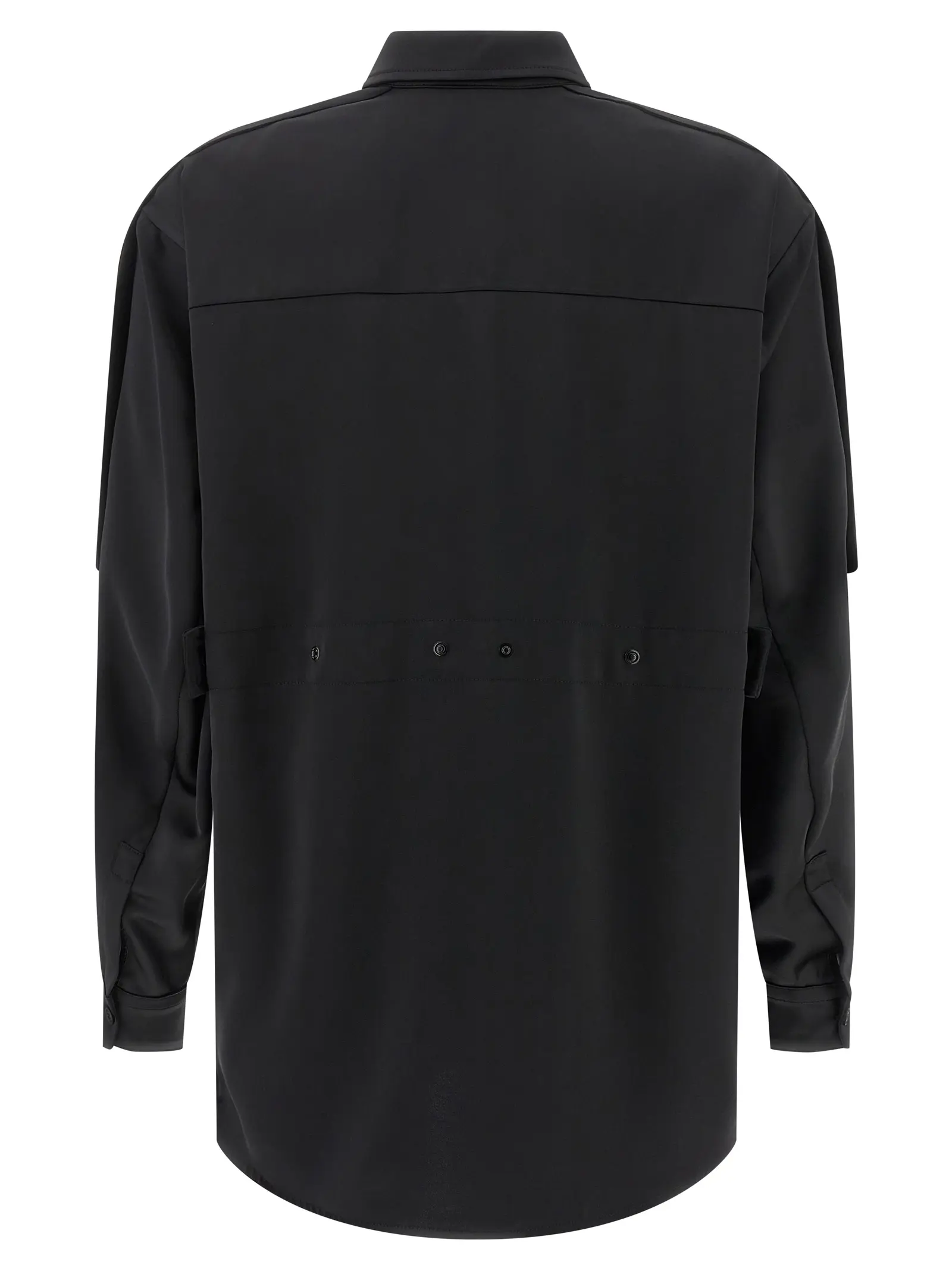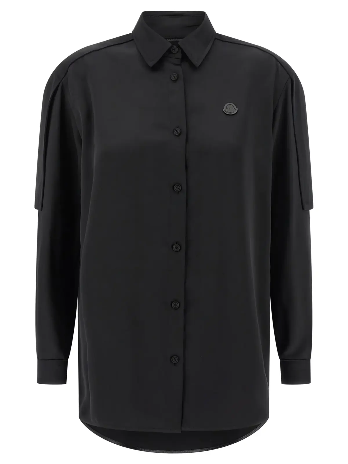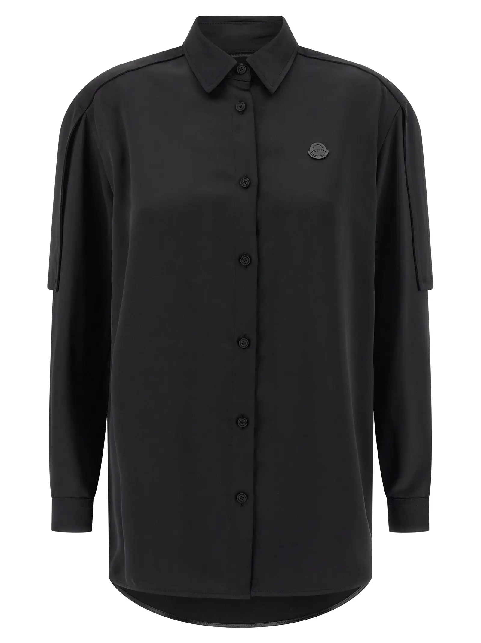 Чорна жіноча сорочка з колекції Moncler Genius x Edward Enninful виготовлена з ніжного сатину високої якості, що дарує неперевершену м’якість і комфорт. Вишуканий дизайн доповнений тонованою емблемою, передньою застібкою на ґудзики та регульованим поясом із кнопками, що підкреслює витончену талію. Ця модель поєднує інноваційність і універсальність, створюючи стильний образ, який підкреслює статус і бездоганний смак.