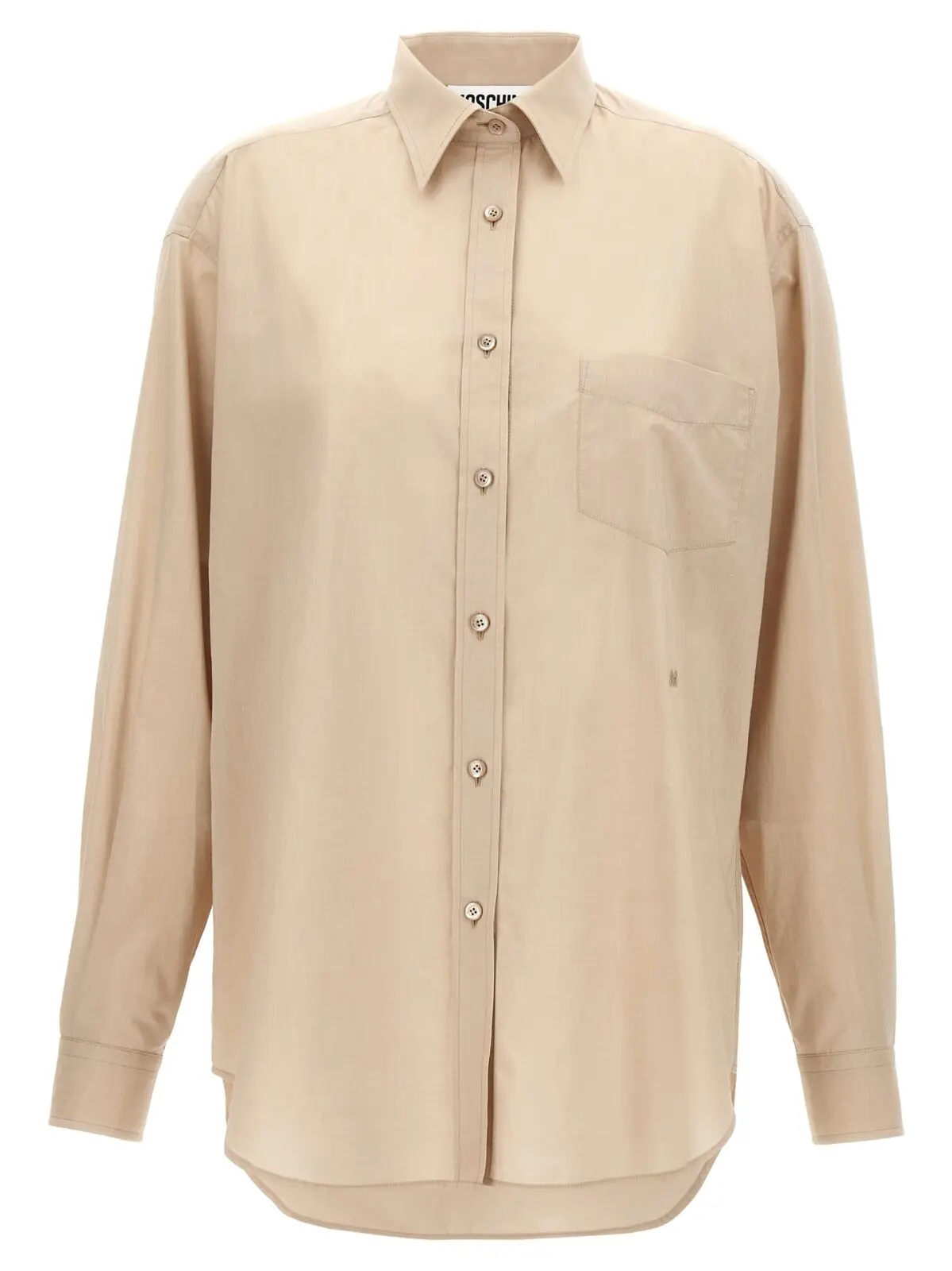 Сорочка Moschino з бавовни в елегантному бежевому кольорі вражає своєю досконалістю та простотою. Виконана із 100% натуральної бавовни, вона забезпечує неперевершений комфорт і дихаючість. Деталі, такі як накладний кишеня, вишивка на передній частині та довгі рукави з манжетами, надають виробу стильного характеру. Слегка вільний крій робить цю сорочку універсальним елементом гардеробу, що підходить для різних випадків, від повсякденного до ділового. Ця річ відображає статус, елегантність та інноваційний підхід бренду, також акцентуючи увагу на екологічності використаних матеріалів.