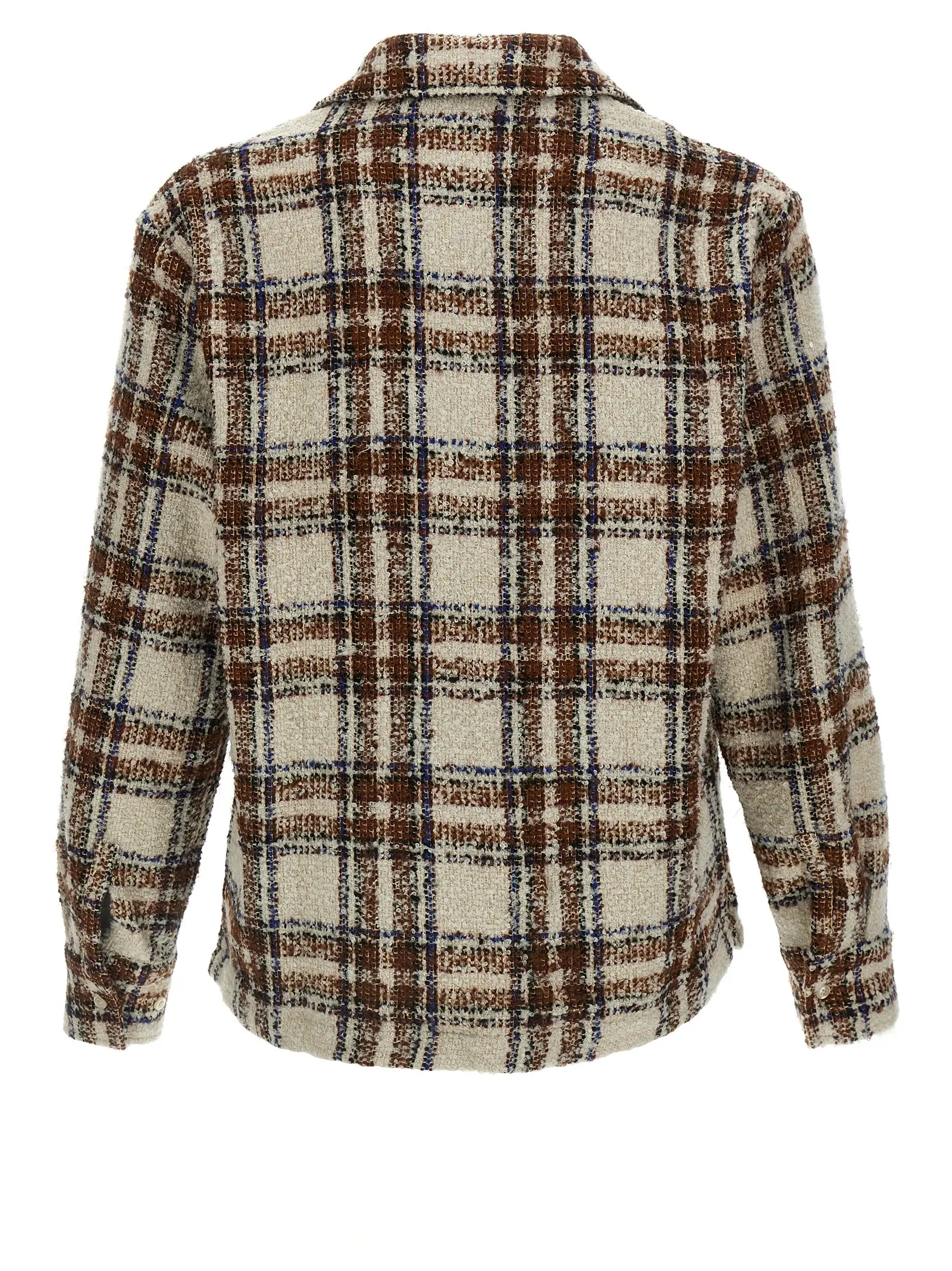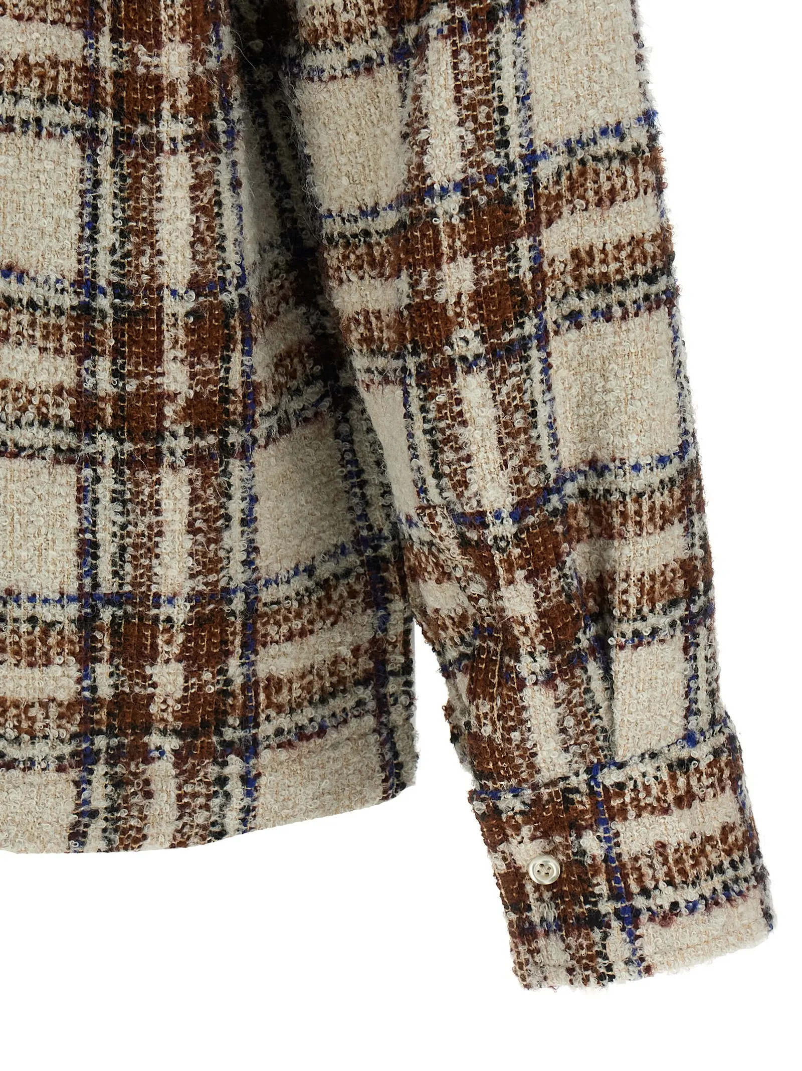 Фактурна пряжа букле перетворює класичну клітинку на об’ємне полотно, до якого хочеться торкатися знову і знову. Вишуканий V-подібний виріз додає образу невимушеної легкості, поки натуральний перламутр на ґудзиках делікатно відблискує у променях світла. Бокові розрізи забезпечують бездоганну динаміку рухів, перетворюючи виріб зі змішаної вовни на справжній витвір трикотажного мистецтва для поціновувачів тактильної естетики.