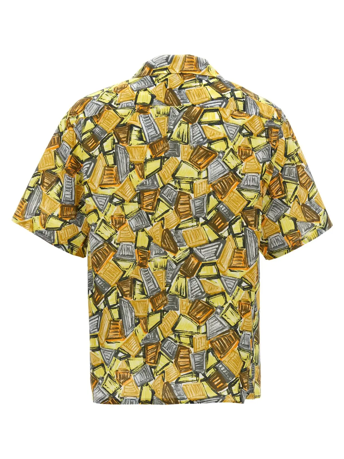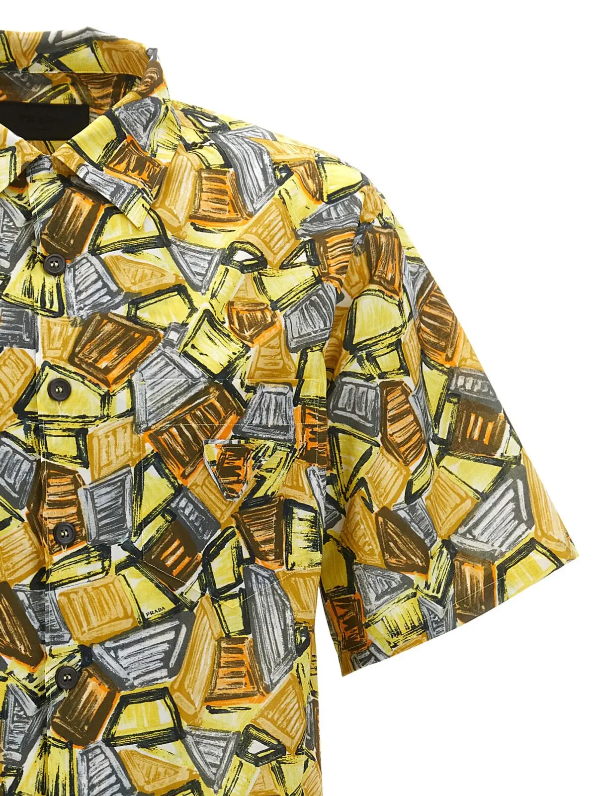 Сорочка Prada Batista Triangl у жовтому кольорі виготовлена з високоякісної поплінової бавовни, що забезпечує неперевершений комфорт та дихаючі властивості. Унікальний принт з логотипом бренду надає виробу стильного вигляду, а короткі рукави та бічні розрізи гарантують свободу рухів. Функціональний нагрудний кишеню та кнопкова застібка підкреслюють елегантність, роблячи цю сорочку ідеальним вибором для сучасного чоловіка, який цінує стиль та якість.
