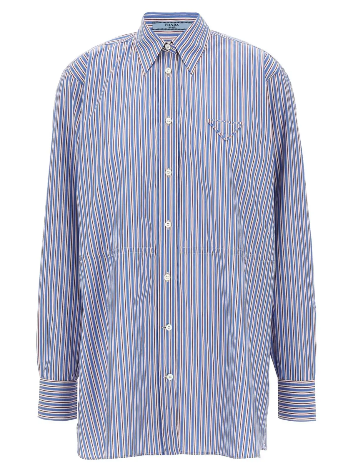 Багатокольорова сорочка Prada, виготовлена з 100% бавовни, вражає своїм витонченим дизайном та високою якістю матеріалів. Стильний трикутний логотип у тон, регульований шнурок на талії та довгі рукави з манжетами підкреслюють інноваційний підхід бренду до класичних елементів. Бокові розрізи додають легкості, роблячи цю модну річ універсальною для будь-якої нагоди. Сорочка не лише відображає статус, але й забезпечує комфорт та стиль, підкреслюючи вашу індивідуальність.
