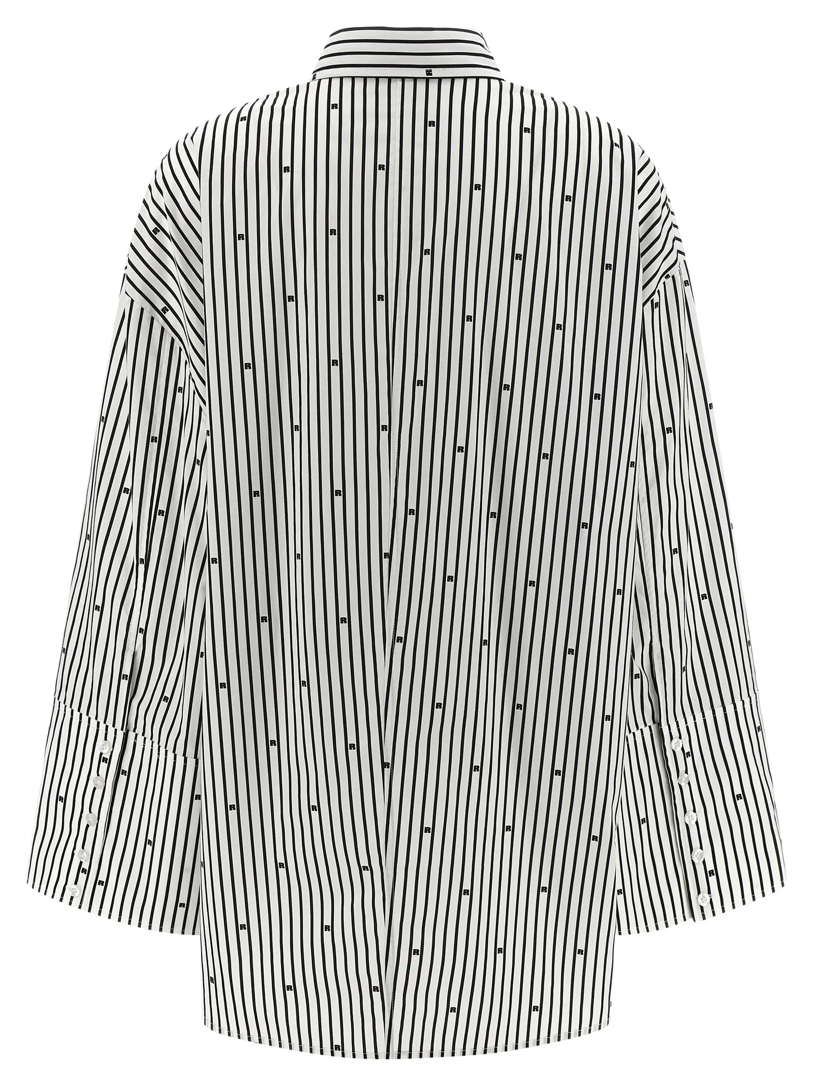 Елегантна сорочка з 100% бавовняного попліну в чорно-білу смужку, поєднує в собі вишуканий дизайн з оверсайз силуетом та широкими рукавами з опущеними плечима. Вишукана деталізація та бездоганна якість матеріалів підкреслюють статус і забезпечують комфорт у будь-якій ситуації.