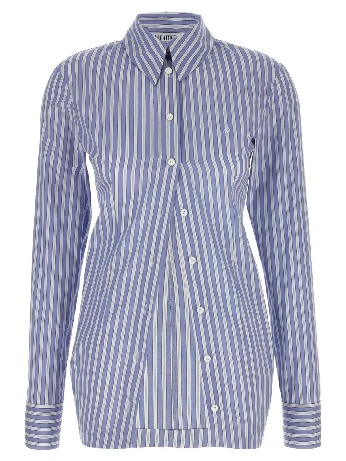 Ця багатокольорова сорочка з 100% бавовни вирізняється класичним коміром, злегка розкльошеним кроєм та елегантною вишивкою логотипу спереду. Поєднуючи інноваційний дизайн і неперевершену якість, вона підкреслює статус і витончений стиль своєї власниці, забезпечуючи комфорт і універсальність у будь-якому образі.