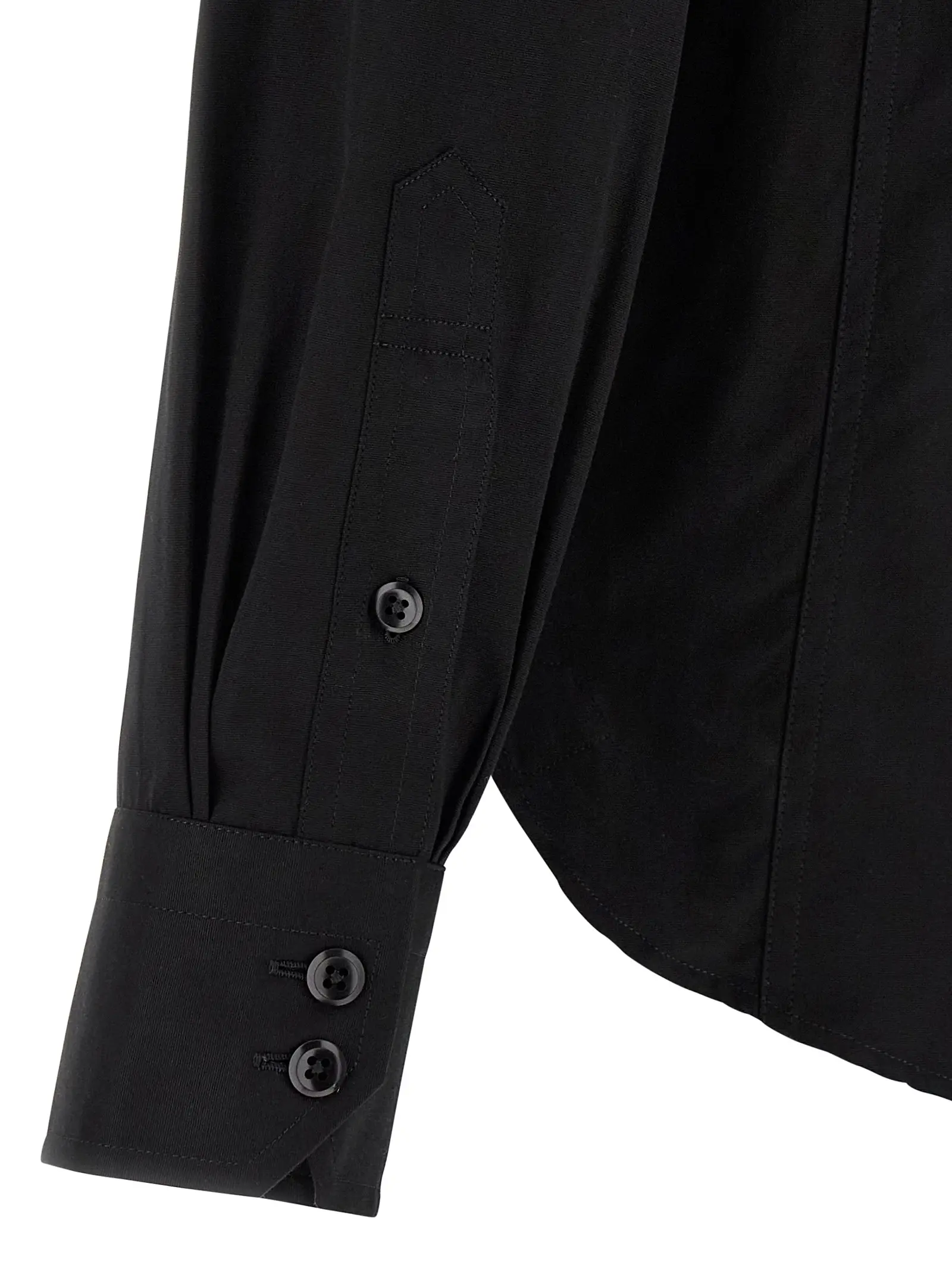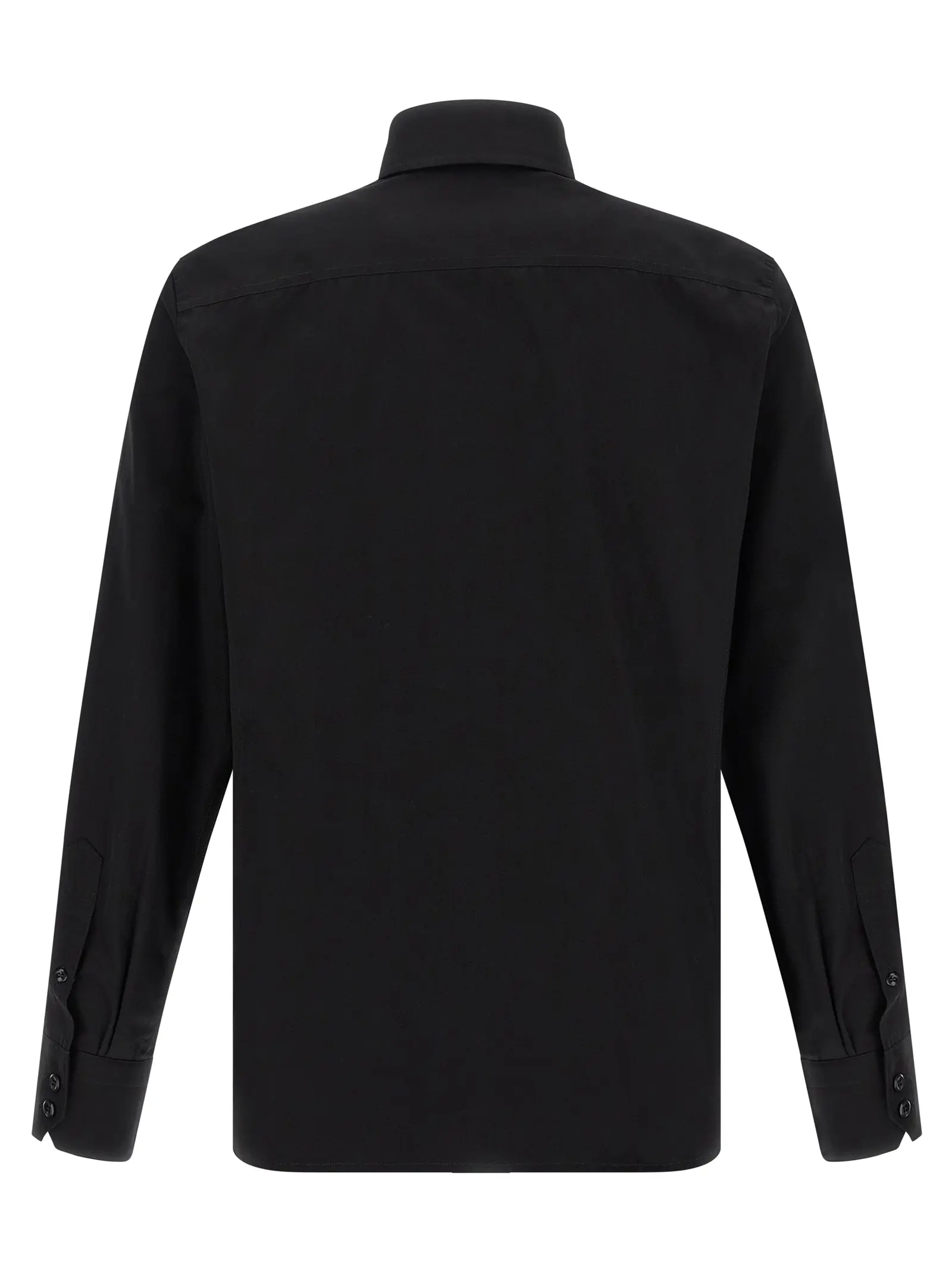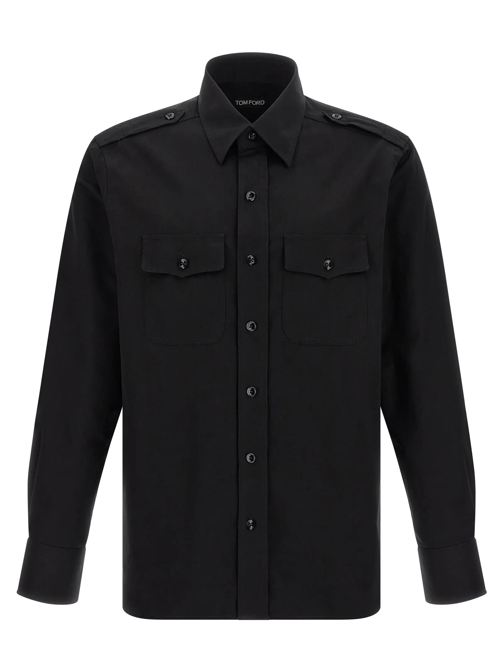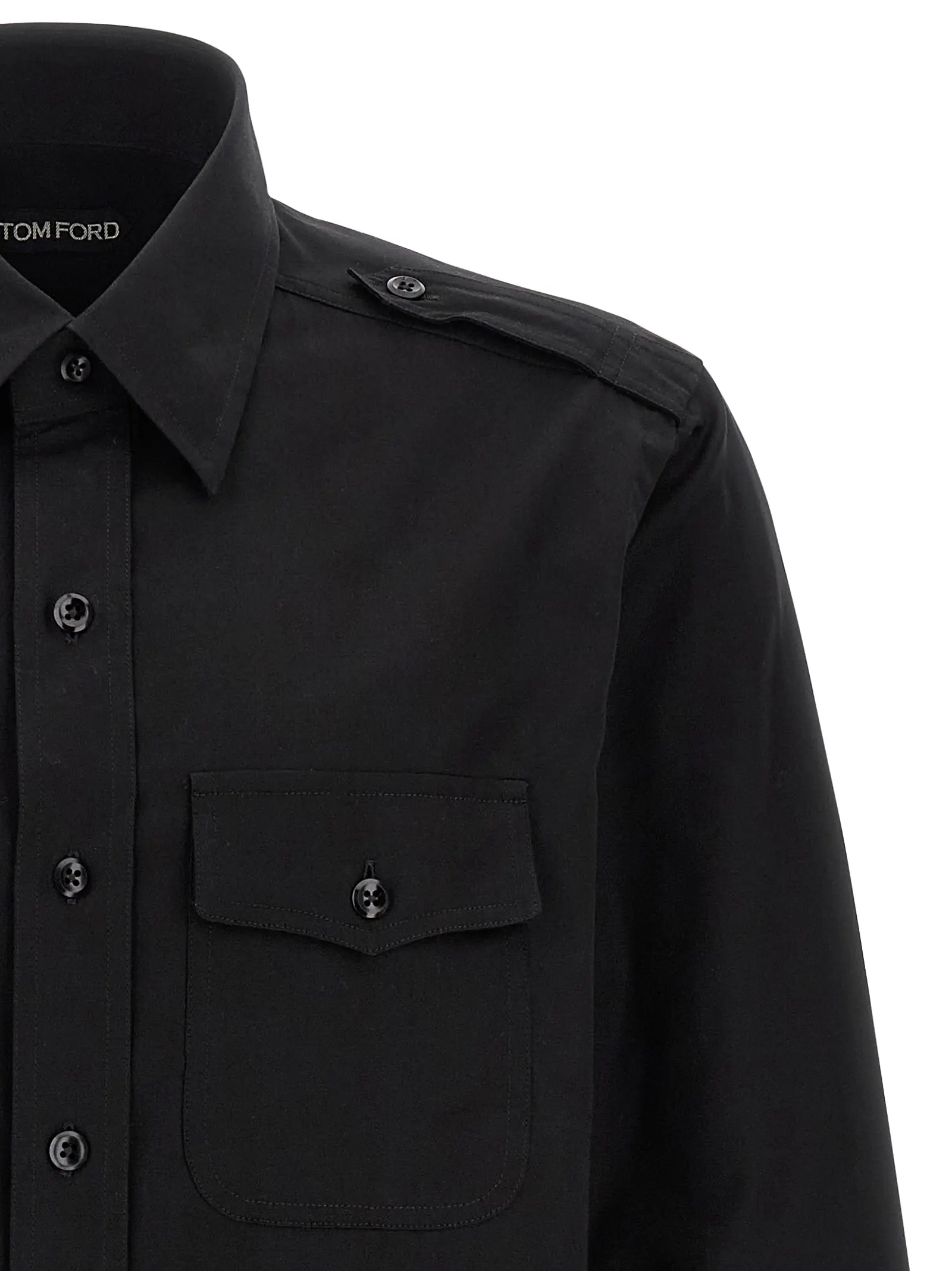 Чорна сорочка Military із суміші бавовни та шовку поєднує в собі вишуканість і комфорт, підкреслюючи статус і бездоганний стиль. Витончені деталі, такі як нагрудні кишені, шеврони та довгі манжети, надають виробу інноваційності та універсальності для будь-яких випадків.