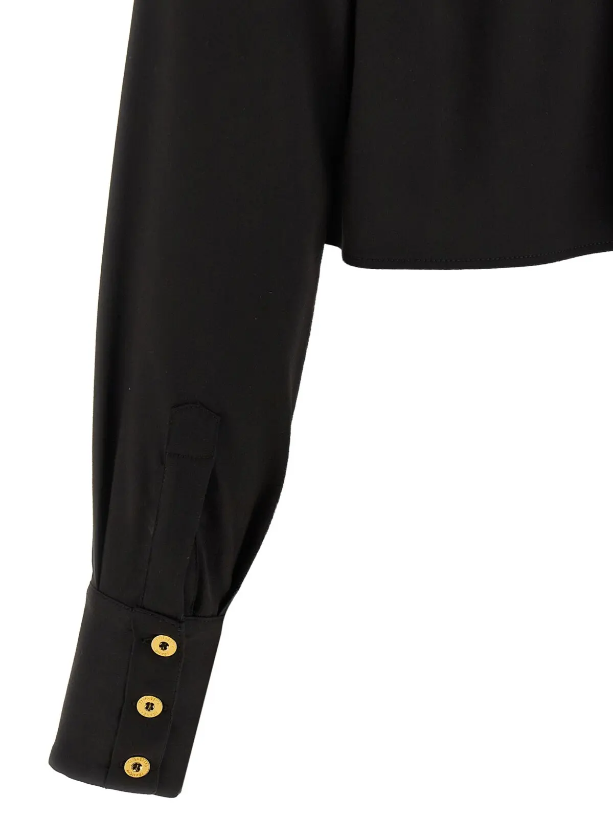 Елегантна укорочена сорочка з натурального сатинового бавовняного полотна з додаванням еластану для ідеального прилягання, оснащена застібкою спереду, витонченими підплічниками та довгими манжетами. Поєднує в собі вишуканий дизайн і комфорт, підкреслюючи статус і сучасний стиль.