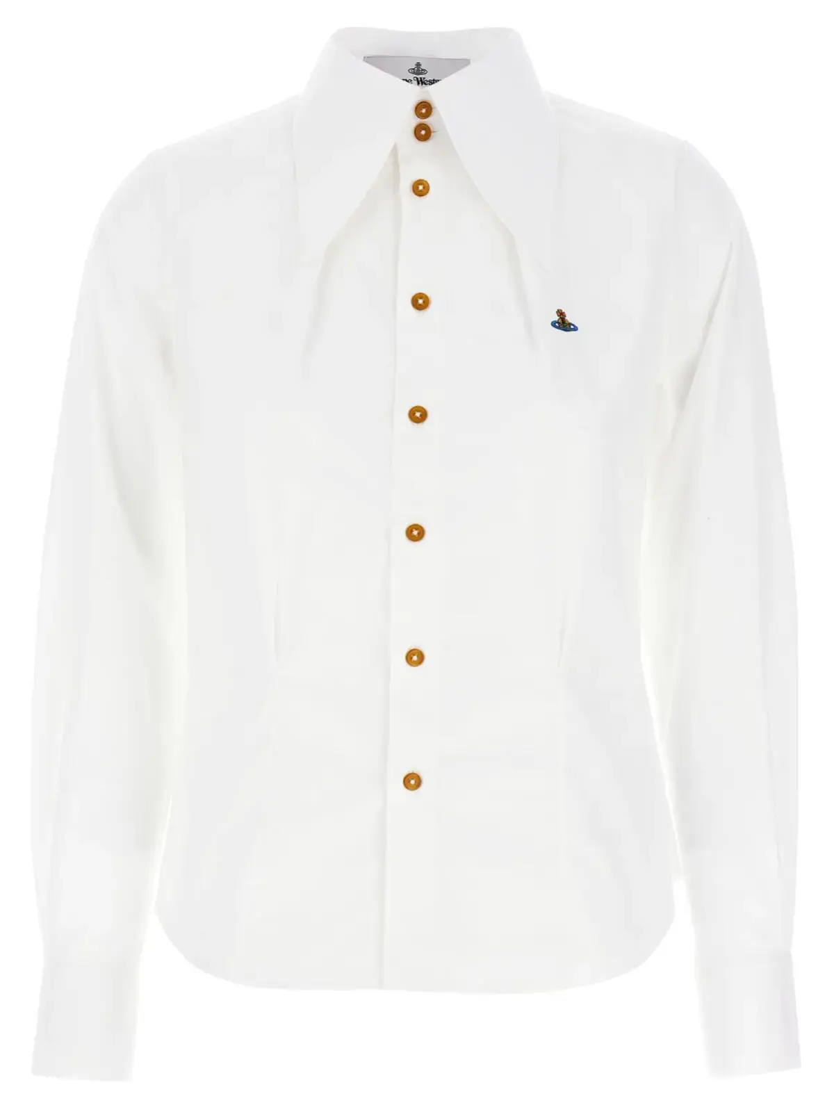 Сорочка Vivienne Westwood W Violin в білому кольорі є втіленням елегантності та інноваційності. Виготовлена з 100% бавовни, вона має оверсайз комір, який надає виробу унікальності, а вишитий логотип Orb відображає статус бренду. Класичні гудзики та довгі рукави з манжетами підкреслюють стиль, а універсальний дизайн дозволяє поєднувати цю сорочку з різними образами, від повсякденних до вечірніх. Висока якість матеріалів гарантує комфорт та довговічність, роблячи її безсмертною класикою у вашому гардеробі.