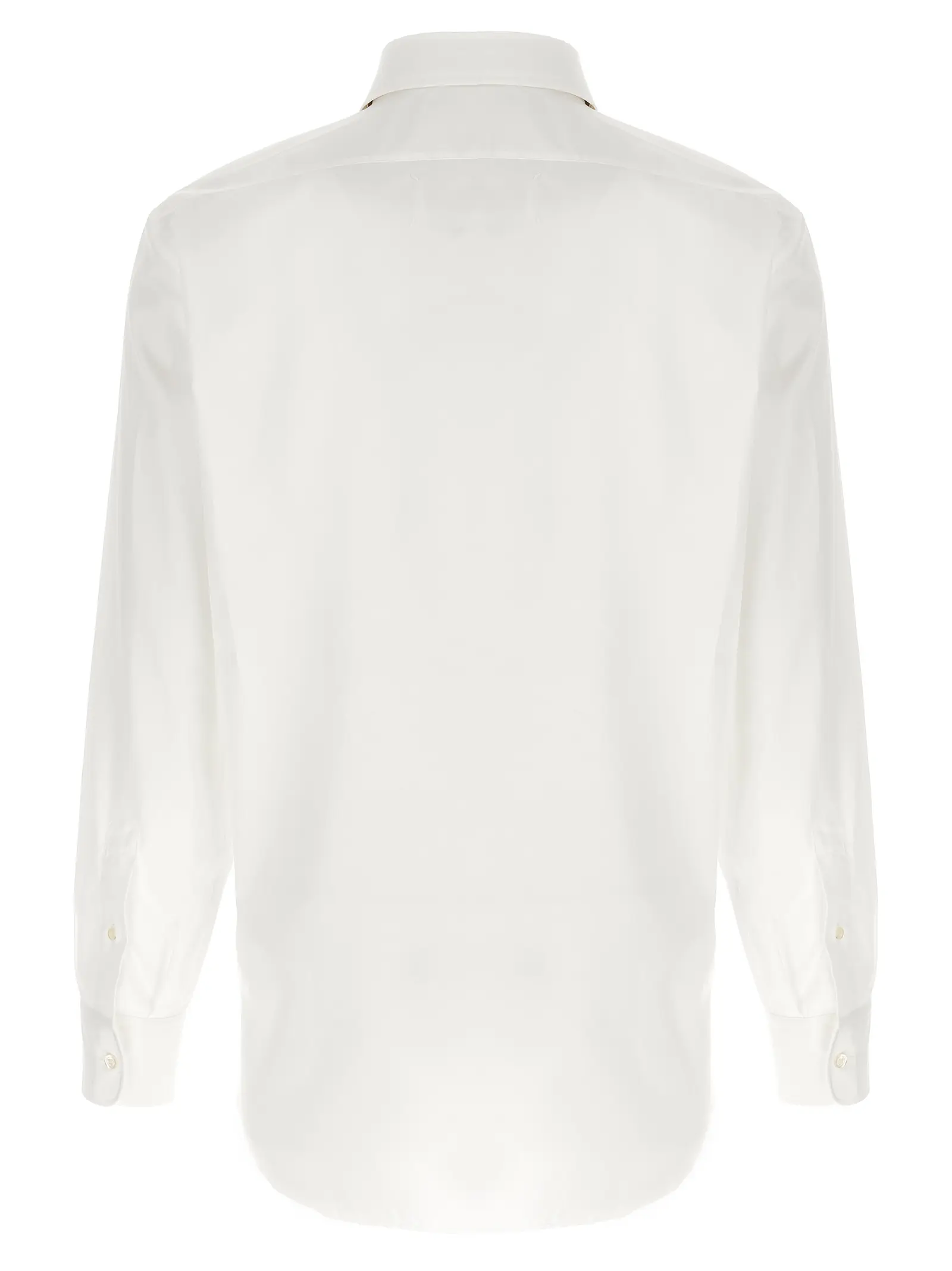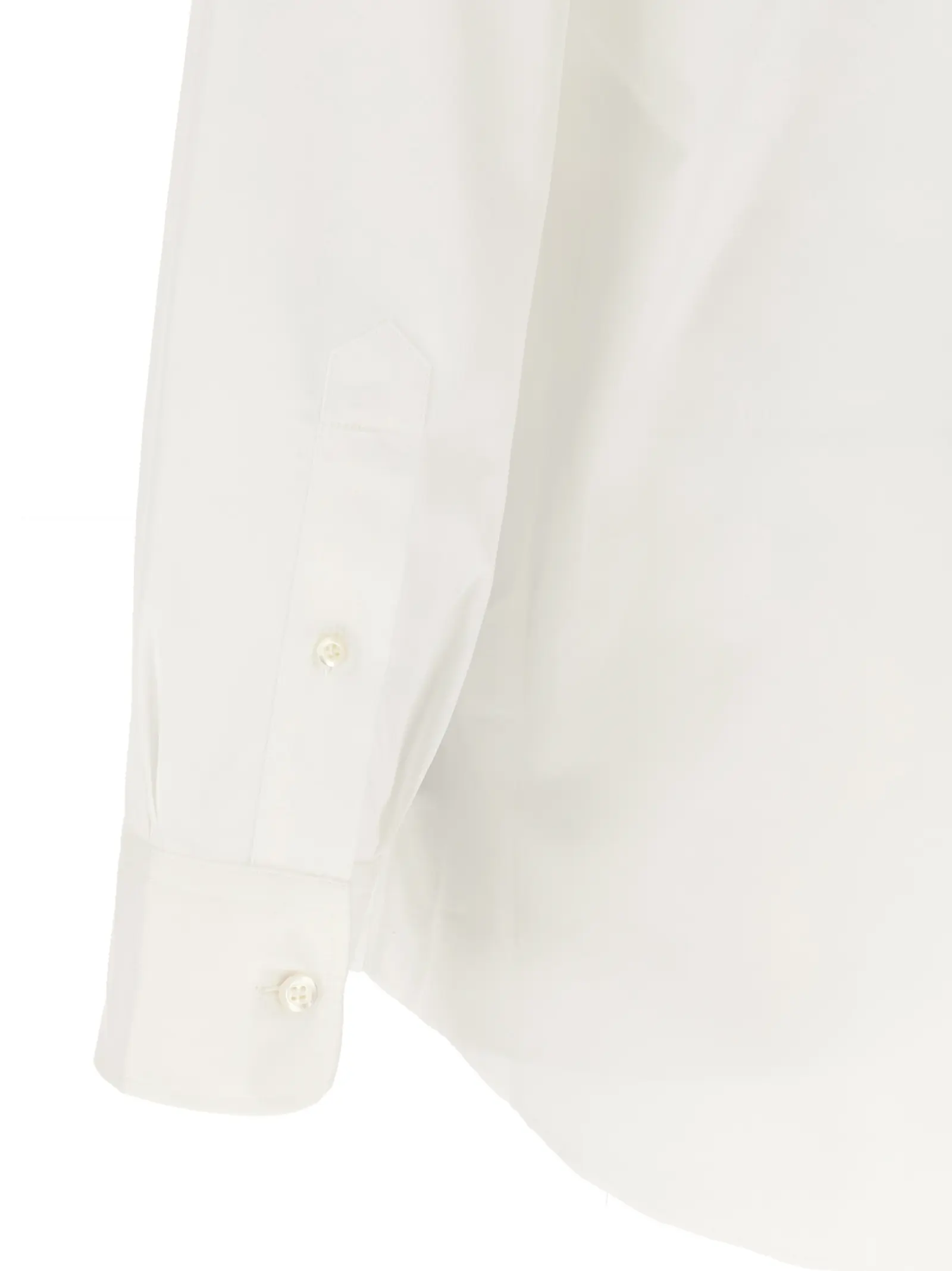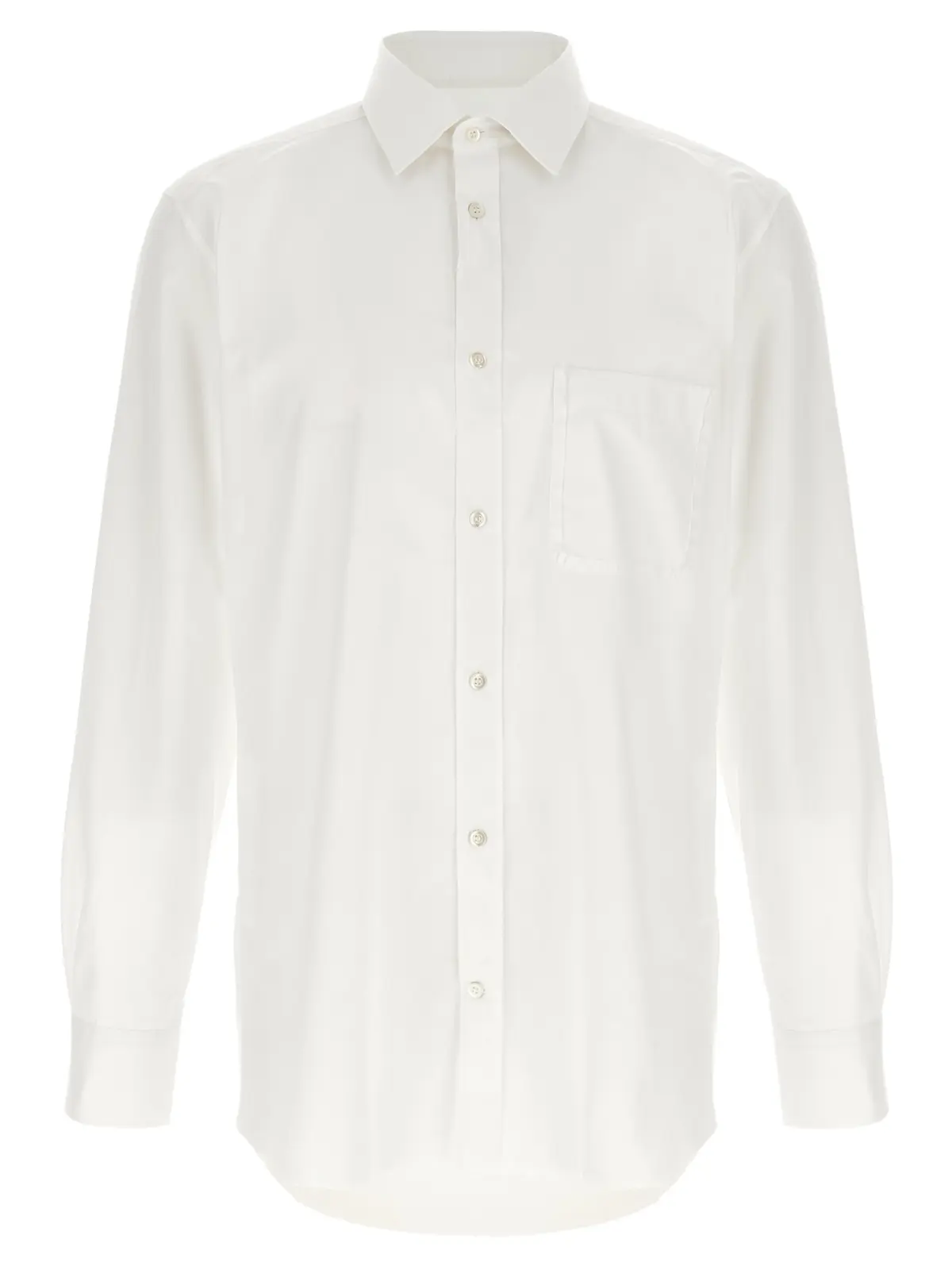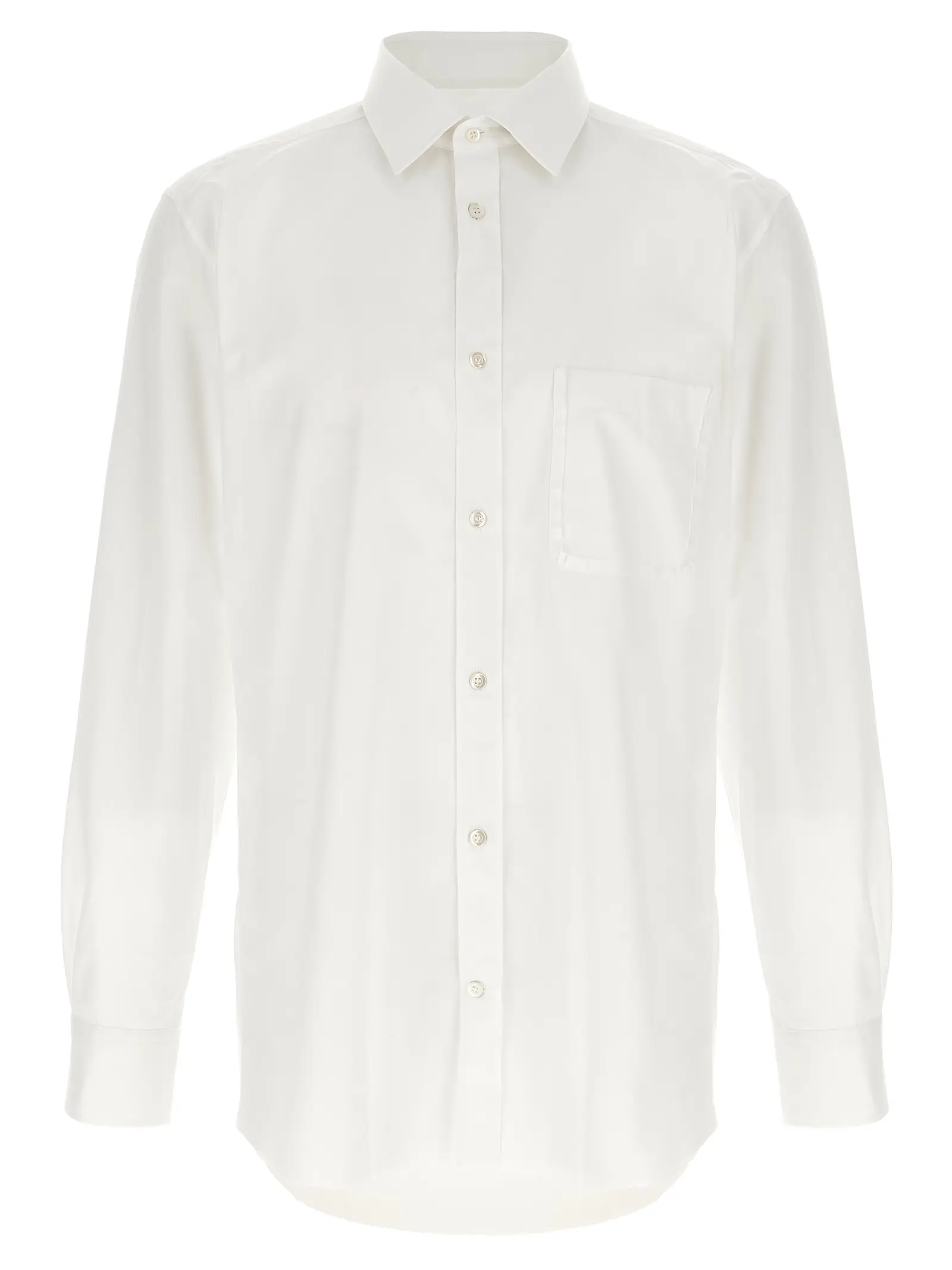 Стовідсотковий бавовняний поплін. Нагрудна кишеня, фронтальна застібка на ґудзиках, довгі рукави з манжетами та необроблений край подолу.