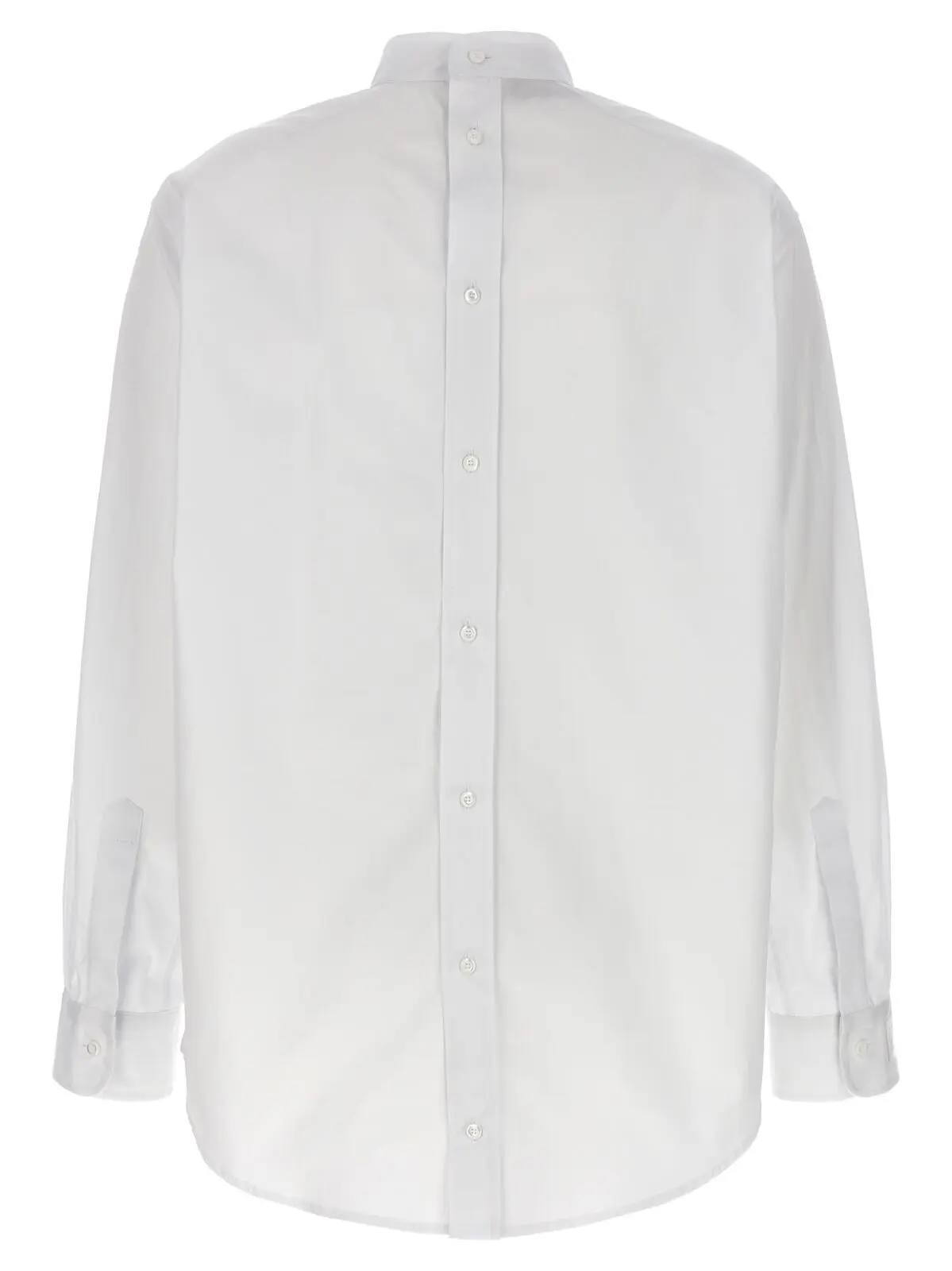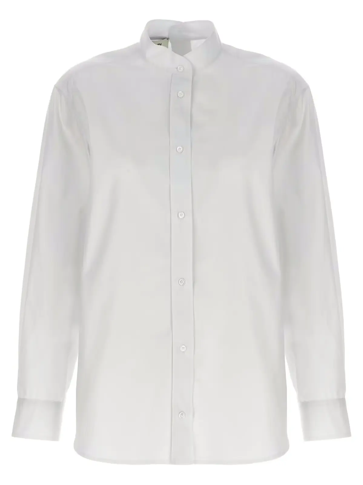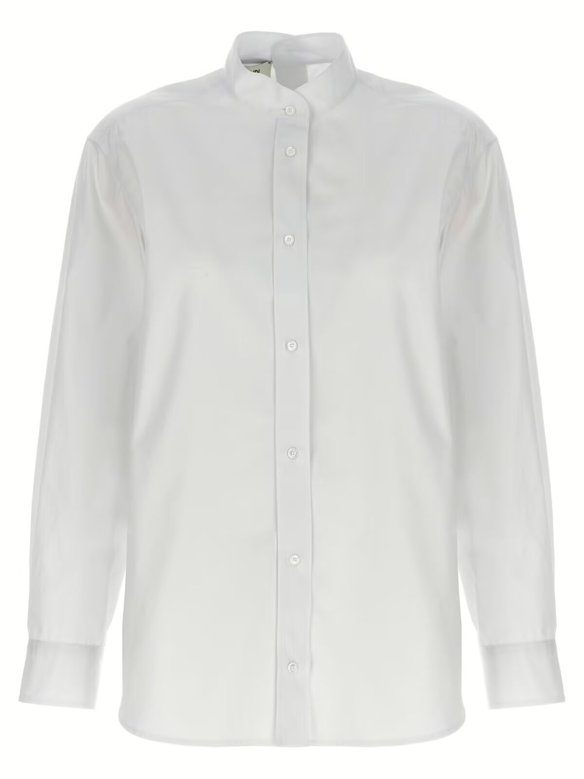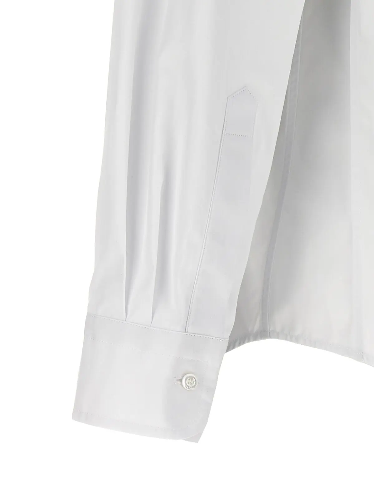 Елегантна біла сорочка Fendi, виконана з високоякісного попліну, прикрашена вишивкою логотипу на манжетах. Модель має стійку, застібку спереду та ззаду і довгі рукави з манжетами. Склад: 100% бавовна.