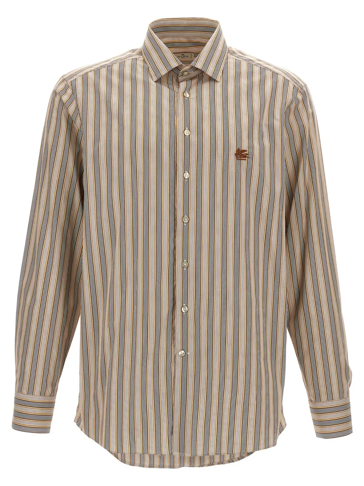 Ця сорочка з вишитим логотипом Etro вражає своїм багатокольоровим дизайном та елегантними лініями, які підкреслюють індивідуальність кожного чоловіка. Виготовлена з 100% бавовни, вона забезпечує надзвичайний комфорт і дихаючість, що робить її ідеальним вибором для будь-якої пори року. Класичний фасон з довгими рукавами та манжетами на ґудзиках гармонійно поєднує традиційний стиль з сучасними тенденціями. Вишуканий вишитий логотип у формі Пегасу надає виробу особливого характеру, підкреслюючи статус власника. Ця сорочка стане універсальним елементом гардеробу, що легко поєднується як з класичними, так і з повсякденними образами, відображаючи ваш бездоганний смак та стиль. Вибираючи цей продукт, ви обираєте якість та інноваційність, що робить його справжньою інвестицією в ваш імідж.
