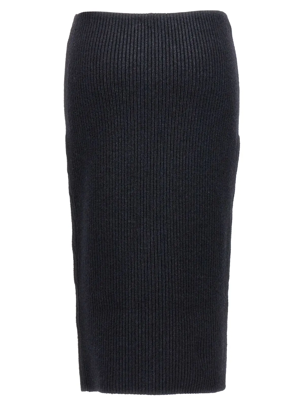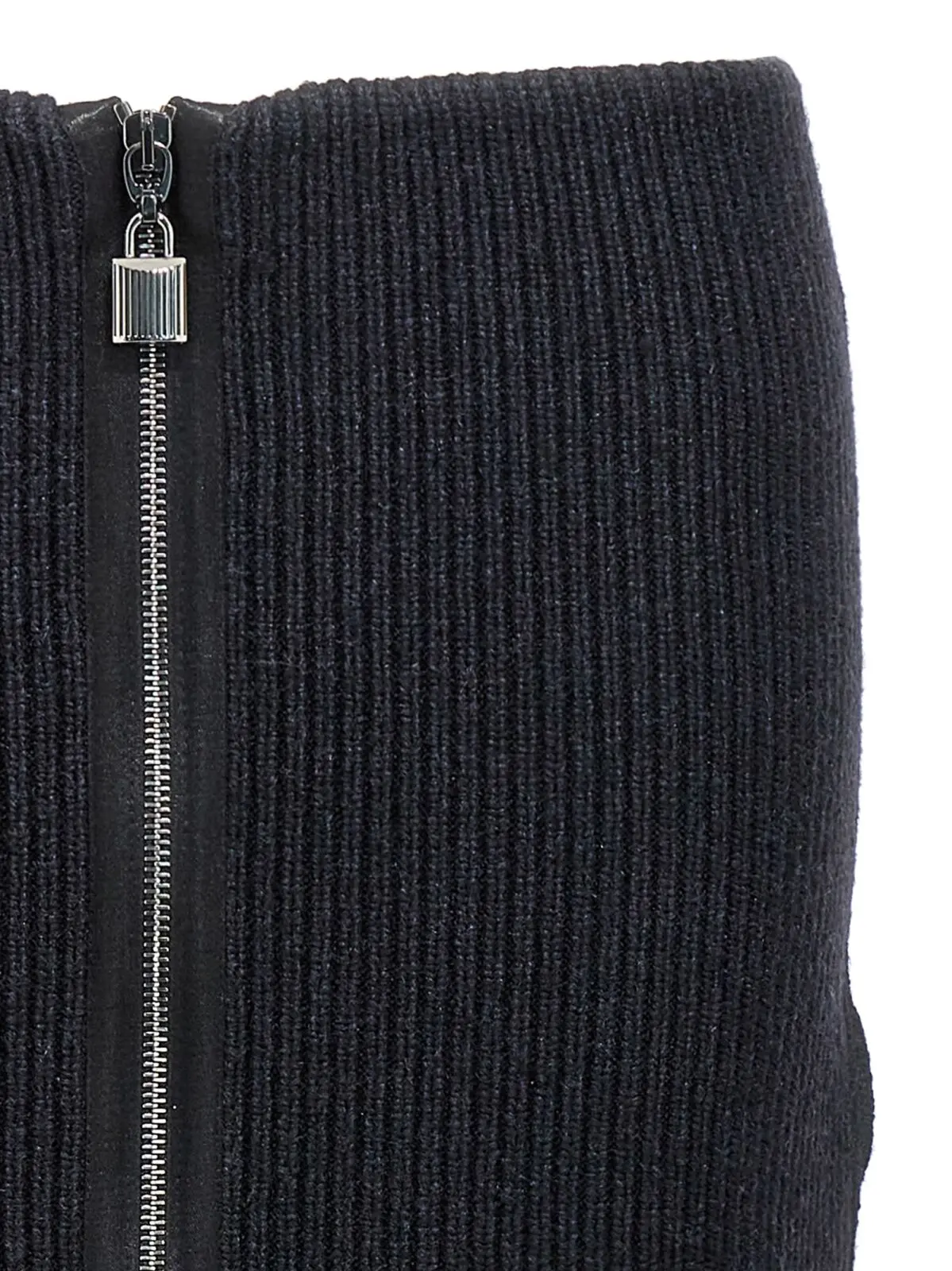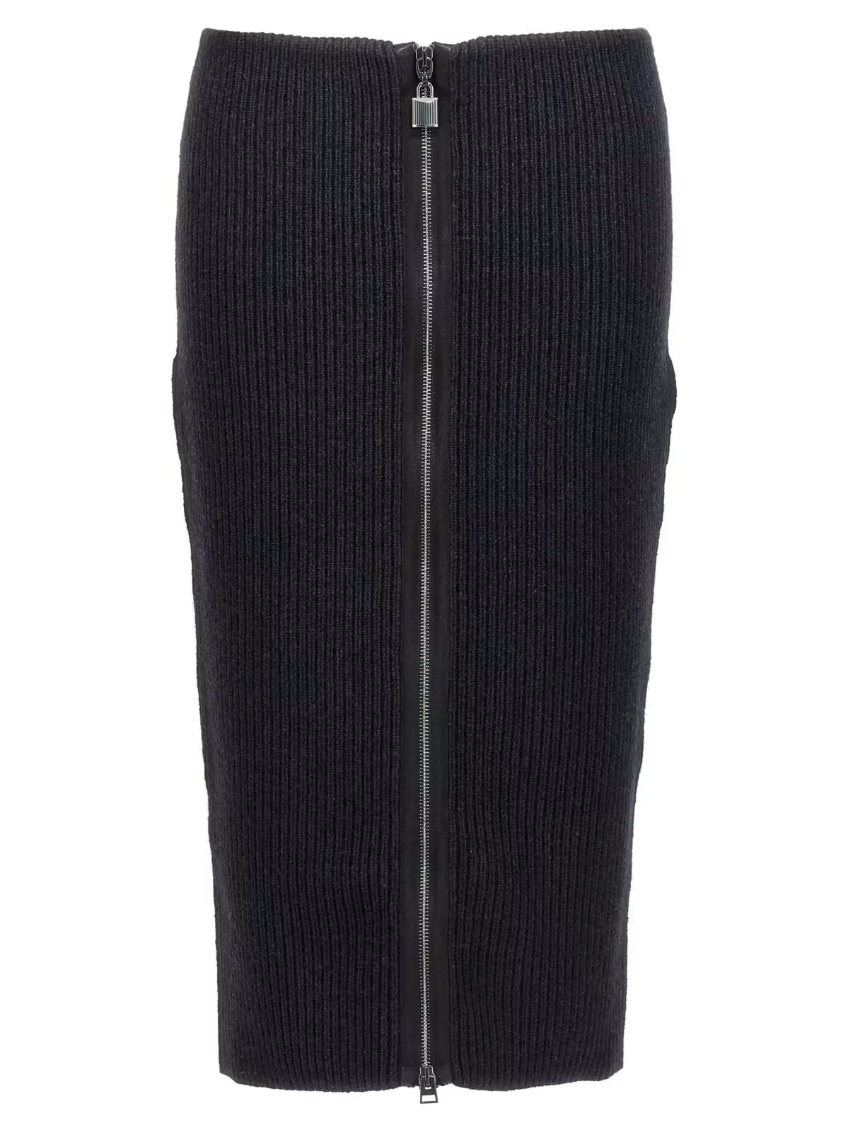 Спідниця Tom Ford 5GG в чорному кольорі з ребристим в’язанням з компактної вовни, з застібкою-блискавкою та деталлю з замком.