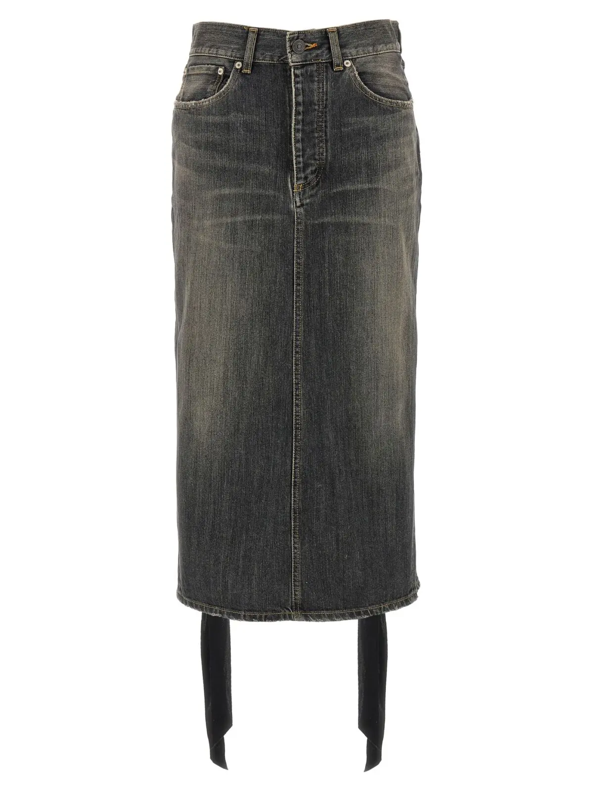 Ця елегантна сіра спідниця міді з деніму Balenciaga виготовлена з високоякісної 100% бавовни з ефектом stonewashed, що надає виробу неповторний стиль. Унікальний дизайн із передньою застібкою на ґудзики, п’ятьма практичними кишенями, довгими атласними шнурками та розрізом ззаду підкреслює інноваційність і універсальність, створюючи бездоганний образ статусної та впевненої у собі жінки.