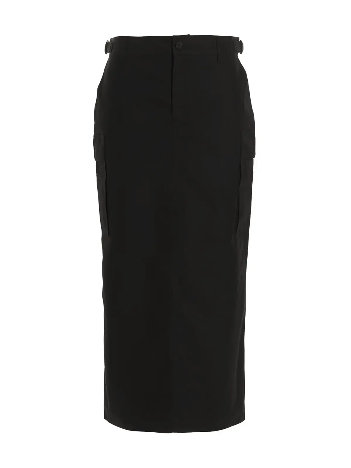 Чорна жіноча спідниця Cargo midi від Wardrobe Nyc. Виготовлена з 100% бавовни. Має застібку на блискавку та ґудзик, багато кишень і регульовані ремені в талії.