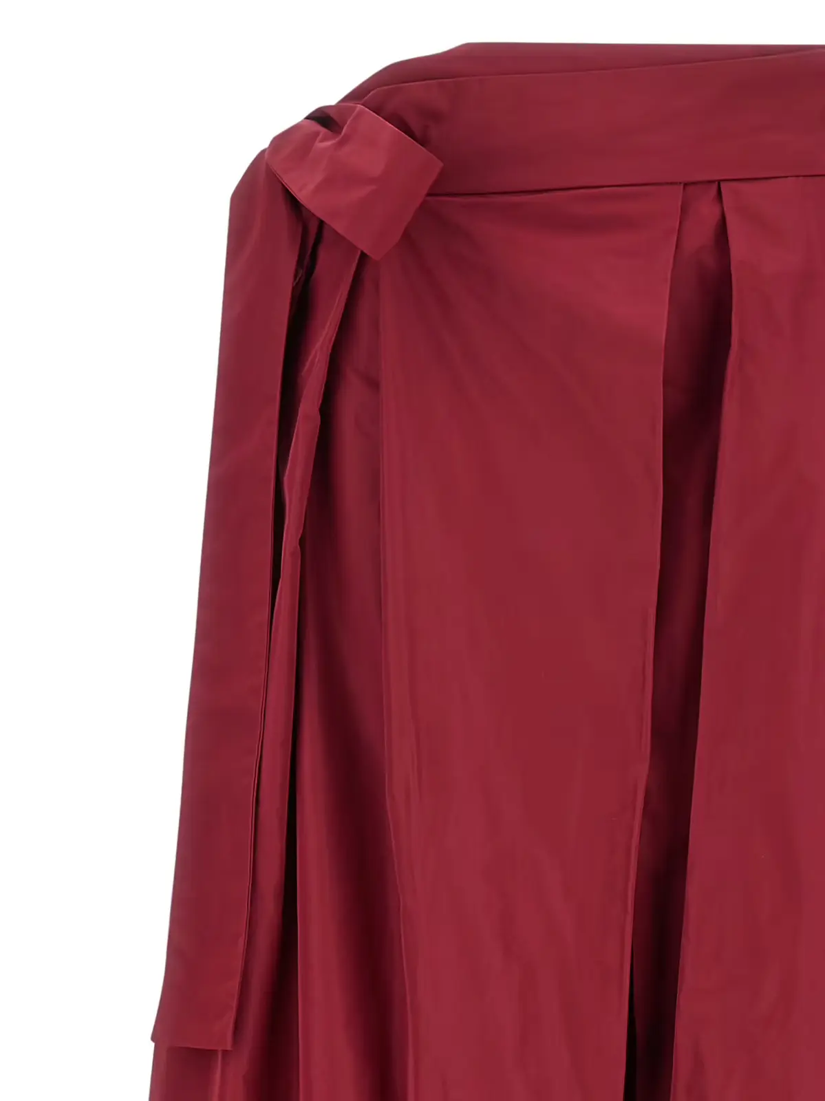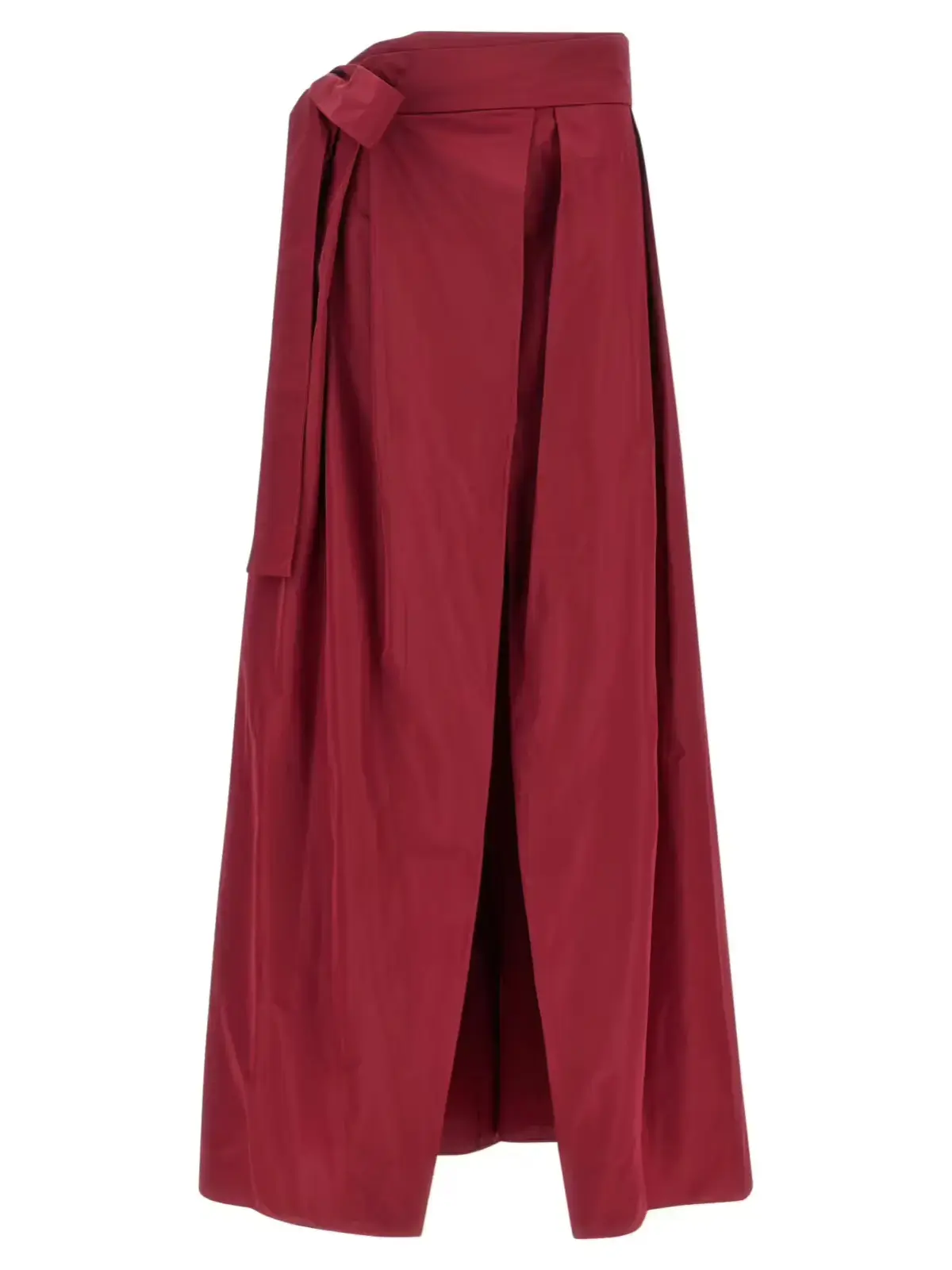 Вишукана бордова спідниця Cavallina від Pinko виконана з високоякісного тафту, що надає виробу легкість і благородний блиск. Елегантний дизайн із запахом, боковим бантом та глибоким розрізом підкреслює жіночність і створює неповторний стиль, ідеальний для статусних образів із сучасним акцентом.