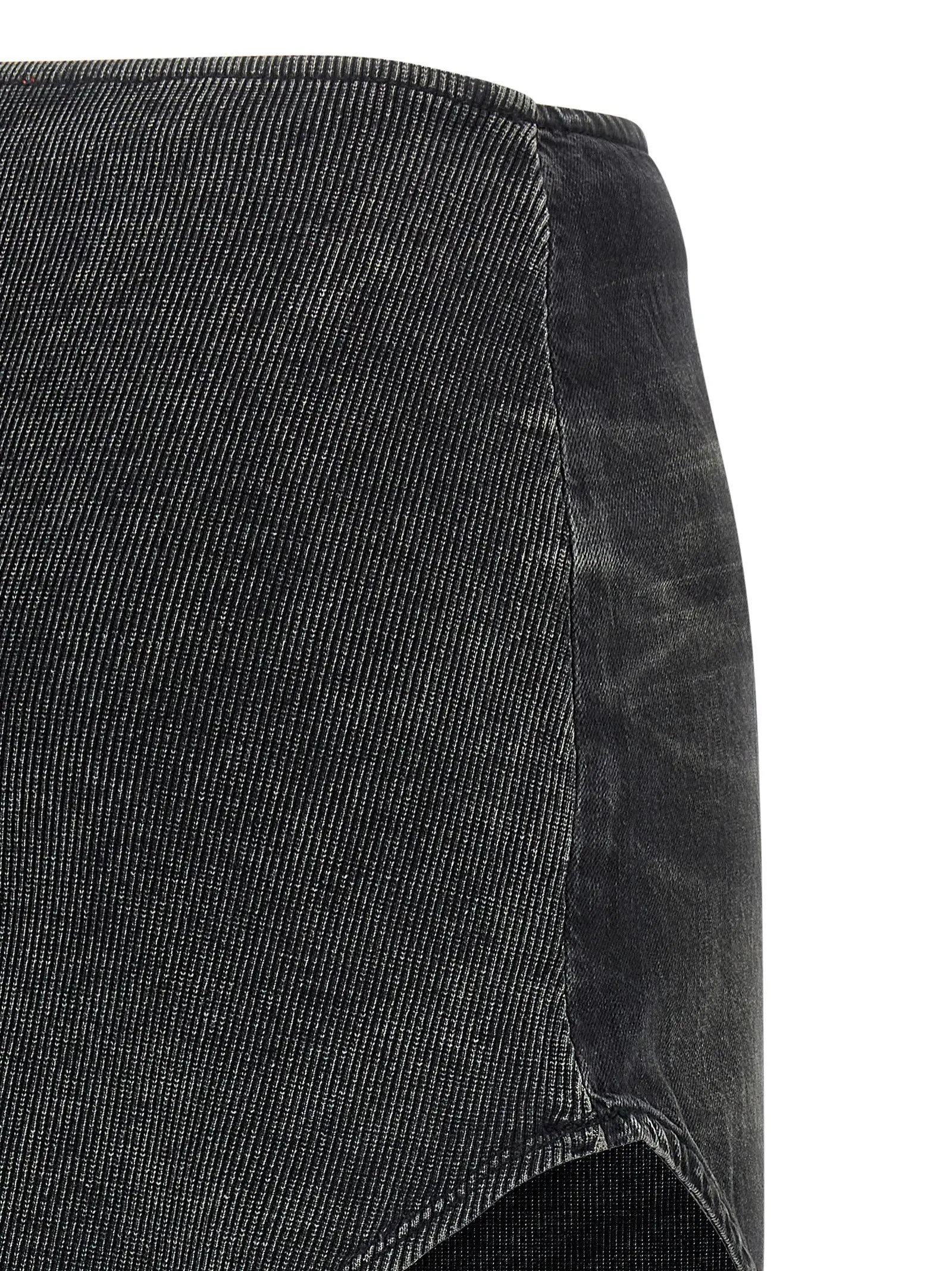 Стильна жіноча спідниця сіра з міні довжиною, виконана з поєднання stonewashed деніму та бавовняного піке, з металевим вирізаним логотипом спереду, боковою застібкою на блискавку та округлим подолом. Вишукана якість матеріалів забезпечує комфорт і довговічність, підкреслюючи сучасний статус і неперевершений стиль.