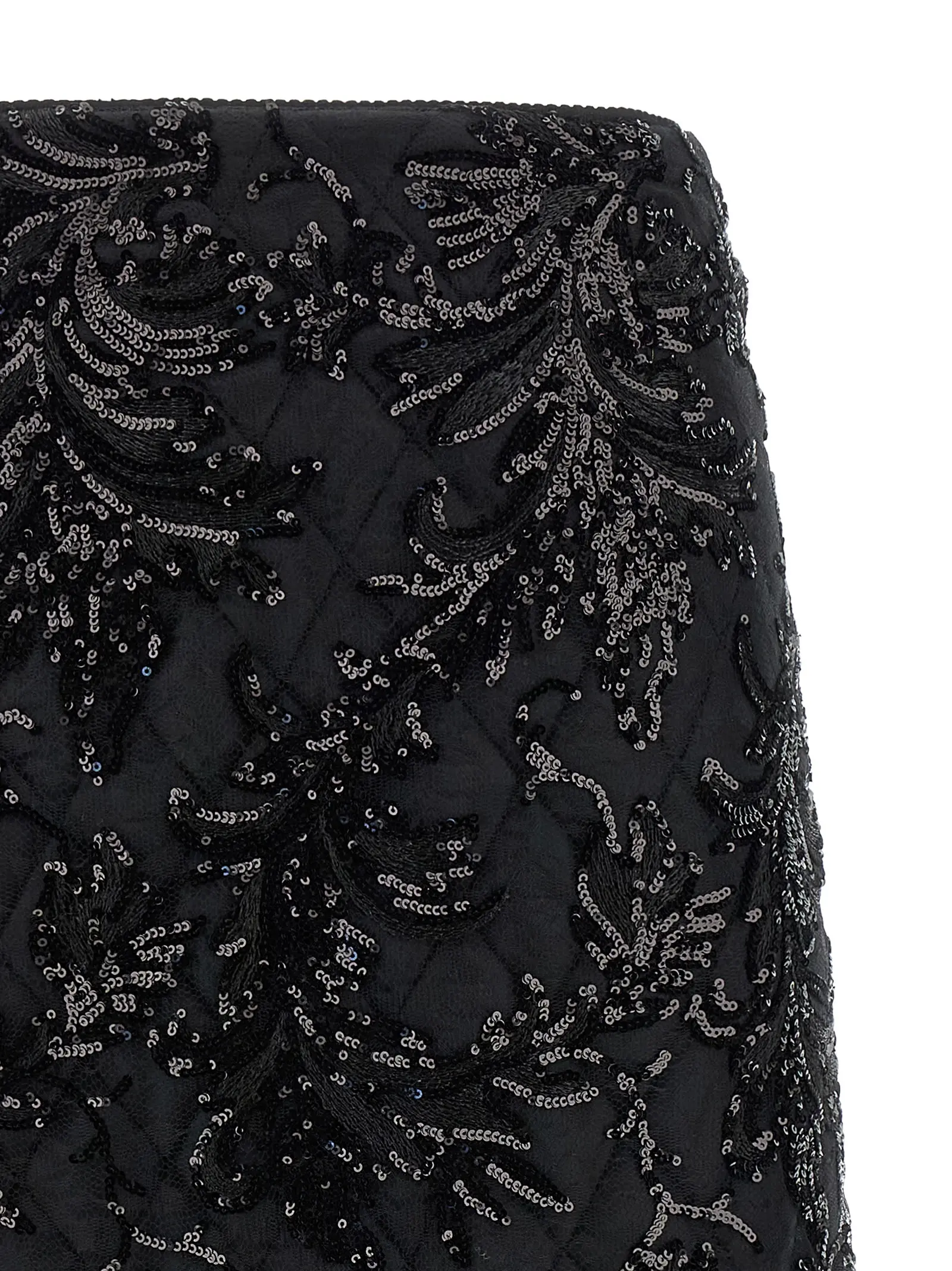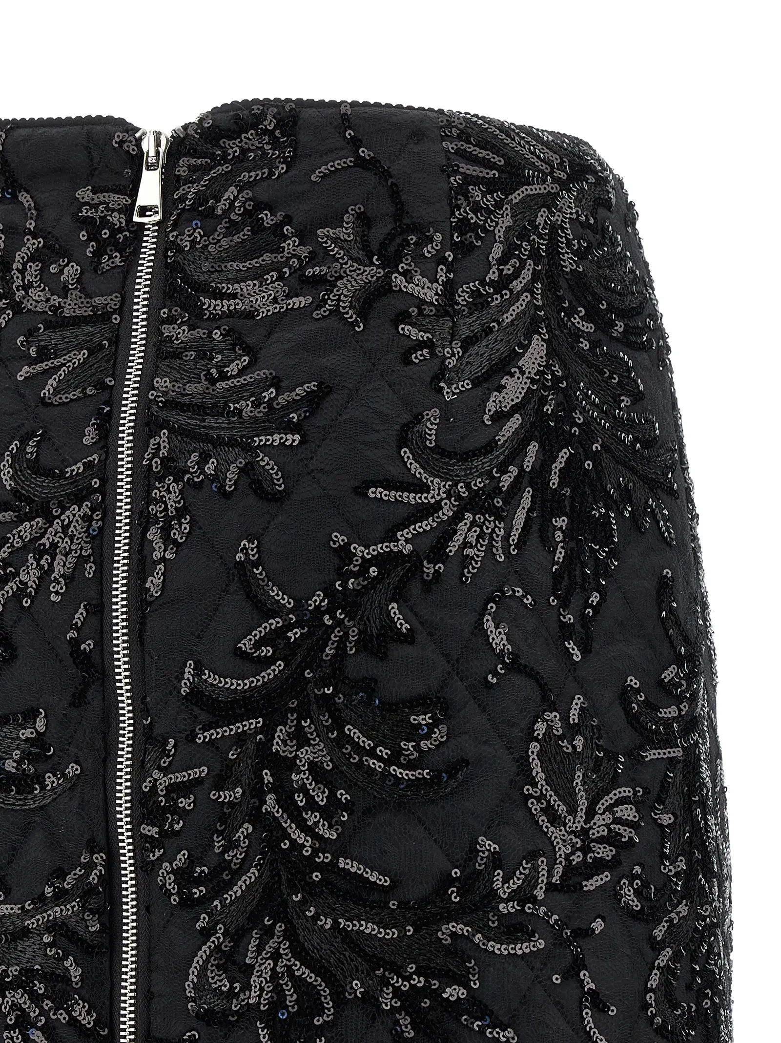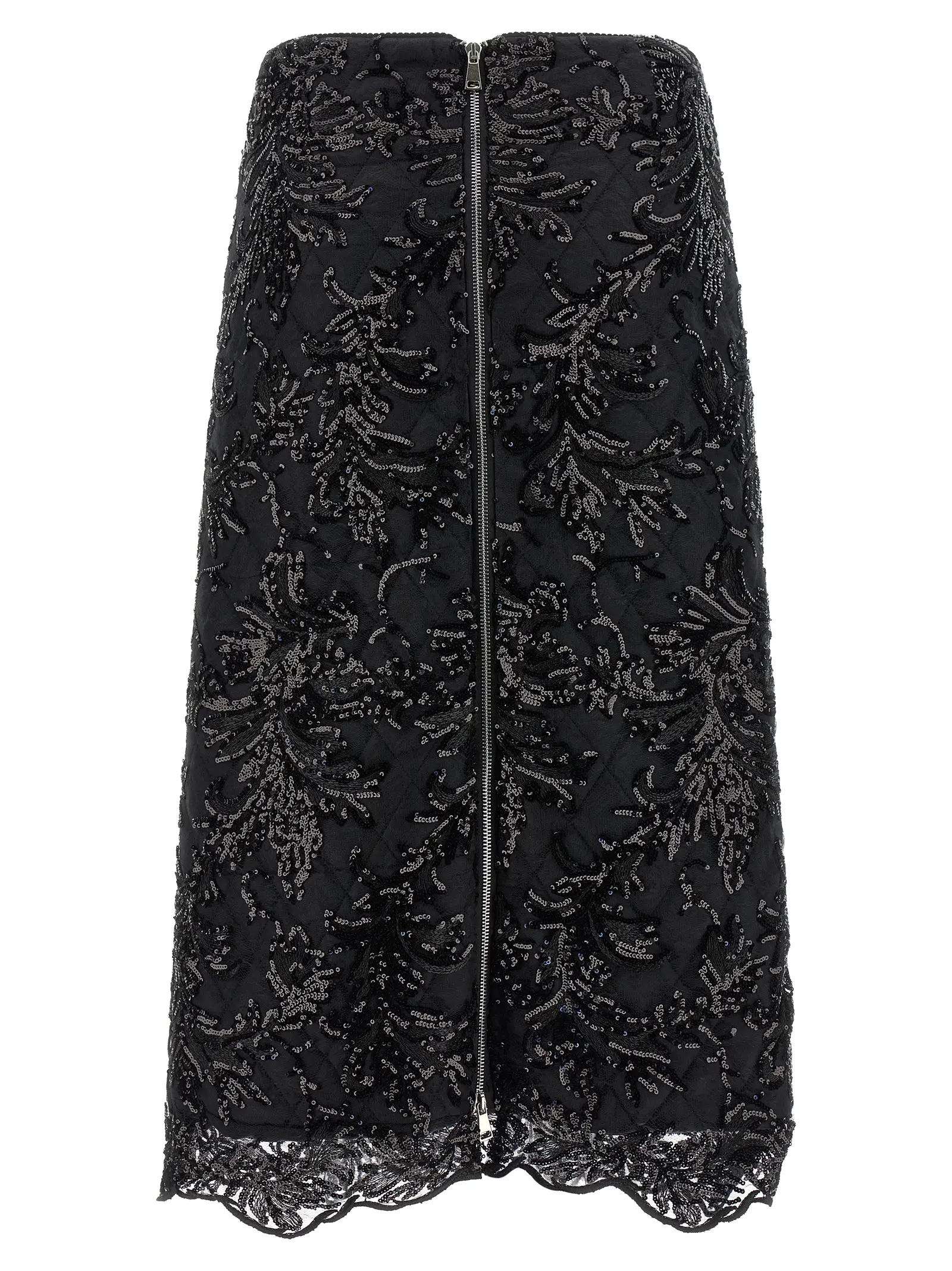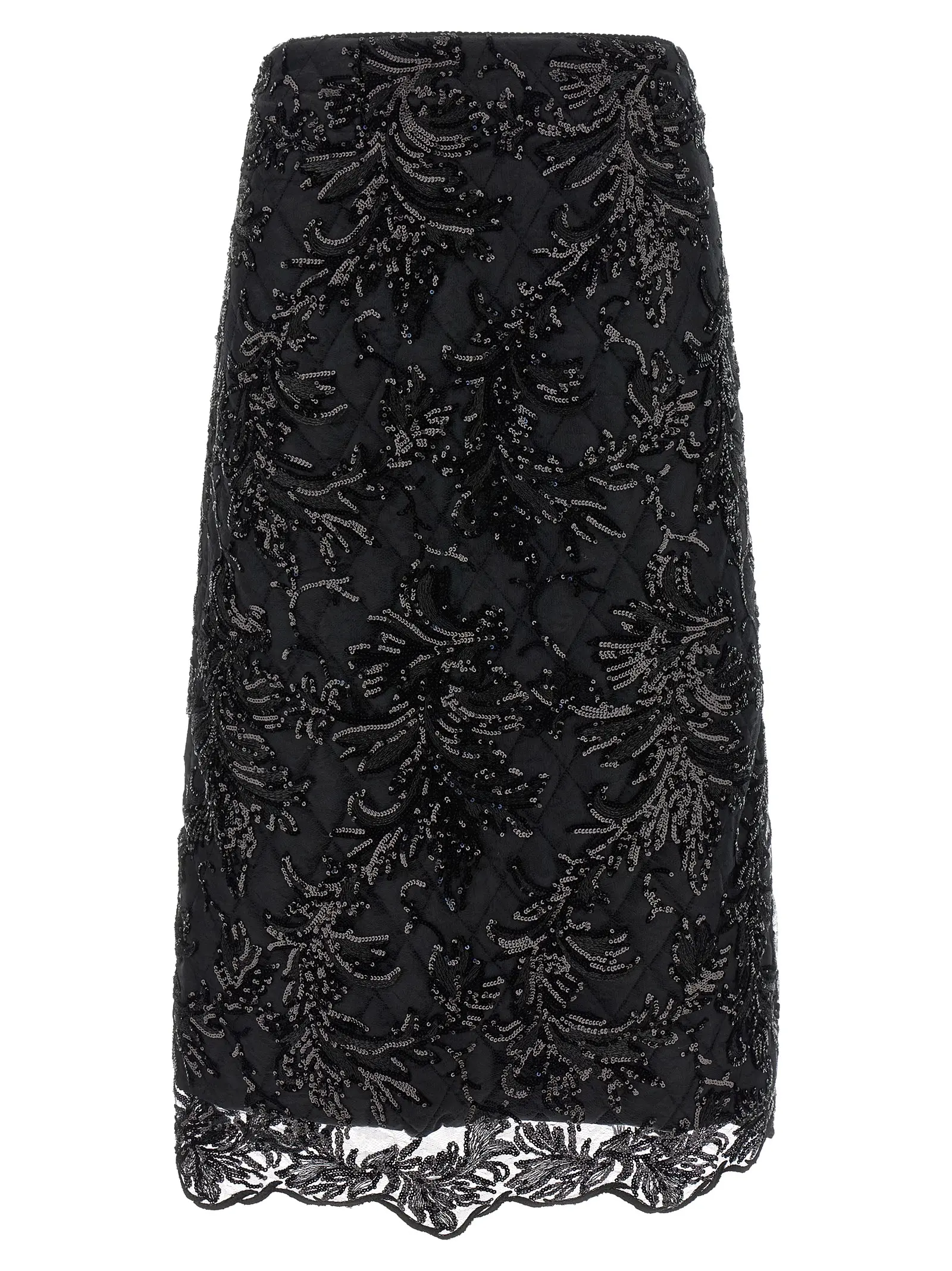 Чорна міді спідниця Giulia поєднує в собі витончену елегантність та сучасний дизайн, виконана з легкопідпушеного простьобаного матеріалу з мереживним шаром, оздобленим мікрозаплатками. Металева бічна застібка підкреслює функціональність і надає виробу статусності, роблячи її ідеальним вибором для стильних і впевнених у собі жінок.