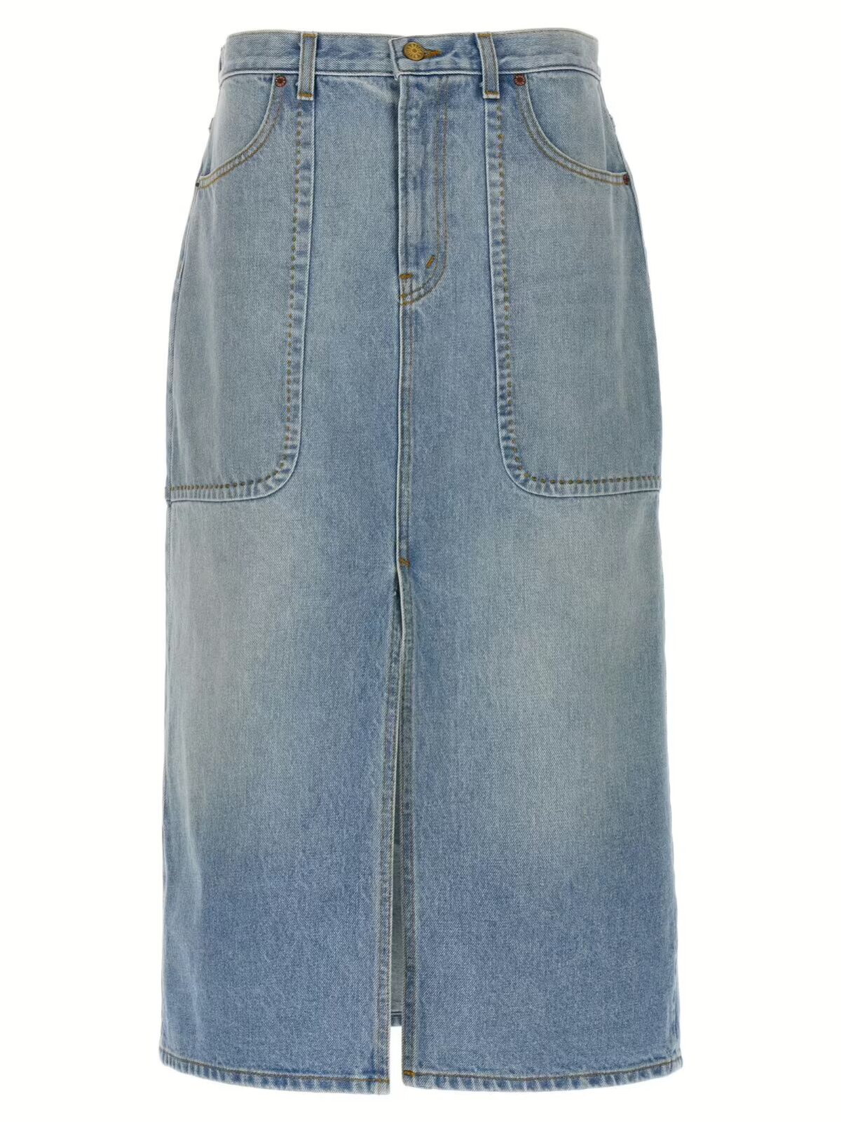 Джинсова бавовняна спідниця ‘Hill’ з ґудзиковим замком, кишенями та центральним розрізом спереду.