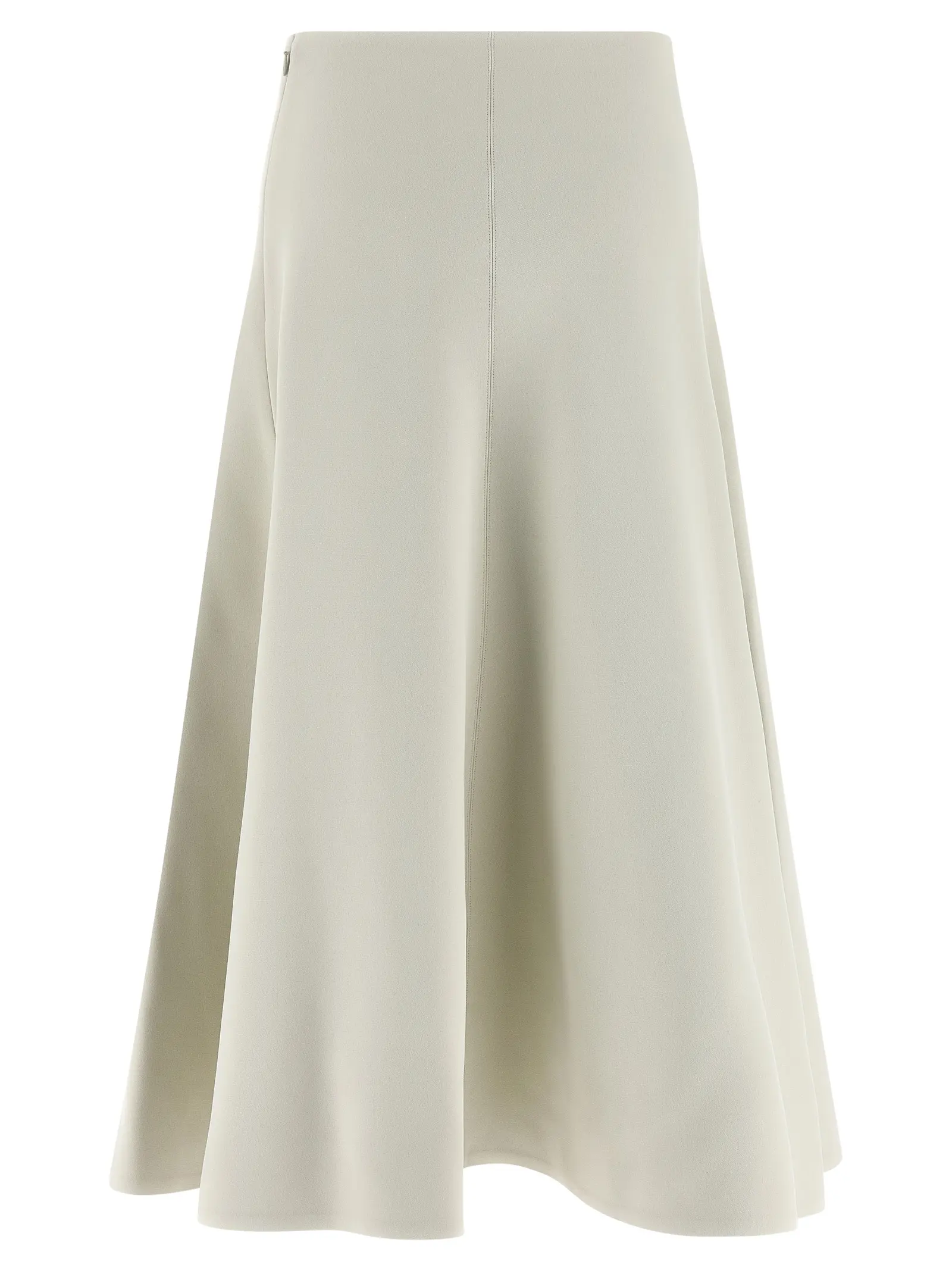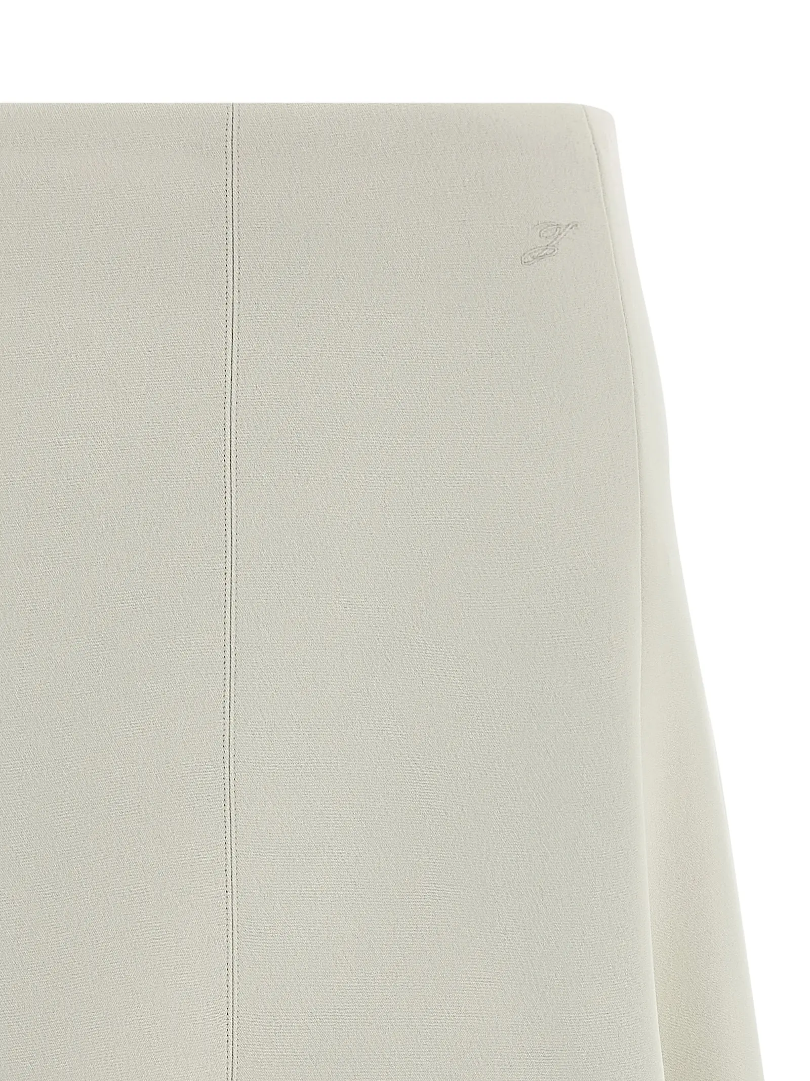 Ця міді спідниця білого кольору з напівкруглим кроєм вирізняється витонченістю та сучасним дизайном, підкресленим вишивкою логотипу спереду. Виготовлена з якісної суміші поліестеру та віскози, вона забезпечує комфорт і легкість у носінні, а бічна застібка на блискавку та гачок додає зручності. Ідеальний вибір для створення стильного та статусного образу, що поєднує інноваційність і універсальність.