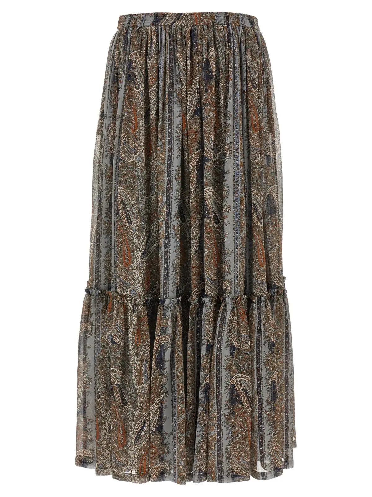 Вишукана довга спідниця з принтом пейсли виконана з 100% шовку та має підкладку з шовкового жоржету, що забезпечує легкість і комфорт. Еластичний пояс та практичні кишені додають функціональності, підкреслюючи елегантність і статус, створюючи бездоганний образ для будь-якого випадку.