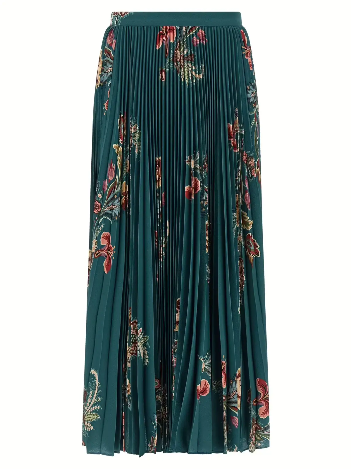 Вишукана плісирована спідниця з ефектом шовку від Etro поєднує багатокольоровий принт із досконалою фактурою, виготовлена з високоякісного поліестеру з додаванням еластану для ідеальної посадки. Елегантний дизайн з застібкою на блискавку та гачок підкреслює статус і універсальність образу, створюючи неповторний стиль для будь-яких подій.