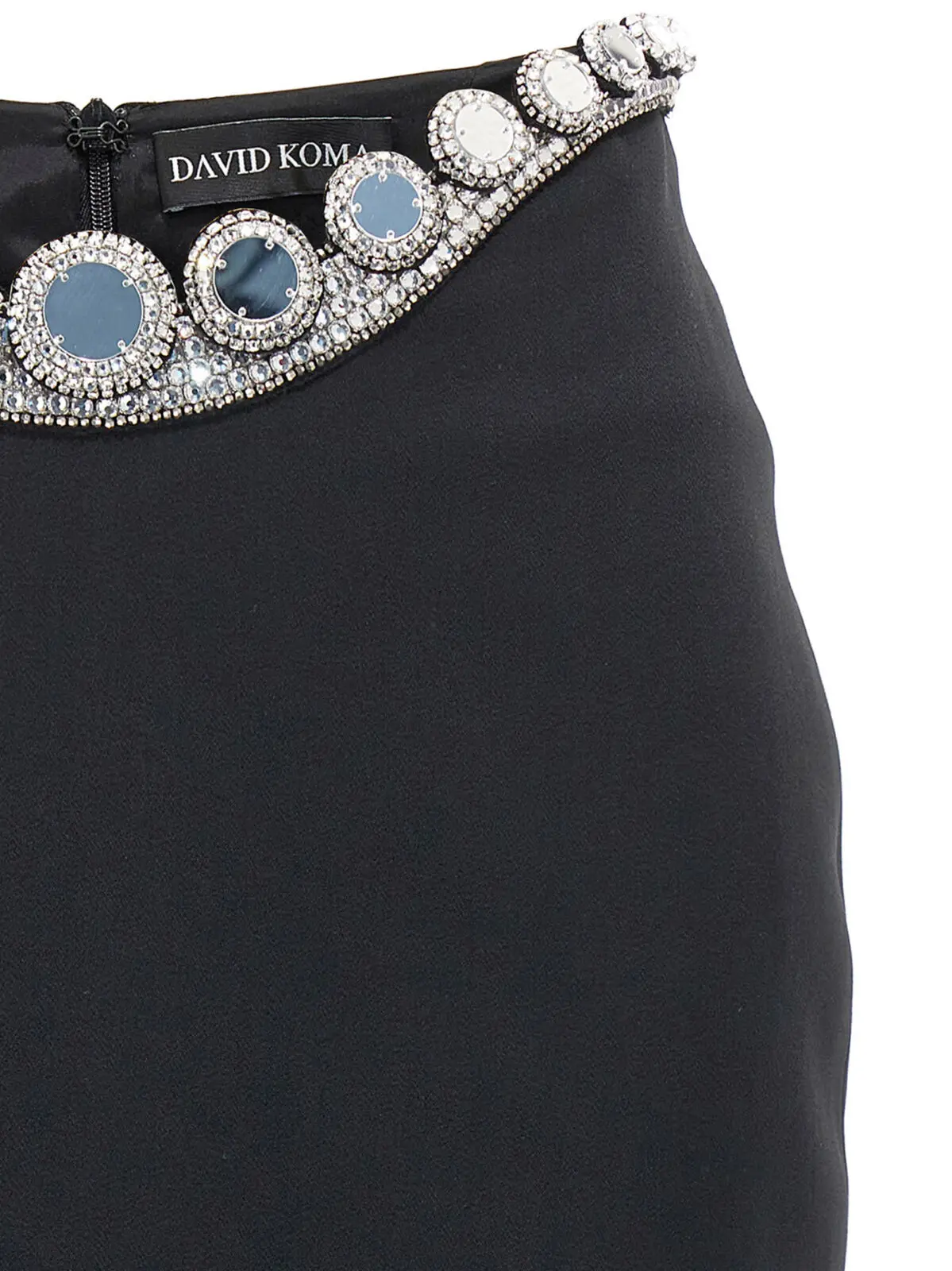 Ця спідниця Puffer Circle Embroidery від David Koma – справжнє втілення елегантності та стилю. Вона виготовлена з віскозної суміші кашеміру, що надає їй неймовірну м’якість та комфорт. Аплікація з дорогоцінними каміннями на талії додає цій спідниці розкішного вигляду.