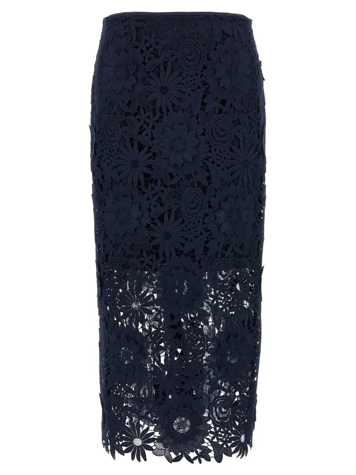 Вишукана синя спідниця із колекції Rotate Birger Christensen виконана з інноваційного 3D мережива, що поєднує легкість та елегантність. Модель із класичним силуетом міді, оснащена задньою застібкою на блискавку та гачок, підкреслює статус і вишуканий стиль, забезпечуючи універсальність у будь-якому образі.