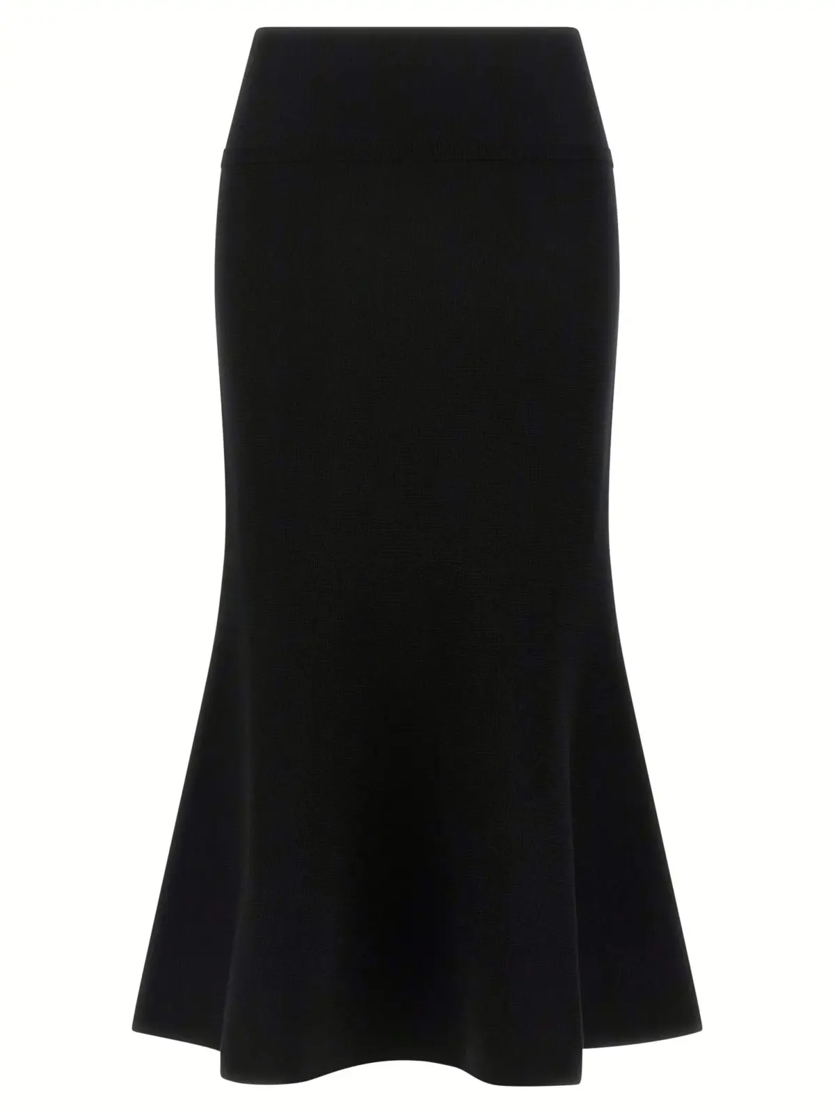 Витончена чорна вовняна спідниця міді, виконана з високоякісної суміші віскози та поліестеру, поєднує в собі елегантність та комфорт завдяки еластичному поясу. Її інноваційний дизайн із круглою формою та делікатною металевою емблемою на спині підкреслює вишуканий стиль і статус, роблячи цей виріб універсальним вибором для сучасної модної колекції.