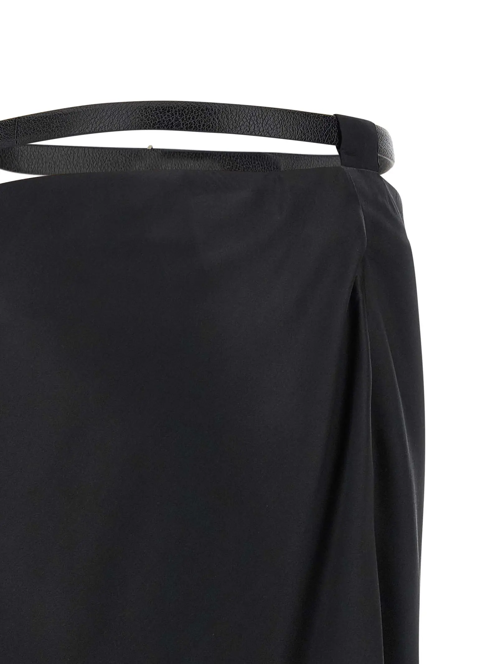Спідниця міді з шовку. Застібка збоку на блискавку та гачок. Присутні шлевки для паска. Пасок на талії з металевою пряжкою. Матеріал складається зі 100% шовку.