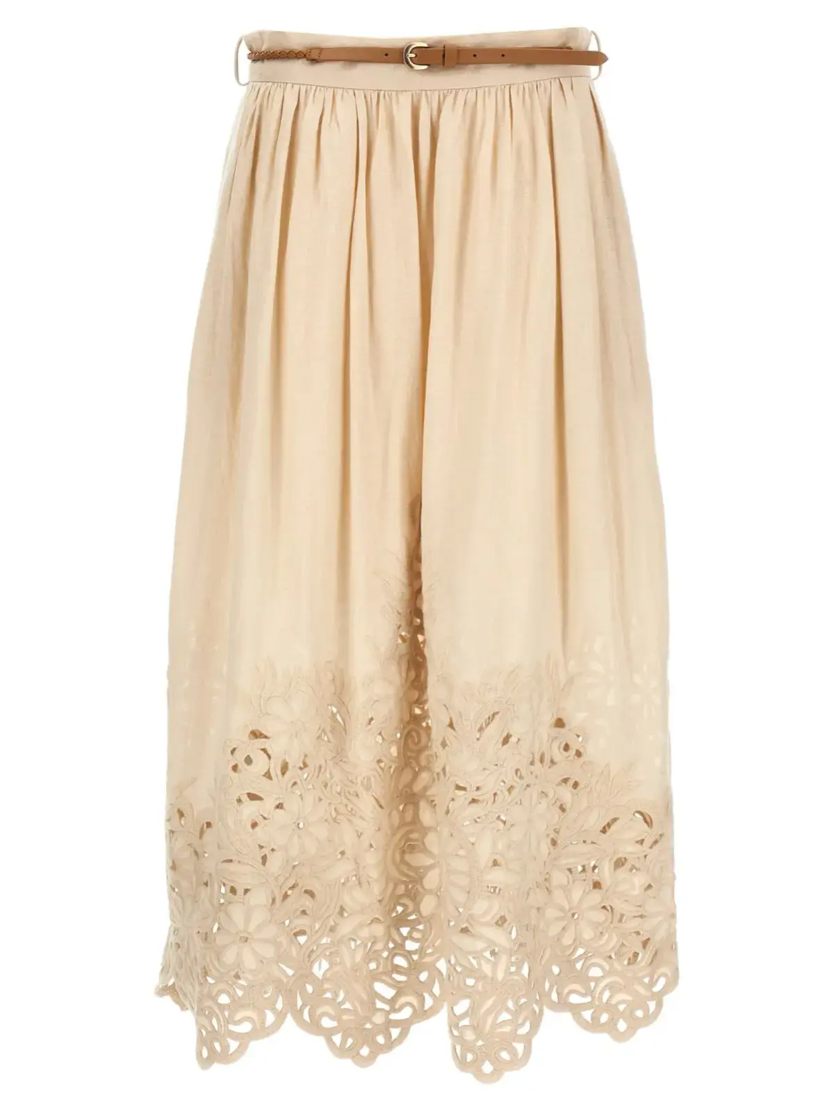 Спідниця Wylie від Zimmermann вражає елегантністю та витонченим дизайном. Виготовлена з 100% льону, вона забезпечує комфорт та дихаючість, що робить її ідеальним вибором для спекотних днів. Ззаду розташована застібка- блискавка, а підкладка з бавовни додає м’якості. Регульований і знімний пояс дозволяє адаптувати спідницю під ваш стиль. Ця річ підкреслює статус та витончений смак, а також втілює інноваційний підхід до моди, поєднуючи естетику і функціональність.