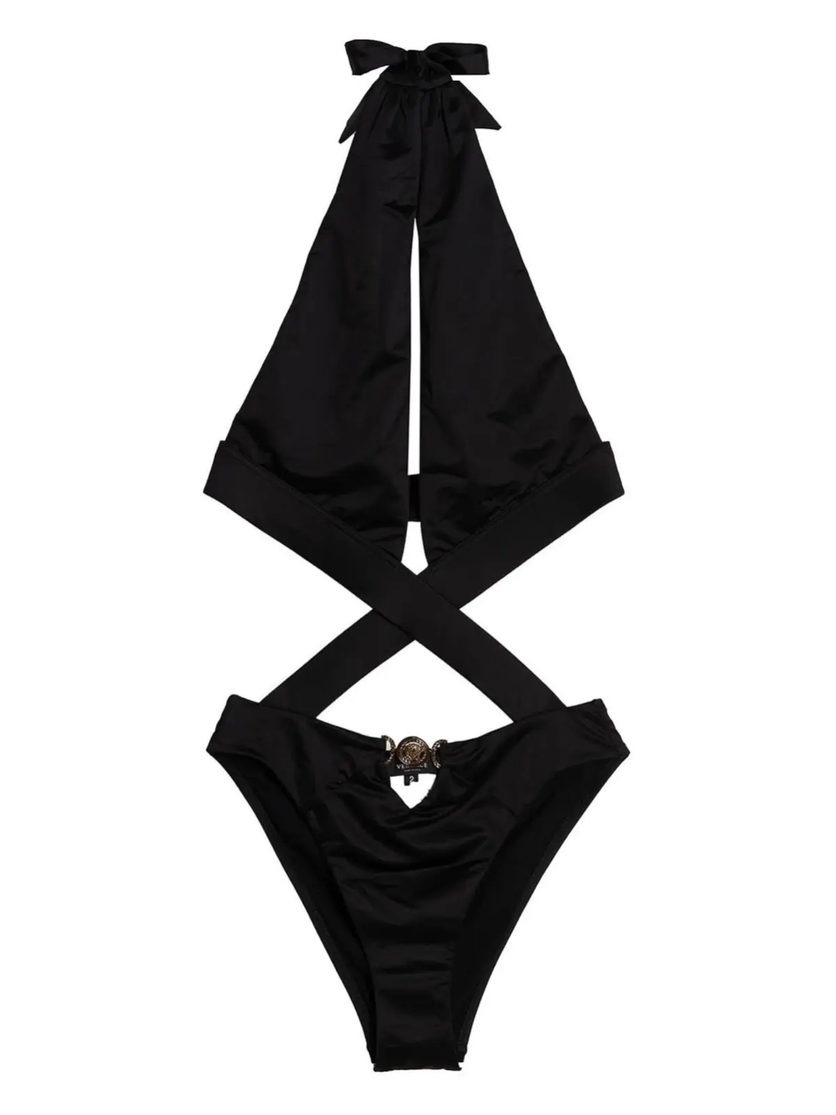 Суцільний купальник Medusa Versace в чорному кольорі забезпечить вам неперевершений стиль і комфорт на пляжі. Виготовлений з високоякісної тканини Belize, цей купальник має передню плетінку, застібку на шиї та деталь з золотого металу Medusa. Завдяки своєму складу – 78% поліестеру і 22% еластану – він ідеально підлаштовується до вашої фігури, надаючи вам відчуття впевненості і зручності. Замовте цей купальник вже сьогодні і станьте центром уваги на будь-якому пляжі!