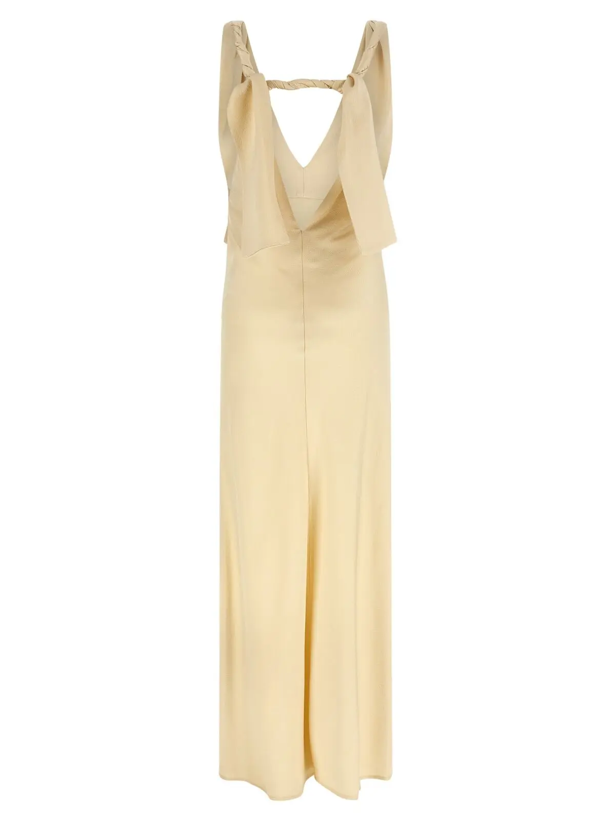 Сукня Armarium Livia, виконана з 100% віскози, вражає своєю елегантністю та вишуканим дизайном. Модель з V-подібним вирізом і безрукавами підкреслює жіночність, а закриття на спині з бантом додає романтичності. Розкльошений поділ мермейд надає силуету витонченості, що робить цю сукню ідеальною для особливих подій. Інноваційний підхід до матеріалів забезпечує комфорт, а екологічність виробництва підкреслює відповідальність бренду. Це вбрання стане вірним доповненням до гардеробу сучасної жінки, яка цінує стиль та якість.