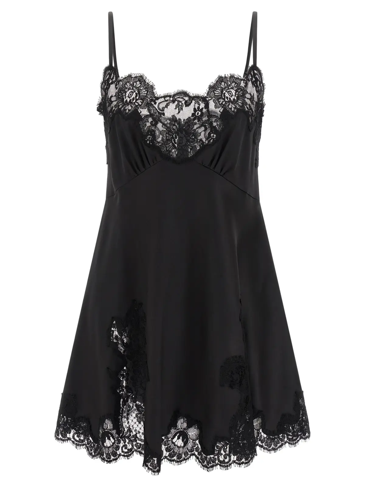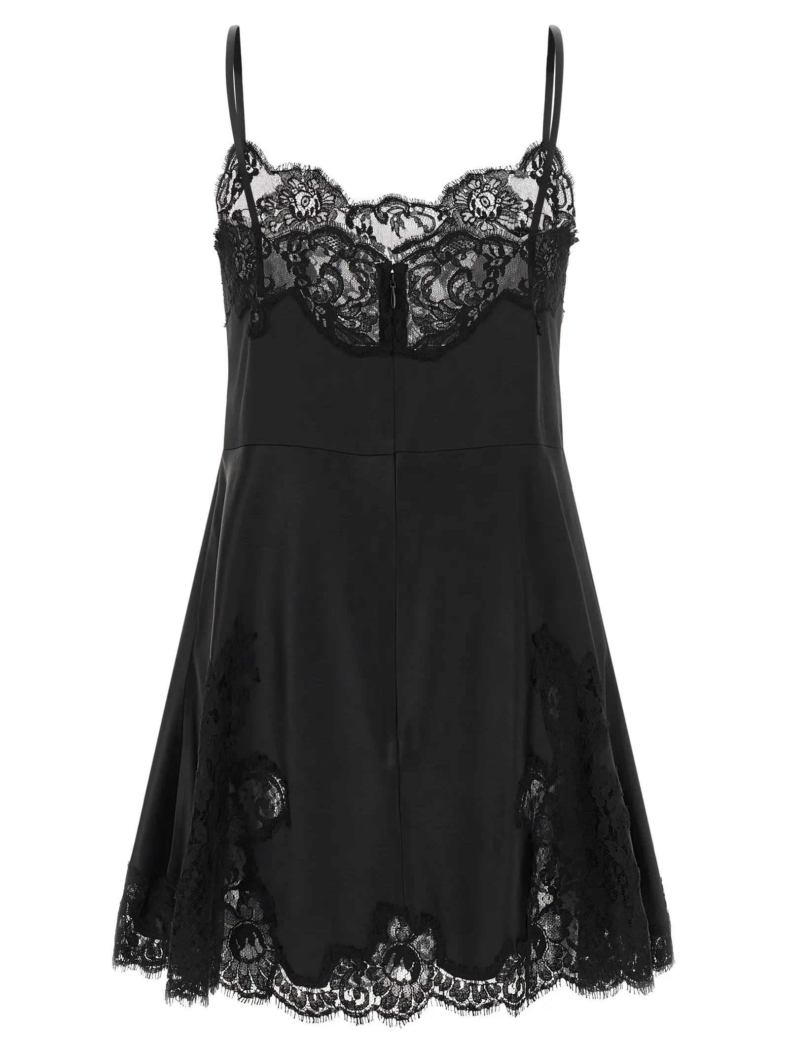 Сукня атласна з мереживом Satin and lace Dolce Gabbana Чорна