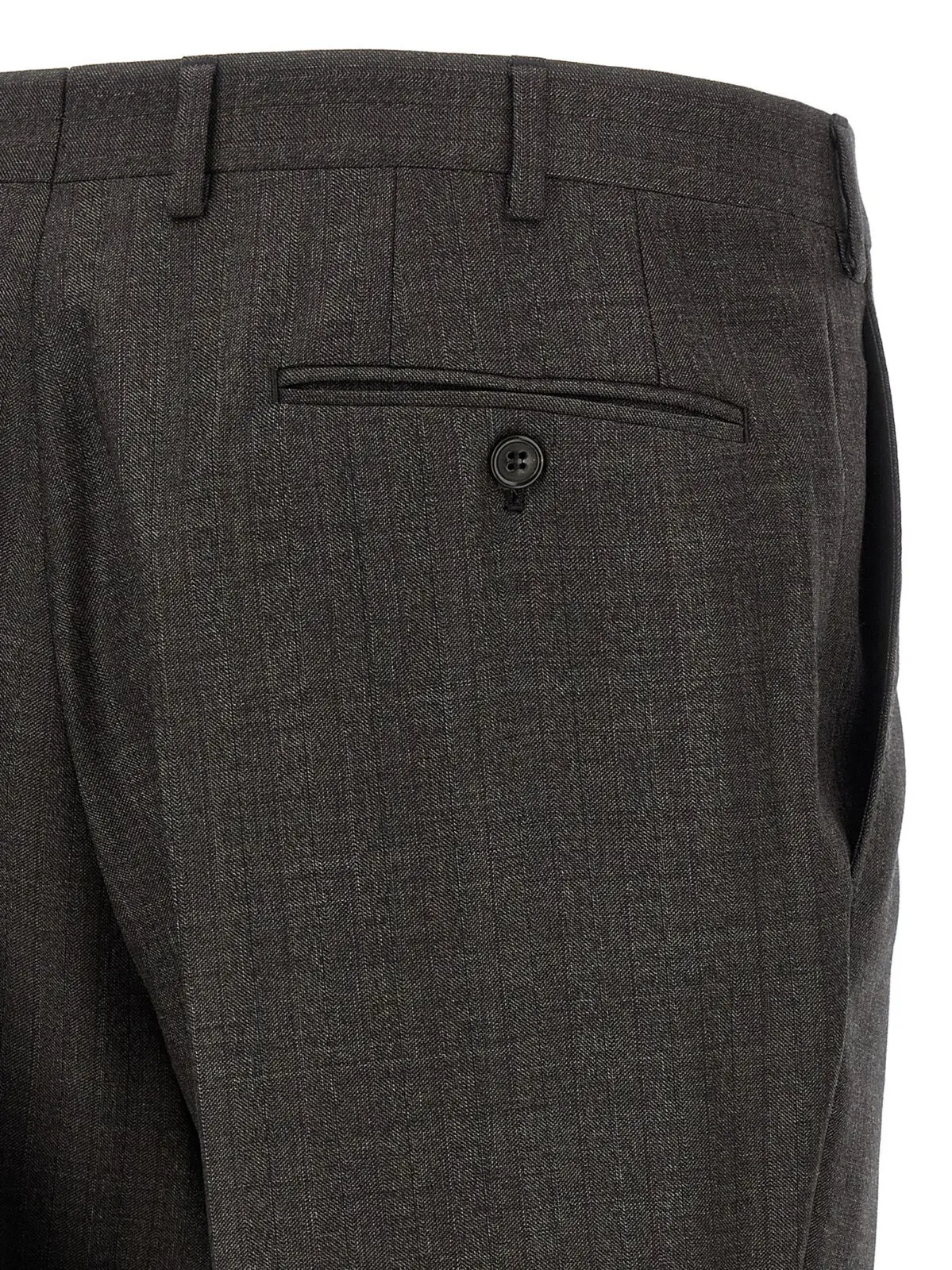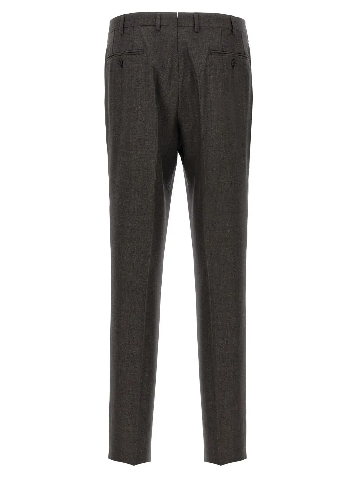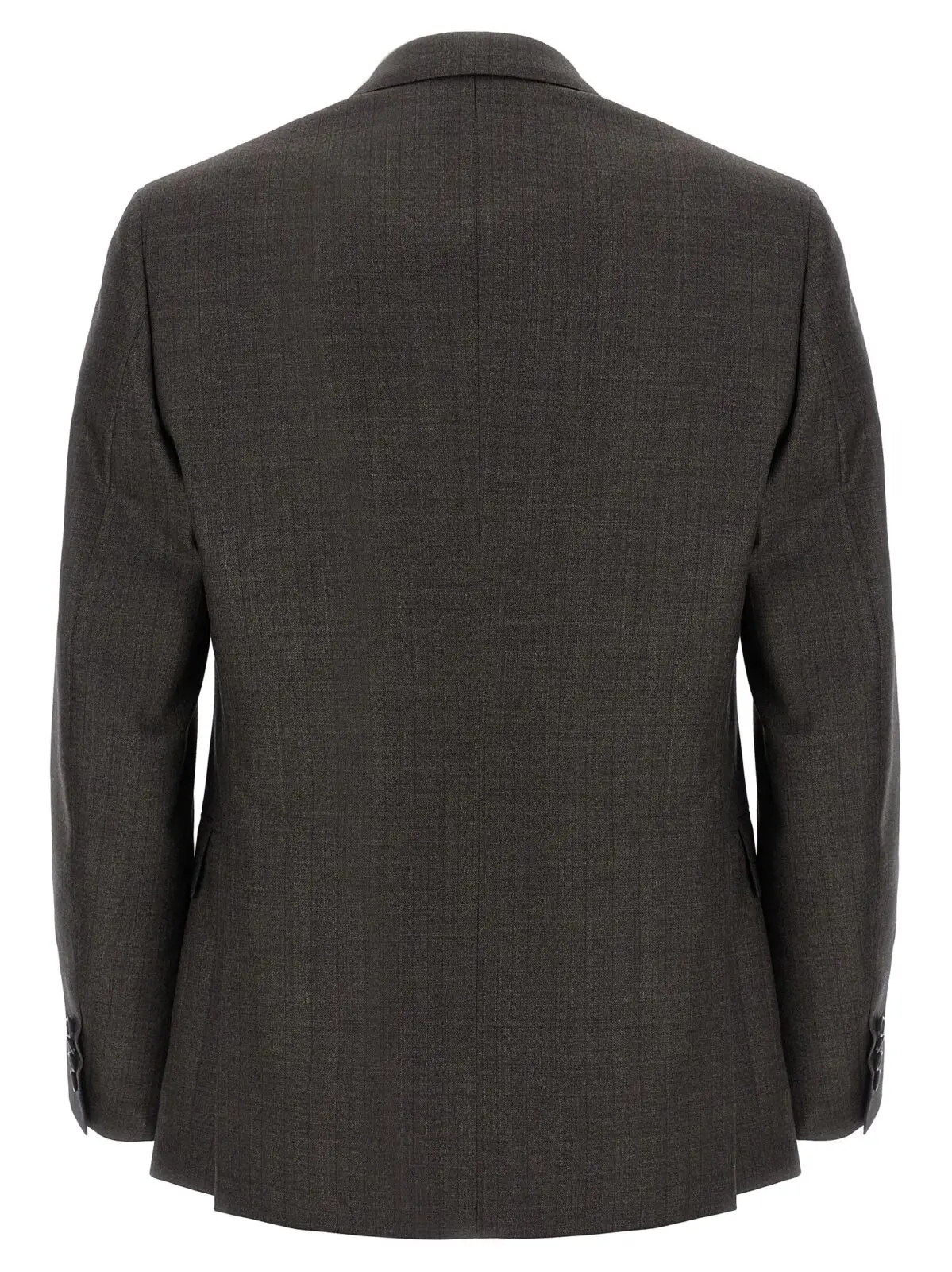 Вишукана чоловіча сукня Brioni Trevi виконана з високоякісної 100% вовни, що забезпечує комфорт і довговічність. Легкий піджак зі структурованими плечима та оздобленням у вигляді дзеркальних лацканів поєднується з елегантними брюками зі стрілками, створюючи бездоганний силует. Цей ансамбль випромінює статус і стиль, підкреслюючи інноваційний дизайн та універсальність для будь-яких урочистих подій.