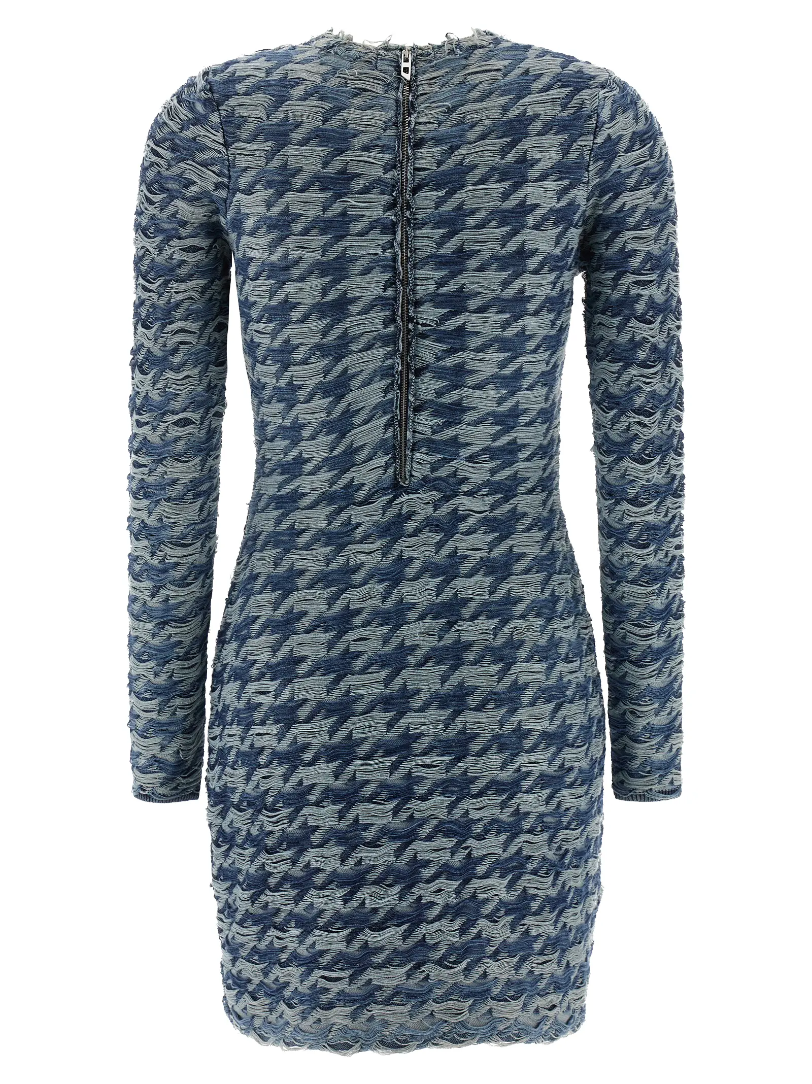 Елегантна сукня з колекції преміум-класу виготовлена з високоякісної 100% бавовни з унікальним лазерним візерунком «гусяча лапка» та ефектом обпалених деталей, що створює витончену текстуру. Дизайн із довгими рукавами, круглим вирізом і застібкою на блискавці ззаду поєднує стиль і комфорт, підкреслюючи статус і бездоганний смак.