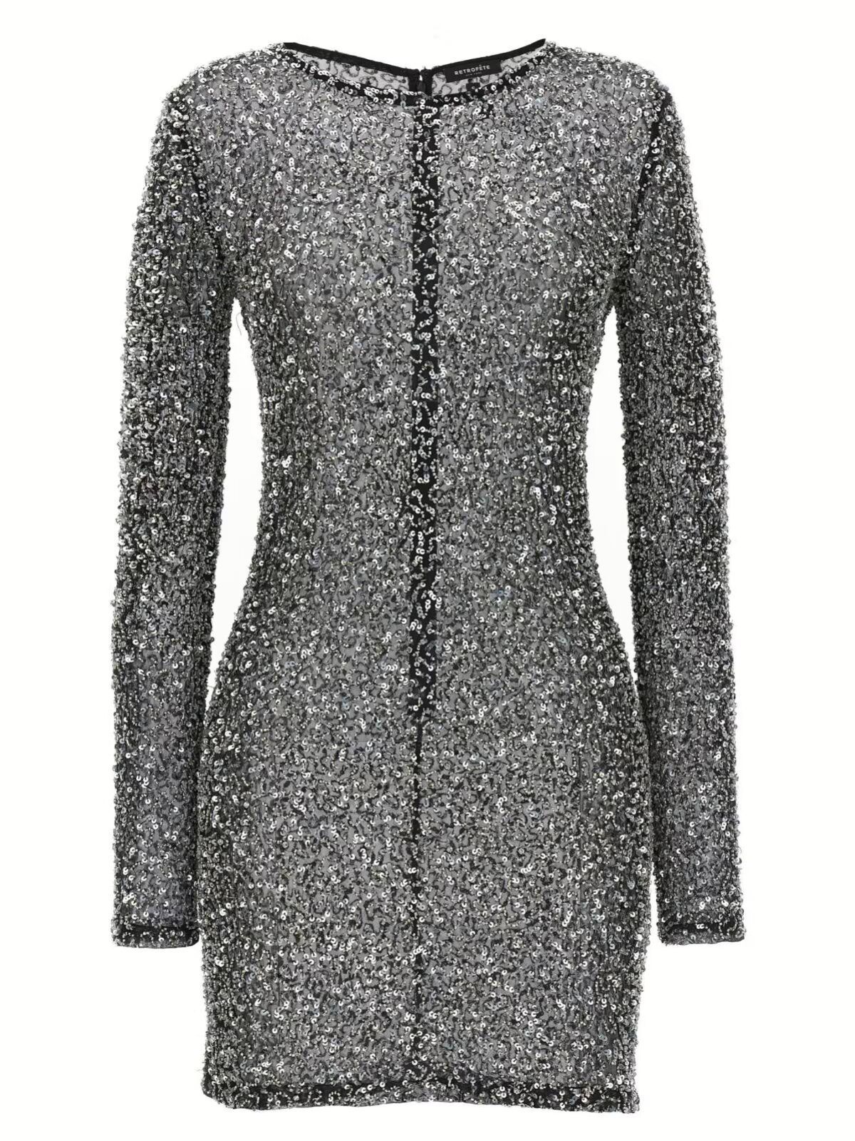 Зачаровуйте всіх навколо вас у цій чорній сукні Emani Retrofête! Вона виготовлена з прозорої сітки, прикрашеної намистинами та пайетками, що створює неперевершений блиск. Ця сукня з круглим вирізом і довгими рукавами підкреслить вашу жіночність і стиль. Застібка-блискавка на спині забезпечує легке одягання і знімання. Виготовлена з 100% нейлону, ця сукня гарантує комфорт і довговічність. Ви будете справжньою зіркою на будь-якому заході, носячи цю чудову сукню Emani Retrofête.