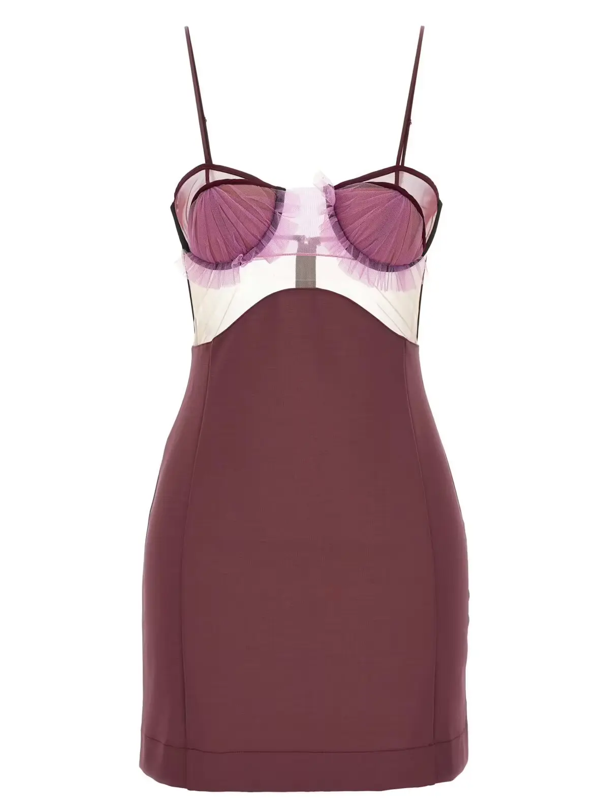 Ви готові вибухнути красою? Представляємо вам сукню Explosive Flower Bra від Nensi Dojaka! Ця фіолетова сукня зроблена з еластичної тканини з вставками з тюлю, має підкладку з наповнювачем, тонкі регульовані бретелі і застібку-блискавку на спині.