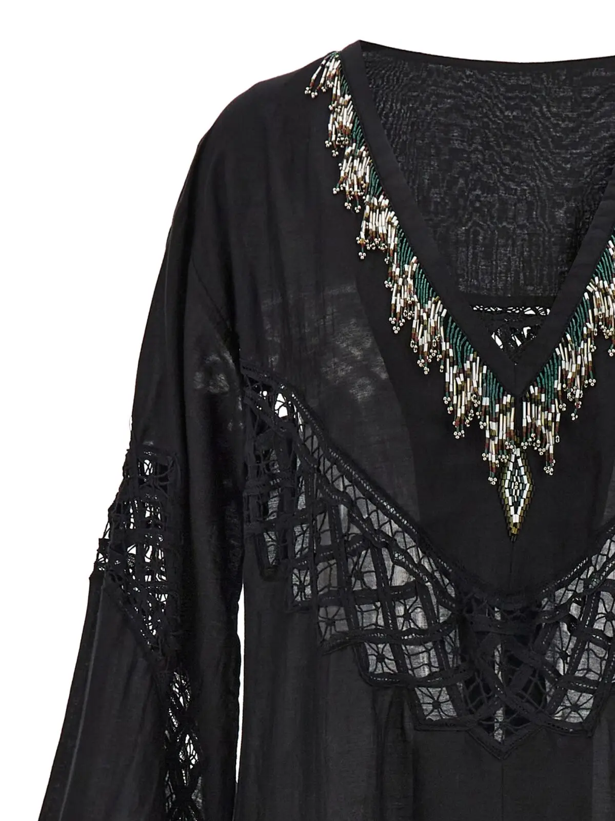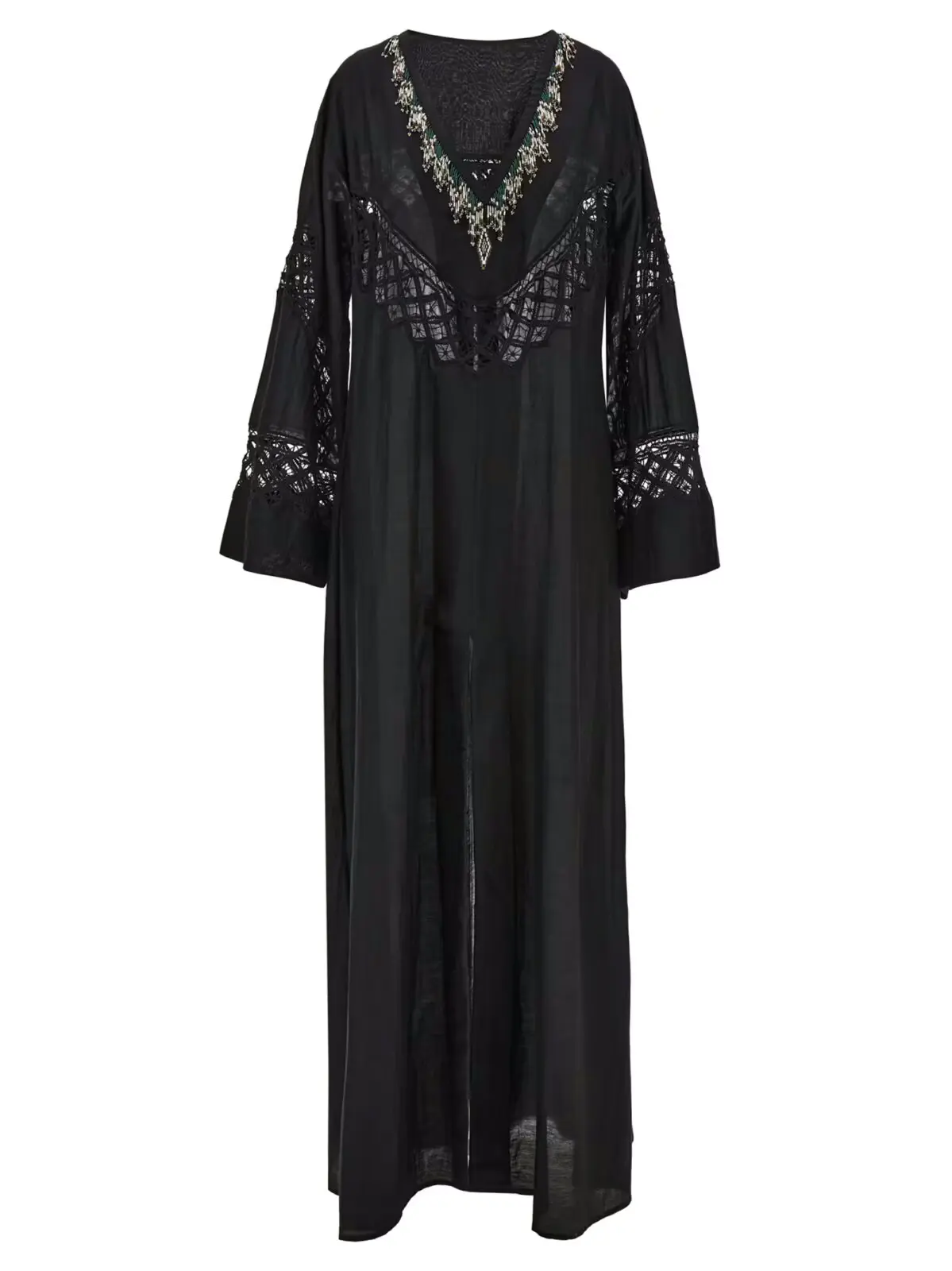 Сукня Fortela Alice Чорна жіноча ‘Alice’ dress втілює в собі бездоганний стиль та елегантність, що підкреслюють вашу індивідуальність. Виготовлена з розкішної суміші 70% бавовни та 30% шовку, ця сукня поєднує в собі м’якість і легкість матеріалів з високою якістю виконання. Вишукані декоративні перли та перфоровані деталі додають виробу неповторного шарму, а глибокий V-подібний виріз акцентує увагу на витонченості силуету. Довгі та широкі рукави створюють ефектний об’єм, надаючи образу легкості та граційності, тоді як передній розріз на подолі додає зручності та свободи руху. Ця сукня ідеально підходить як для вечірніх виходів, так і для повсякденного носіння, надаючи вашому образу нотки розкоші та витонченості. Високоякісні матеріали та унікальний дизайн роблять її незамінним елементом гардеробу, який підкреслює ваш статус і стиль. Обирайте Fortela Alice для створення бездоганних образів, що відображають вашу індивідуальність та вишуканість.