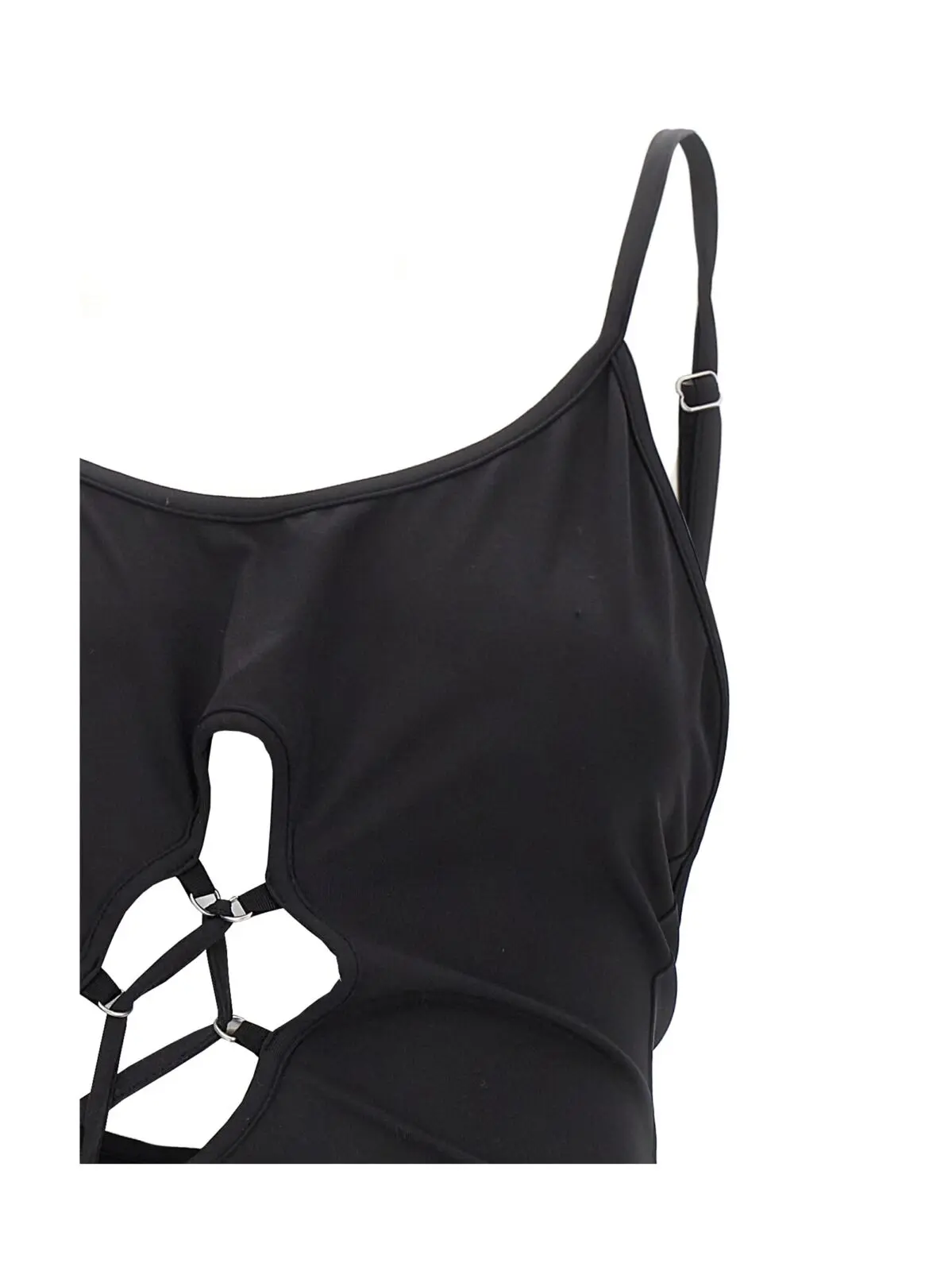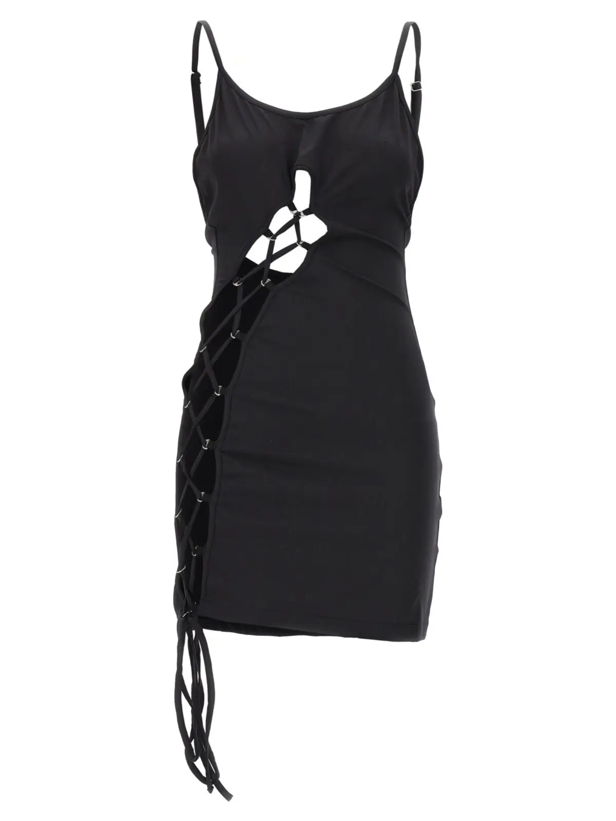 Ця чорна міні-сукня від Heron Preston просто захоплює дух! Вона виготовлена з еластичної тканини, яка ідеально підкреслить вашу фігуру. Але це ще не все! Глибокий розріз з шнуровкою додає сексуальності і загадковості, а регульовані бретелі забезпечать комфорт і ідеальну посадку.