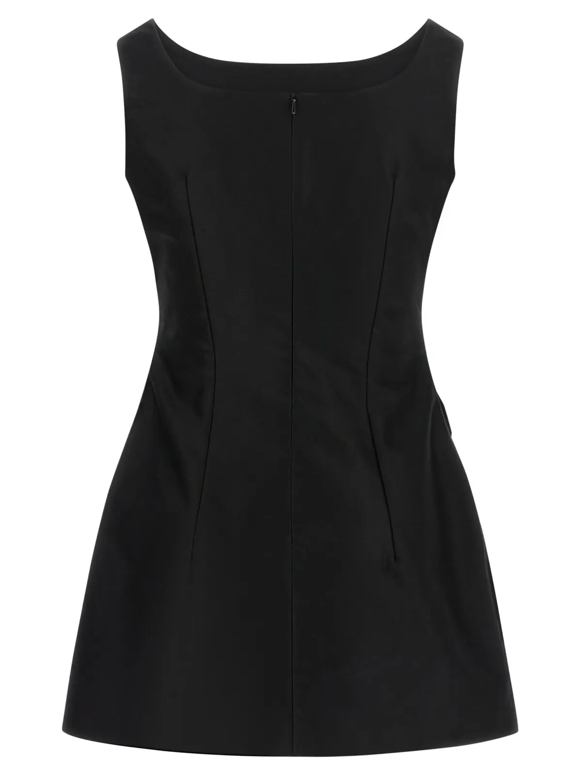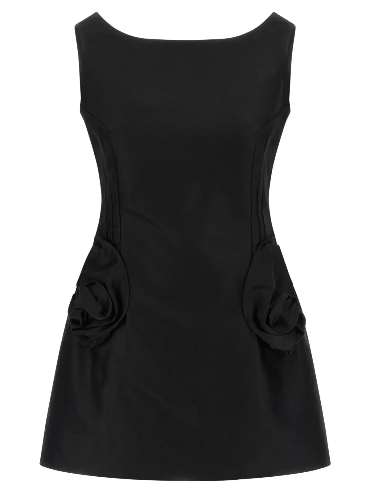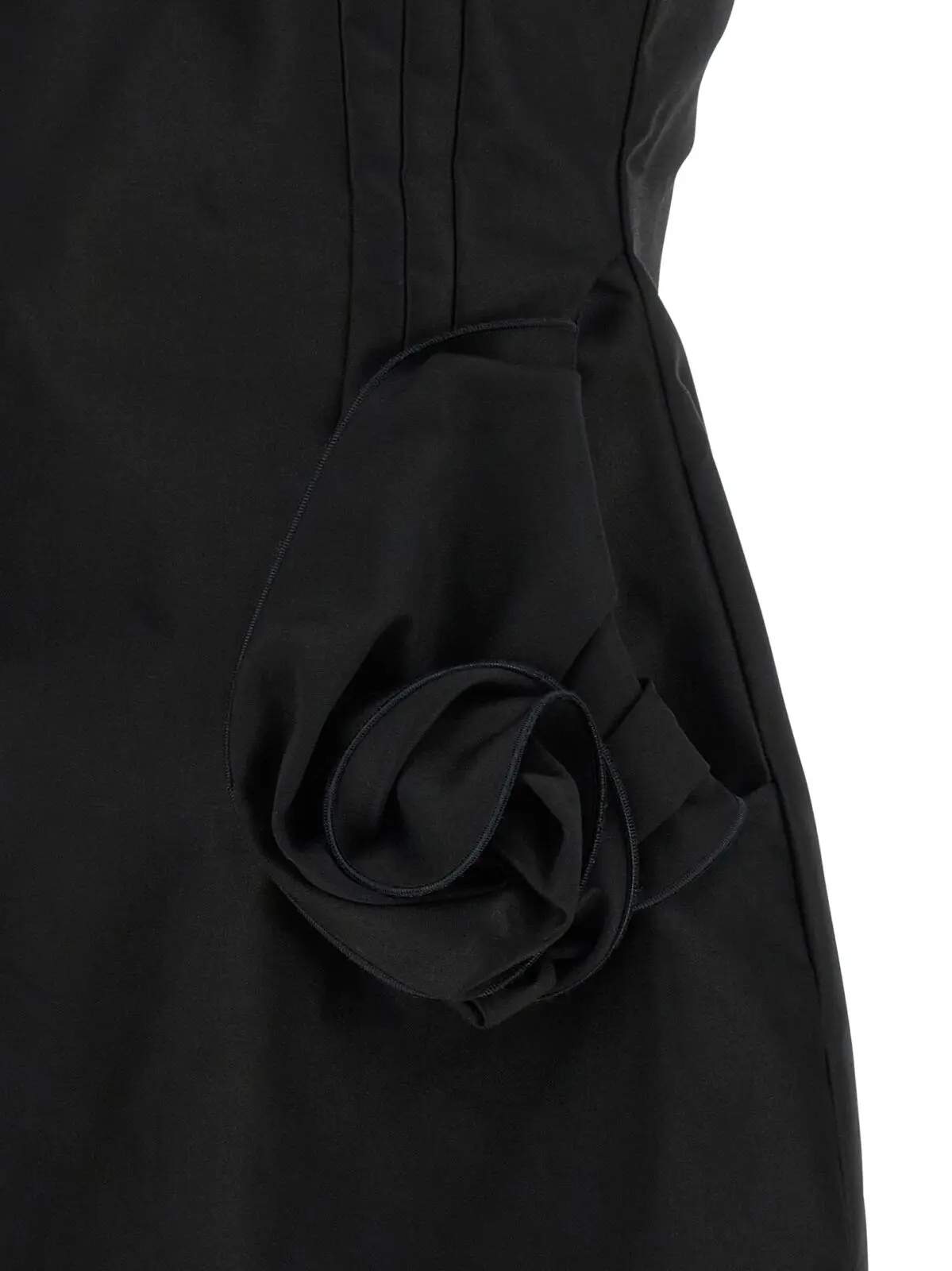 Чорна сукня зі 100% бавовни з елегантним квадратним вирізом і витонченими виточками підкреслює жіночність і статус. Інноваційний дизайн з об’ємними квітковими декоративними елементами та практичними кишенями поєднує комфорт і стиль, доповнений шовковою підкладкою для максимальної розкоші.