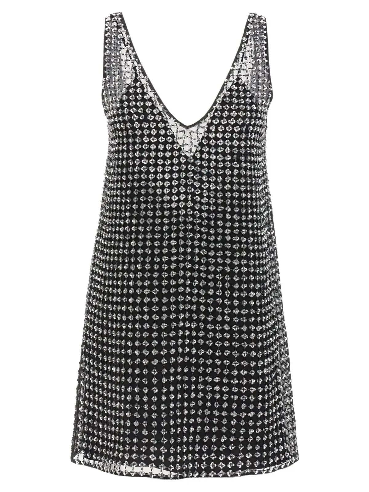 Вишукана чорна сукня з органзи, оздоблена вишитими паєтками у квітковому мотиві, поєднує елегантність глибокого круглого вирізу на спині та вишуканого V-подібного декольте спереду. Легка спідниця з шовкового кеді з тонкими знімними бретелями підкреслює жіночність і статус, забезпечуючи комфорт та універсальність для будь-якого стильного образу.