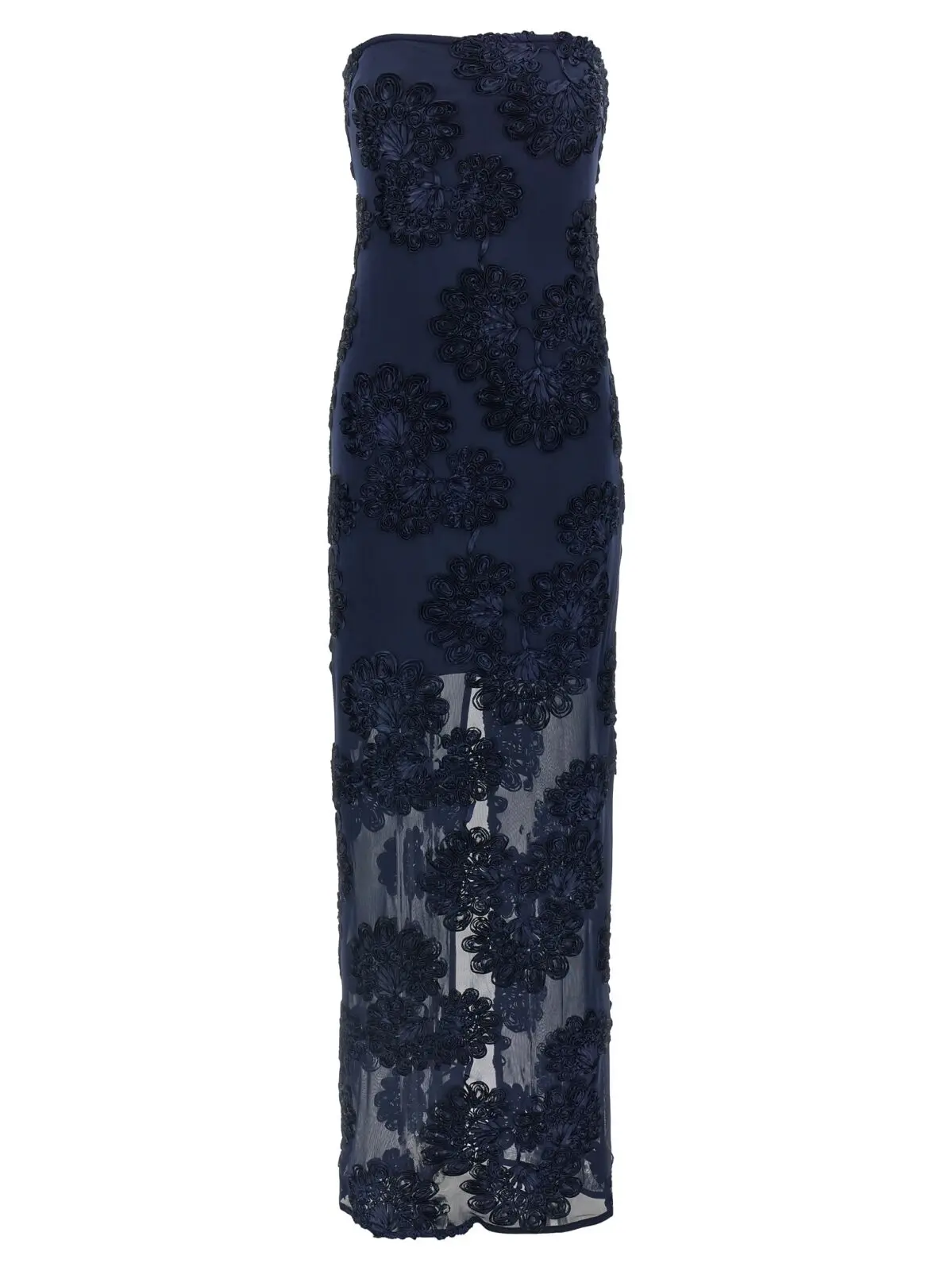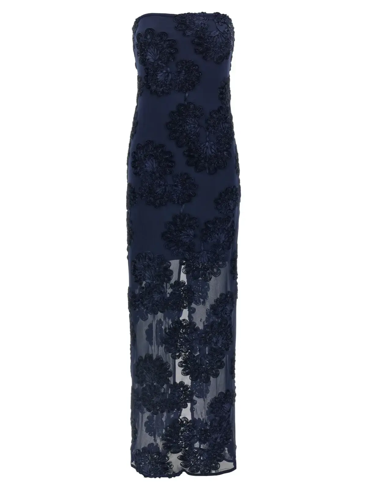 - Напівпрозора сукня максі з сітки з об’ємними 3D квітковими аплікаціями