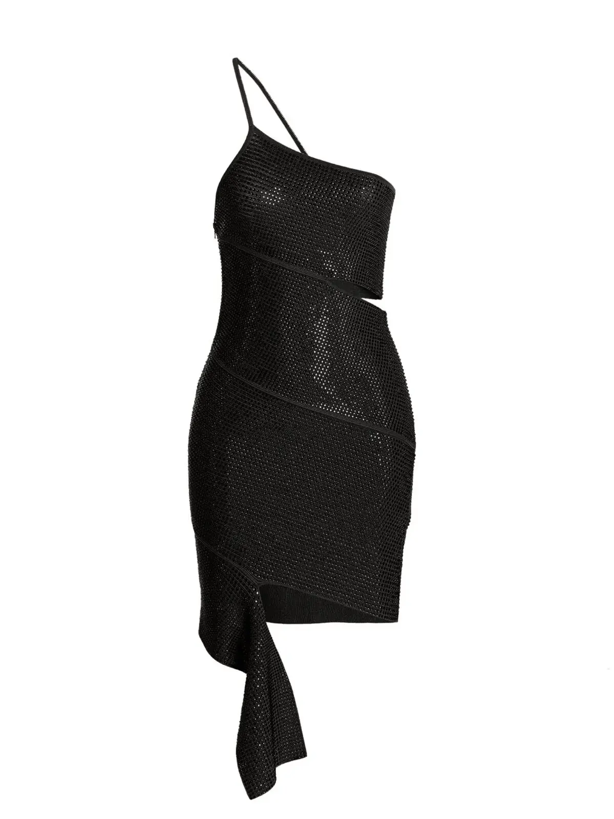 Ця чорна сукня з одним плечем від Andreādamo створена, щоб ви сяяли на будь-якому заході. Вона має вишукані аплікації з пайетками, які прикрашають її всю поверхню. Застібка-блискавка та вирізи додають особливого шарму цій сукні. Асиметричний поділ низу створює ефектну силуетну лінію. Виготовлена з 88% віскози та 12% поліестеру, ця сукня поєднує комфорт і стиль. Замовте цю сукню вже зараз і станьте центром уваги на будь-якому заході!