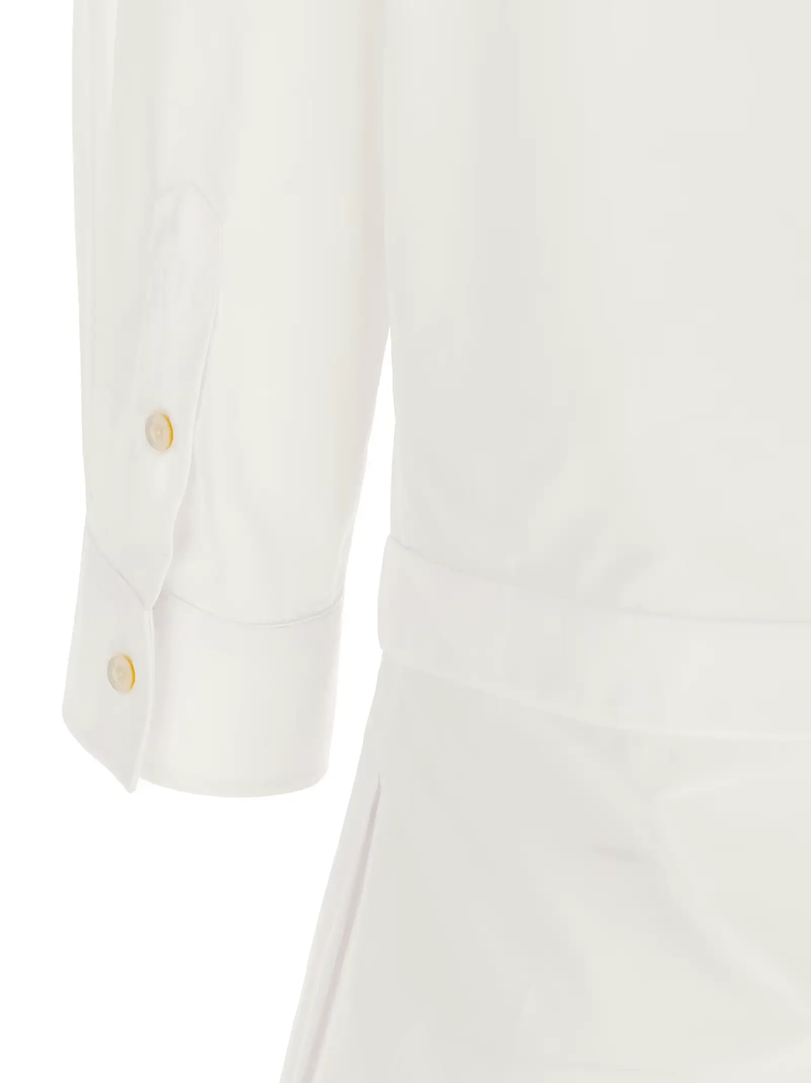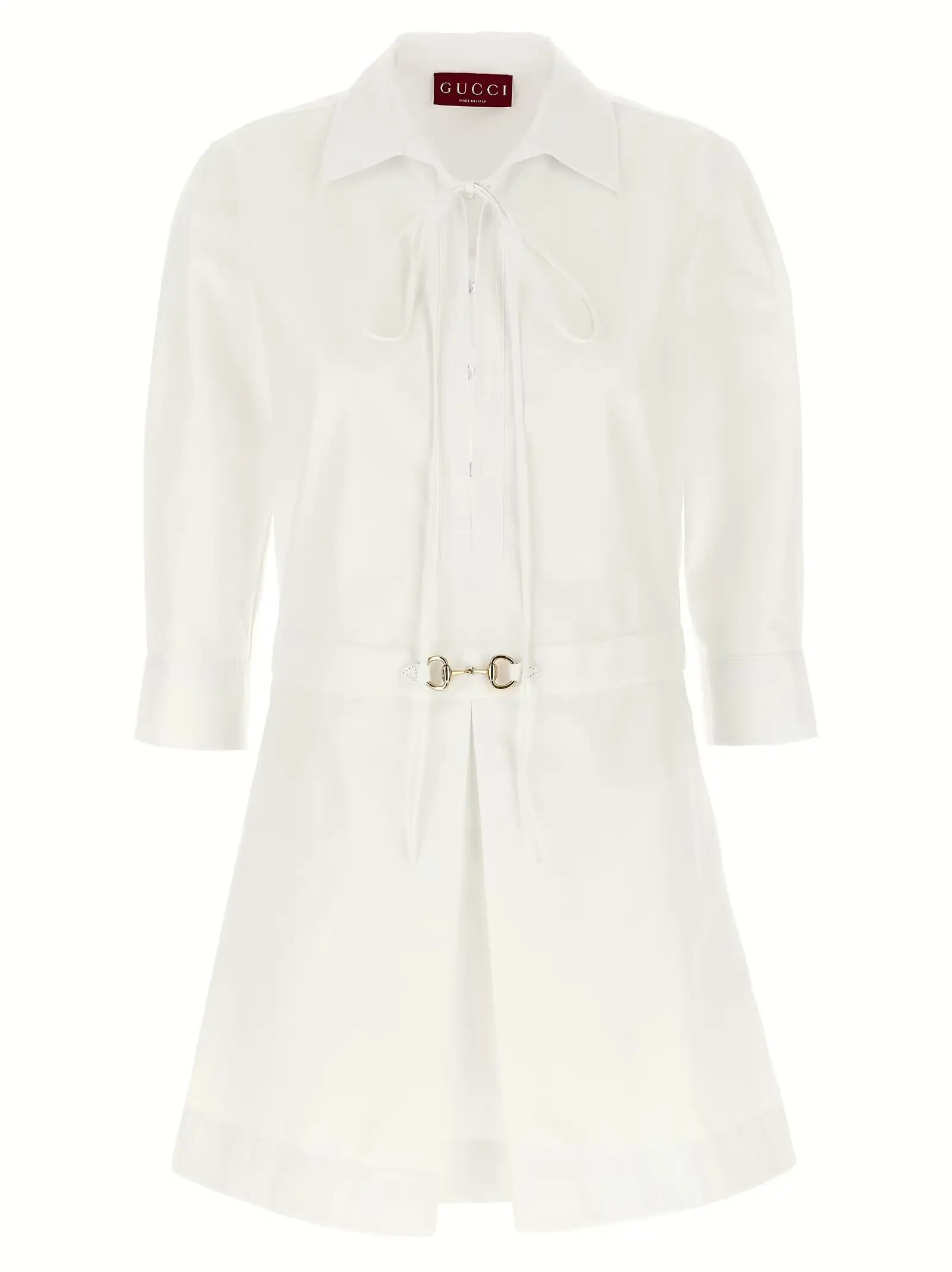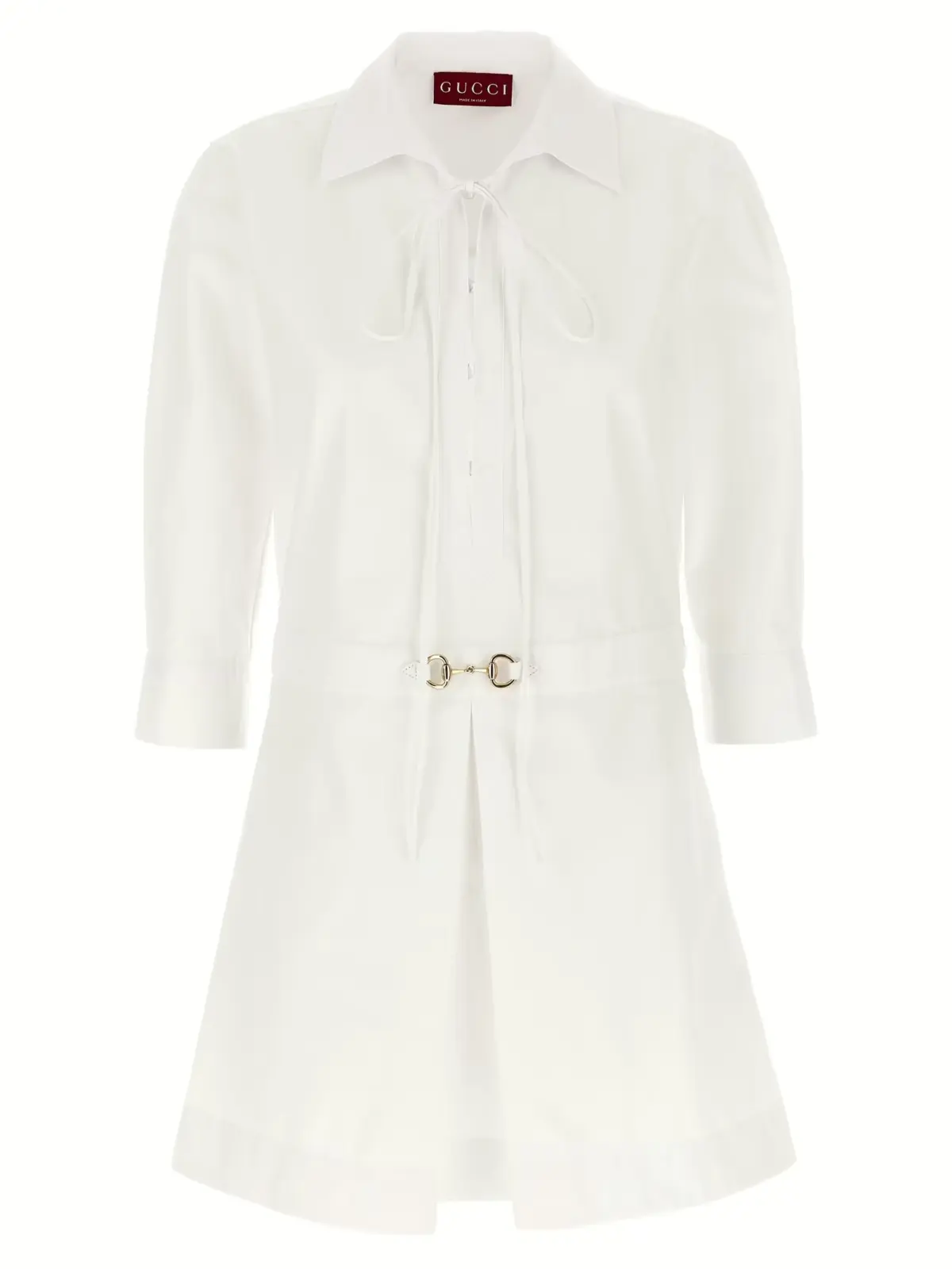 Сукня-сорочка Morsetto виготовлена з високоякісного бавовняного попліну, поєднує елегантність і комфорт завдяки витонченому банту на комірі, металевій застібці та акуратним ґудзикам спереду. Плісирована спідниця та рукави три чверті підкреслюють вишуканий стиль і універсальність цієї моделі, створюючи неперевершений образ статусу та смаку.