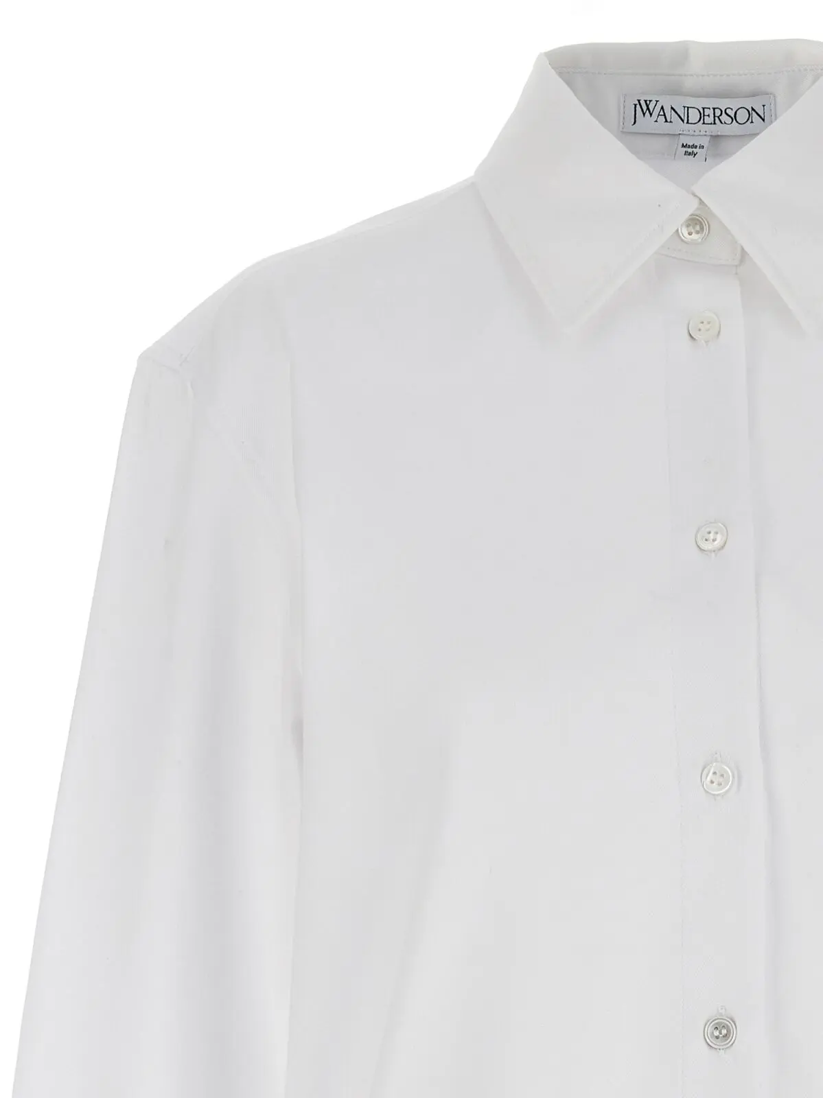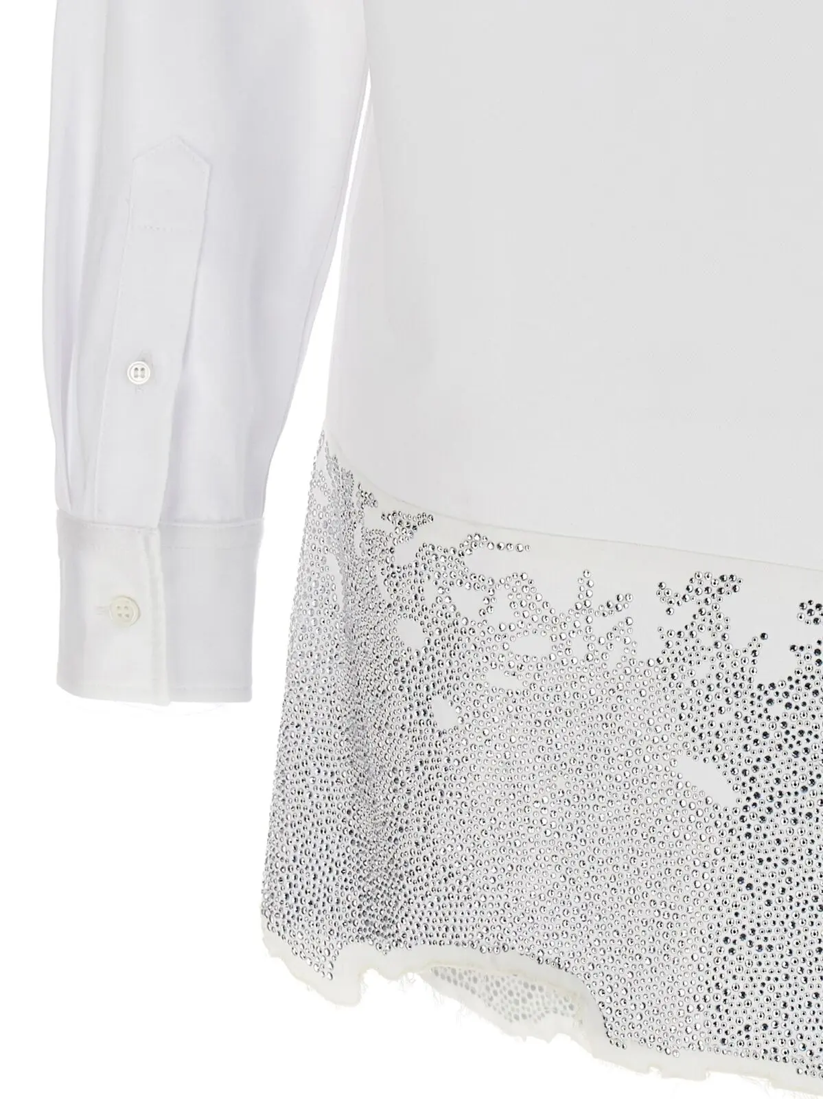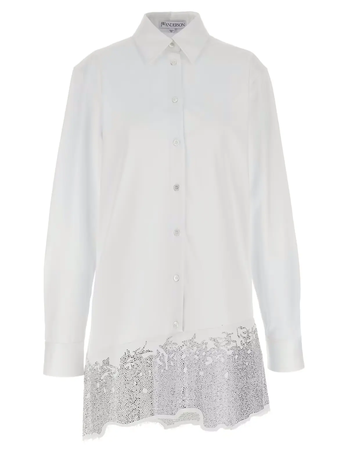 Ця біла сукня-сорочка від J.W.Anderson – це справжнє втілення елегантності та стилю. Вона виготовлена з 100% бавовни, що забезпечує комфорт та приємні відчуття протягом усього дня. Ця сукня-сорочка має неповторний дизайн з розшитими стразами на нижньому краю, що додає їй розкішного вигляду. Застібка на гудзиках та довгі манжети зроблять ваш образ ще більш стильним та вишуканим. Ви будете виглядати неперевершено в цій сукні-сорочці, будь то на роботі, на зустрічі з друзями або на особливому заході. Замовте цю сукню-сорочку вже сьогодні та станьте центром уваги на будь-якому заході!